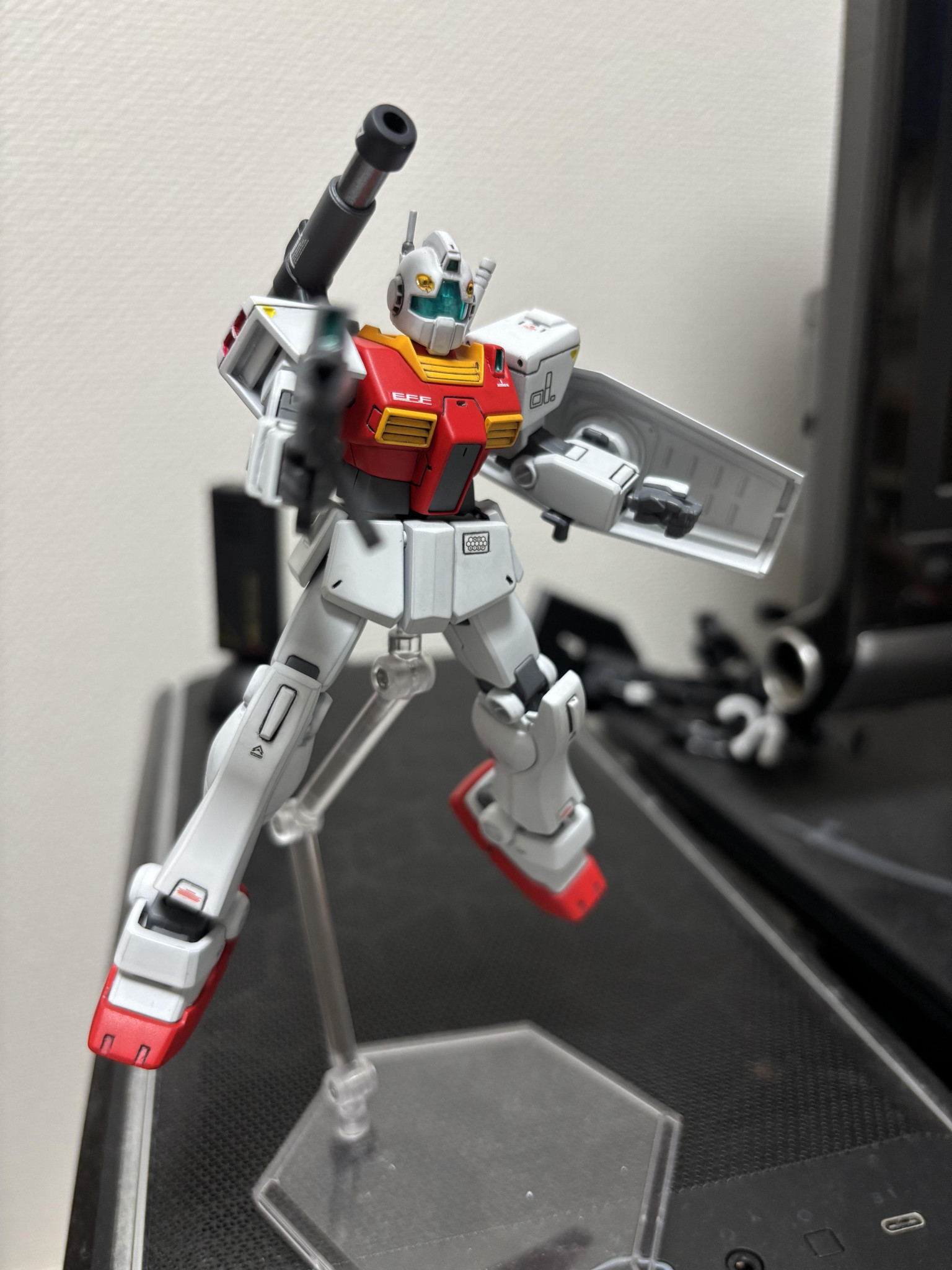 キャノン発射ポーズなのですが踏ん張るポーズが太ももと腰パーツの干渉もあり思いのほか沈み込まなかったです。