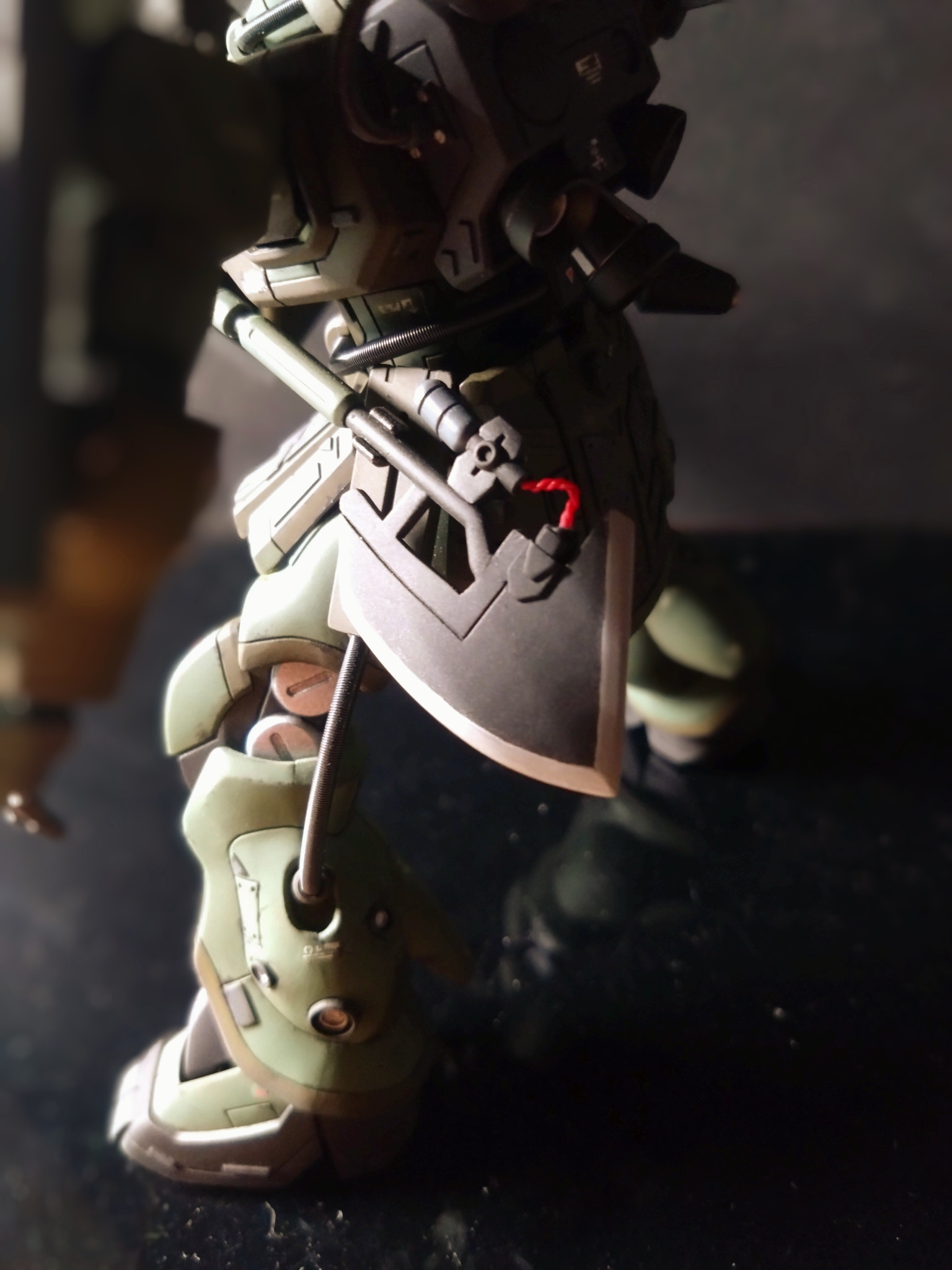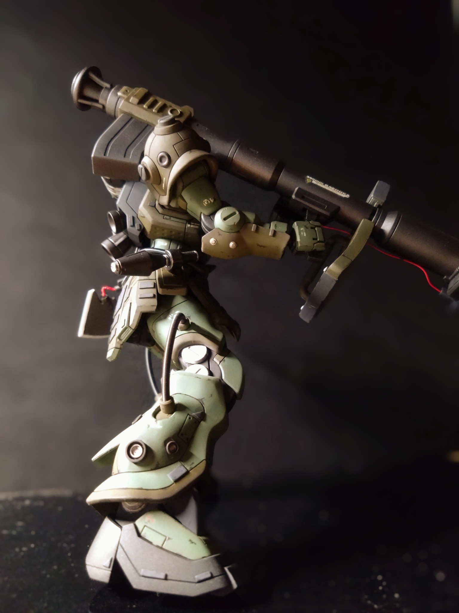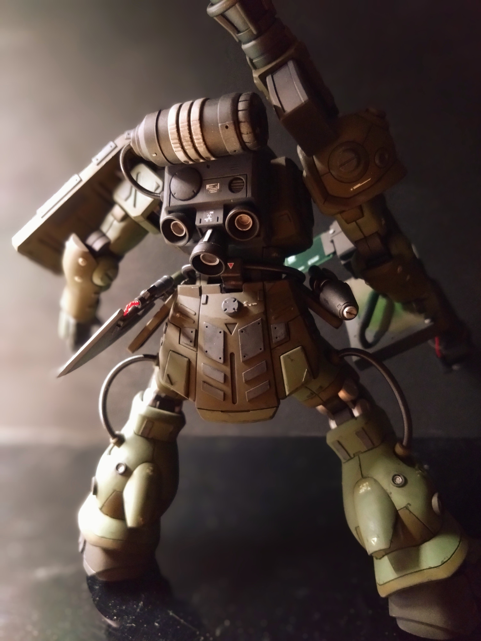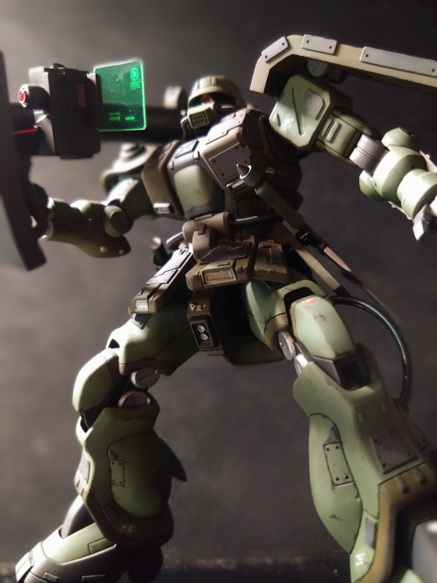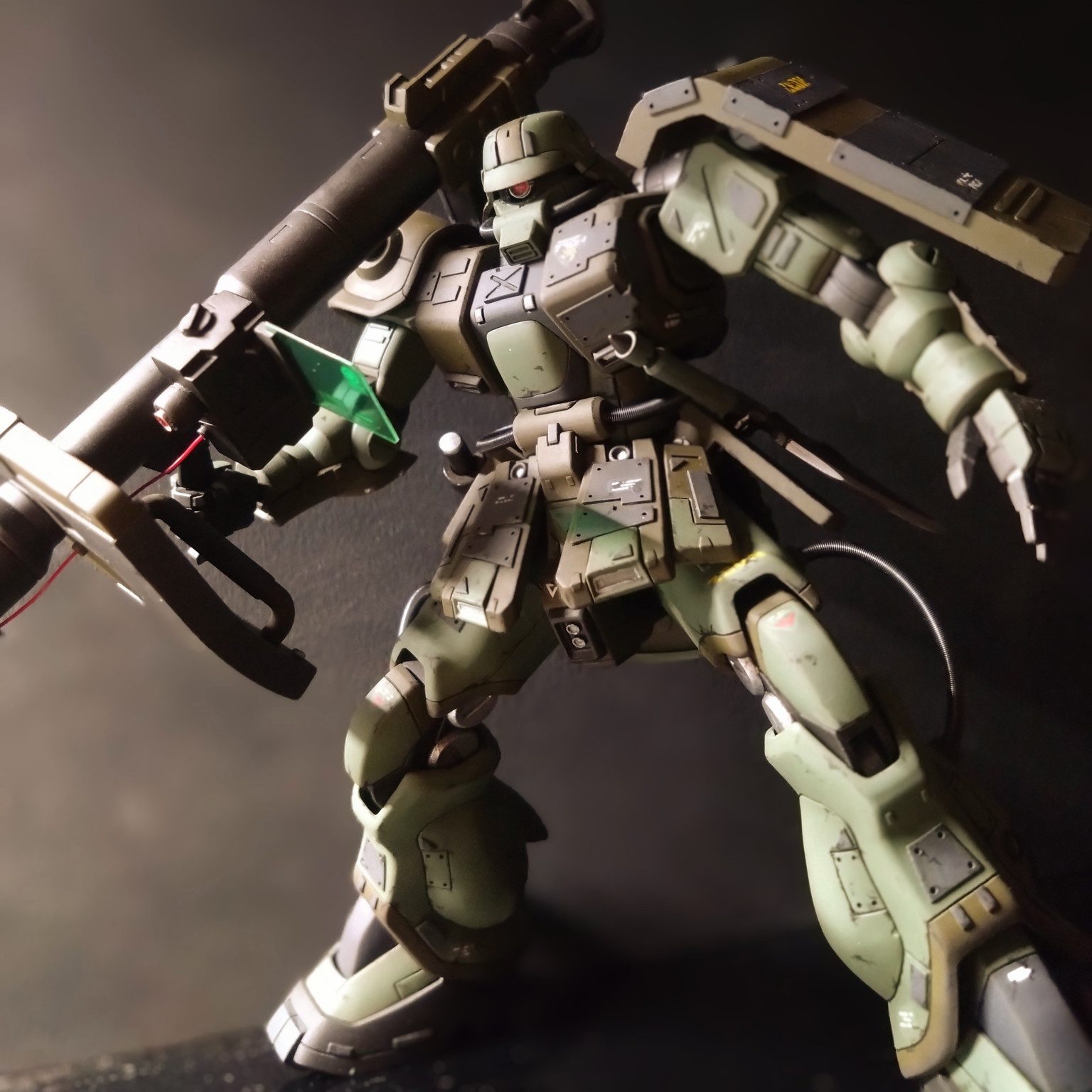 主な改造は筋彫りとプラ板でディテールアップをし、モノアイにはメタルパーツを使用しました。
