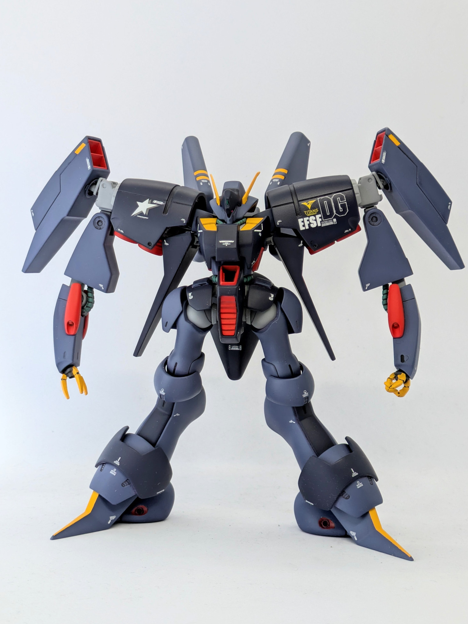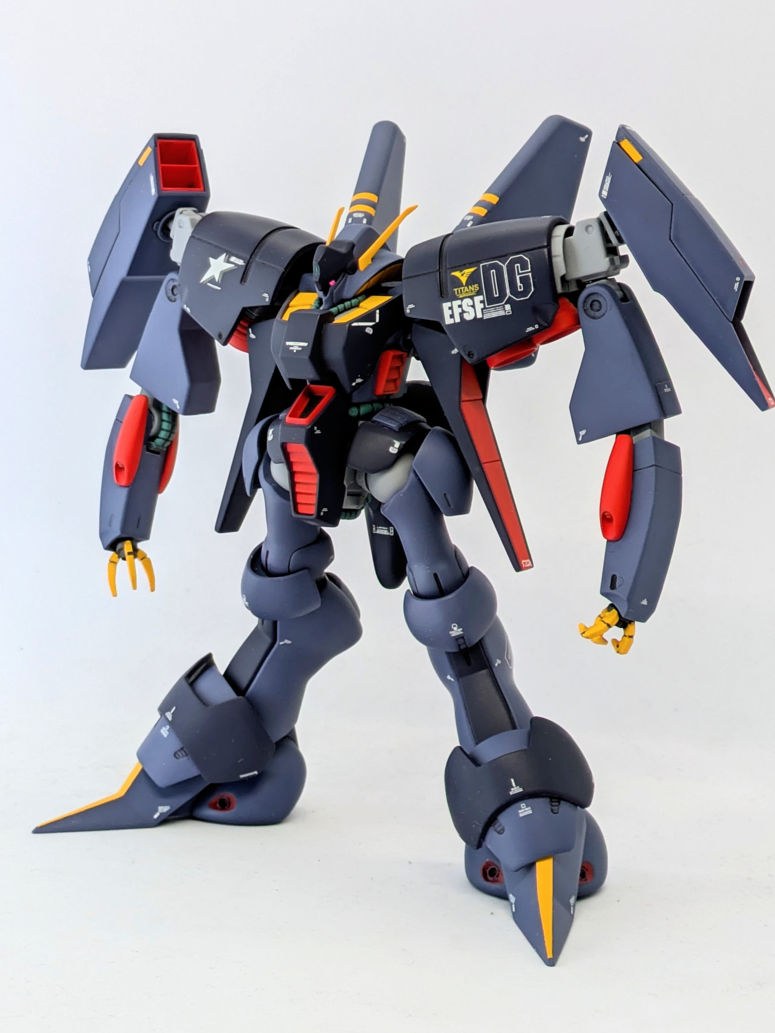 DGはドゴス・ギア。この頃のジェリド君はノリノリでしたよね。彼にはバイアランが一番似合うと思う。右肩の星はジェリド君のパーソナルマーク。ガンダムホビーライフ誌の付録のもの。