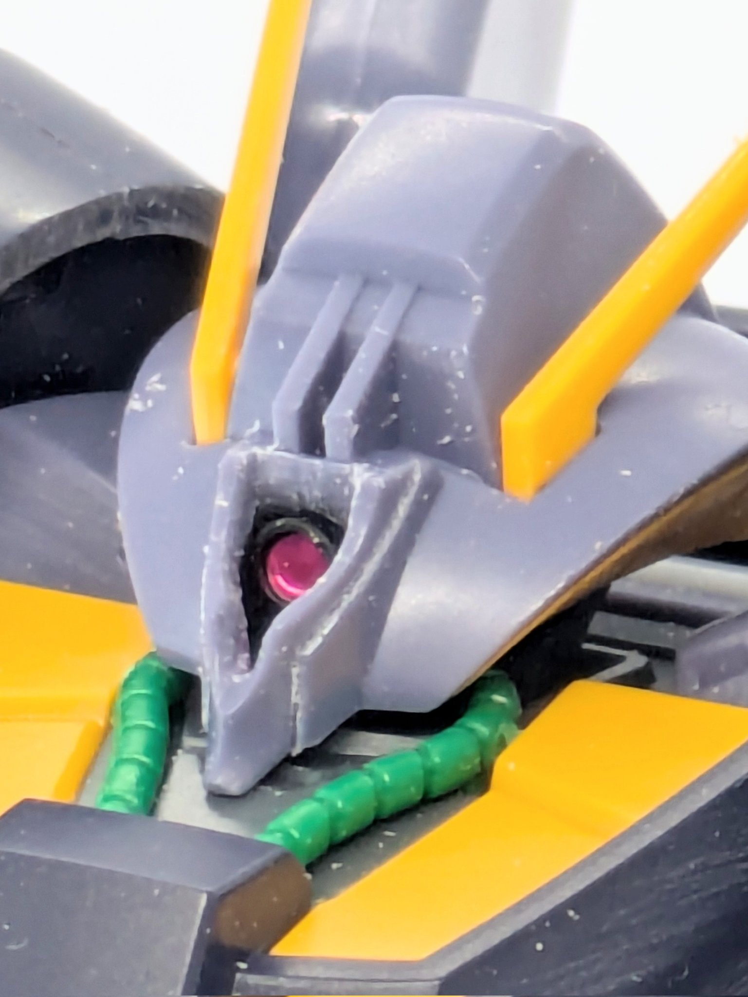 アタマの黄色いパーツにモノアイを取り付け。