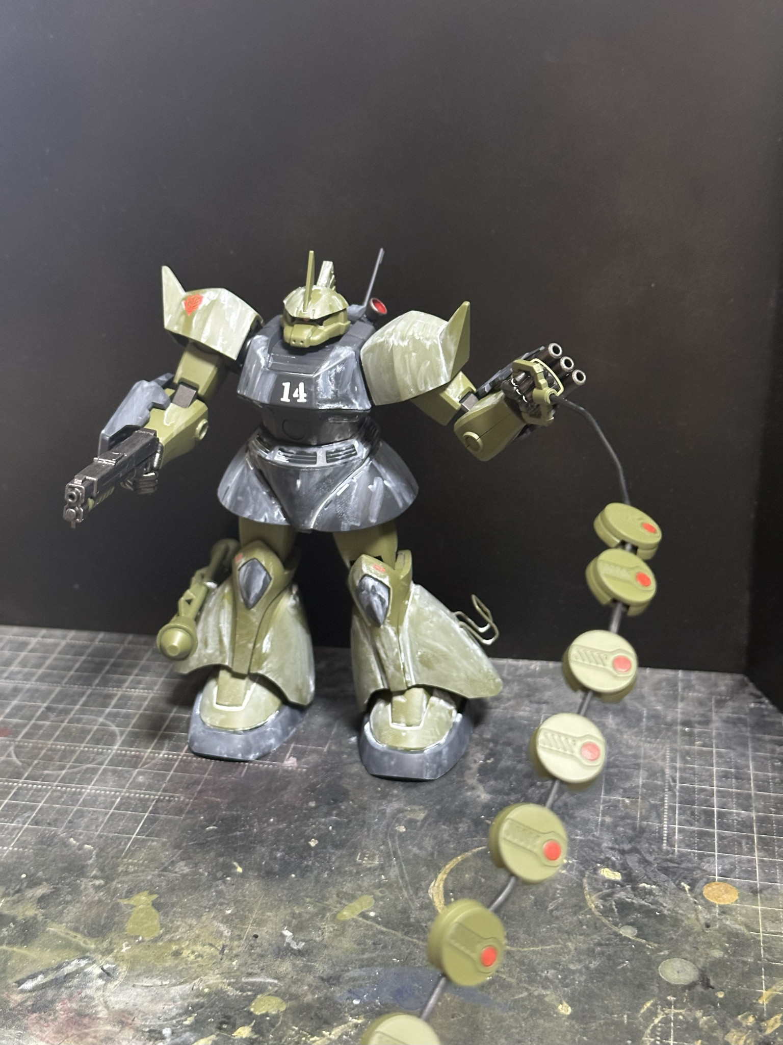 突撃轟竜 HG 2025.11/01更新 ゲルググ(対艦) 96 34 いいねしたモデラー(34) 0 0 作品を共有 対艦攻撃に全振りしたゲルググです。イェーガーのバックパックを搭載し機動力を向上させ持てる限りの爆発物で対艦攻撃をします。過去作で生まれたジャンクの寄せ集め簡単製作です 側面ケンプファーのショットガンを護身用に背面チェーンマイン用のフックを真鍮線で作成護身用ショットガンとチェーンマイン ゲルググ 量産型ゲルググ 全塗装 対艦攻撃に全振りしたゲルググです。 コメント コメントをして応援しよう コメントにはログインが必要です 突撃轟竜 ミリタリーモデルから転向しました。ガンプラ初心者です。 ガンダムチョットワカル 4 ハイズゴック支援型 ハイゴックに陸上での機動性のためにズゴックの下半身を移植した… 6 リックドムキャノン リックドムにゲルググのビームキャノンを搭載した機体です。 ア… 5 ザウォートヘビィ陸戦型 ザウォートヘビィとルブリスウルのミキシングです。ミサイルとガ… 5 ガルマがグフにキレた世界のザク 有名なガルマがグフにキレるSSのザクIIG型です。ザクIIF… 突撃轟竜さんのページ この作品をお薦め作品に設定する Please login to update your profile! Please login to update your profile! Please login to update your profile! Please login to update your profile!