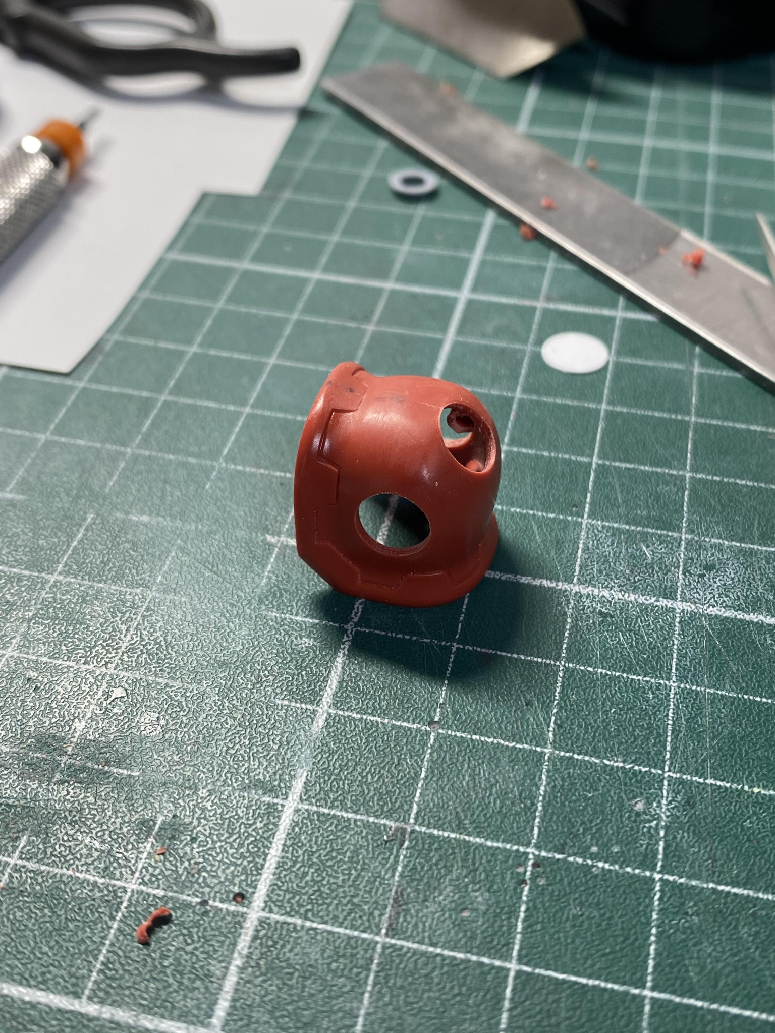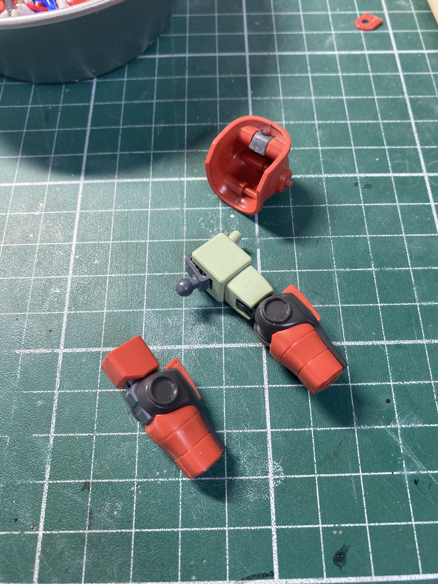 ・肘→プラ板切り出し、本体赤で塗装後貼り付け