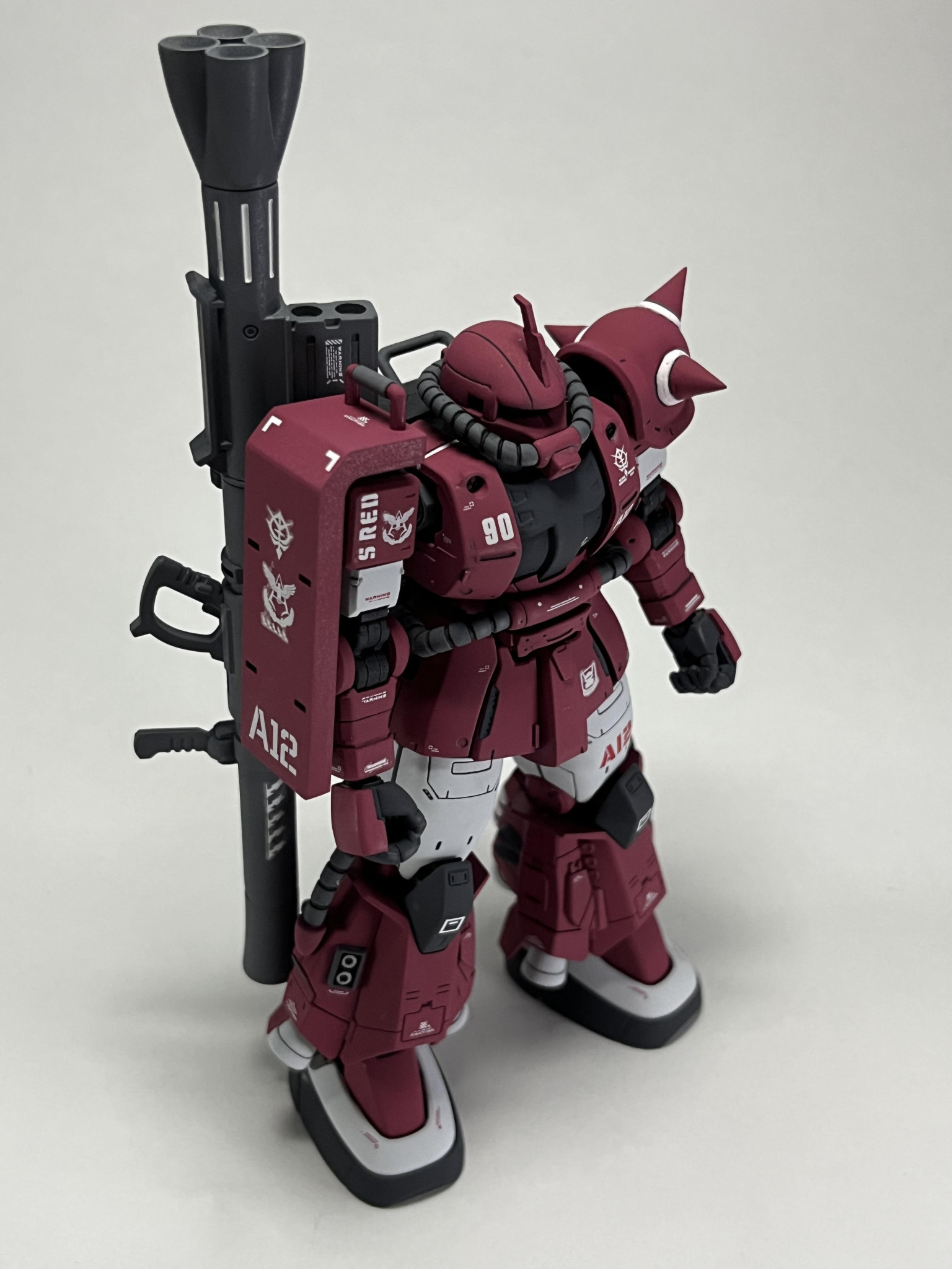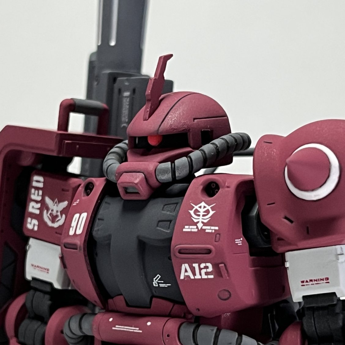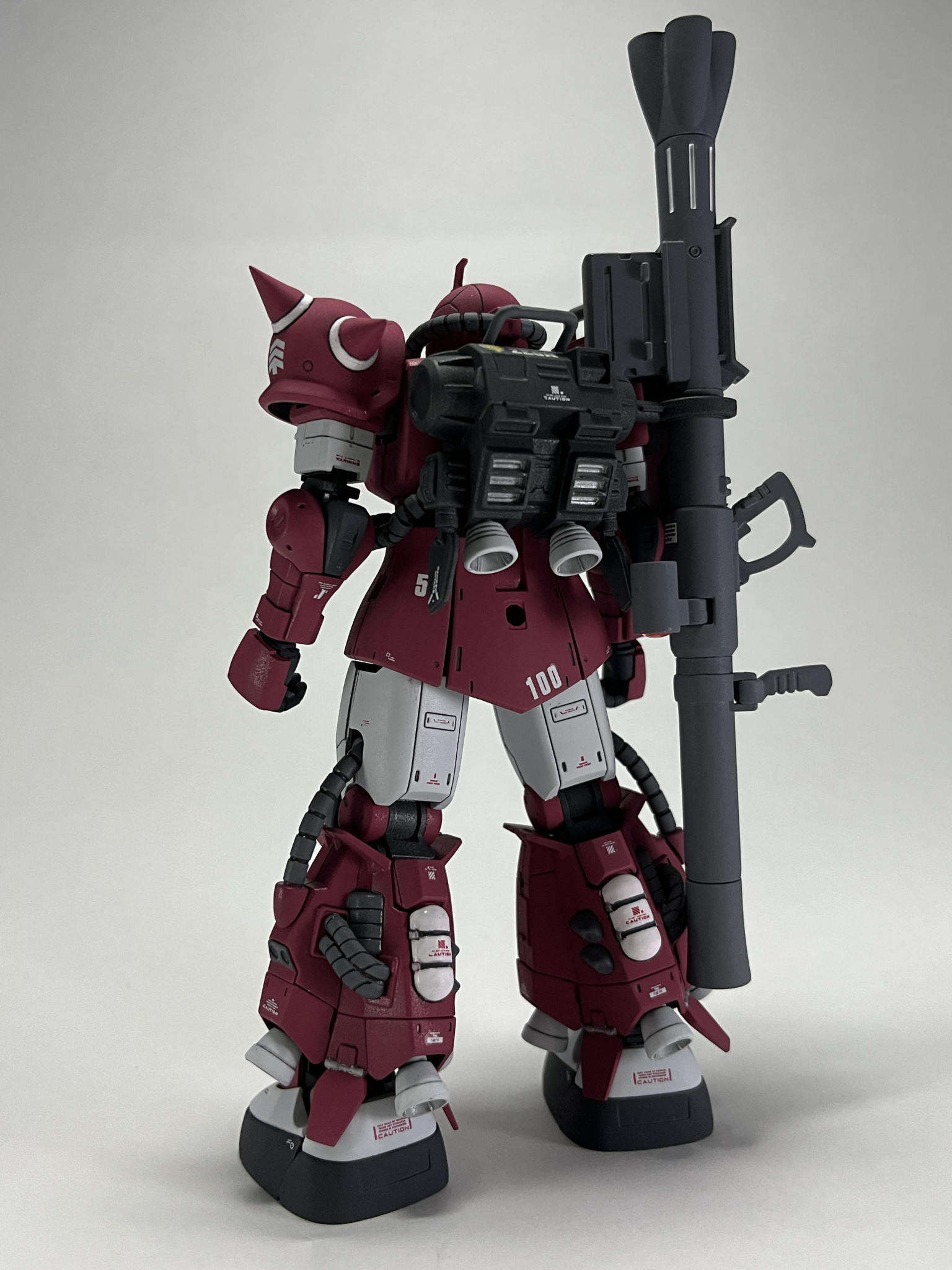 RGシャア専用ザクを量産型カラーに変更。 モールドも埋めてシ…