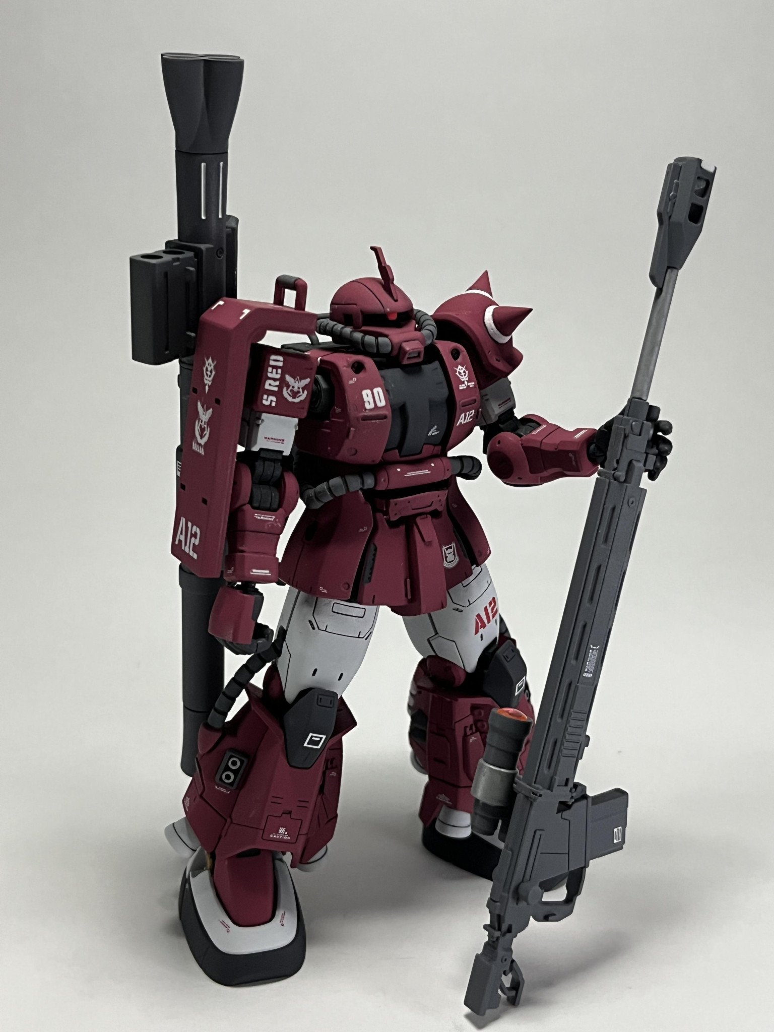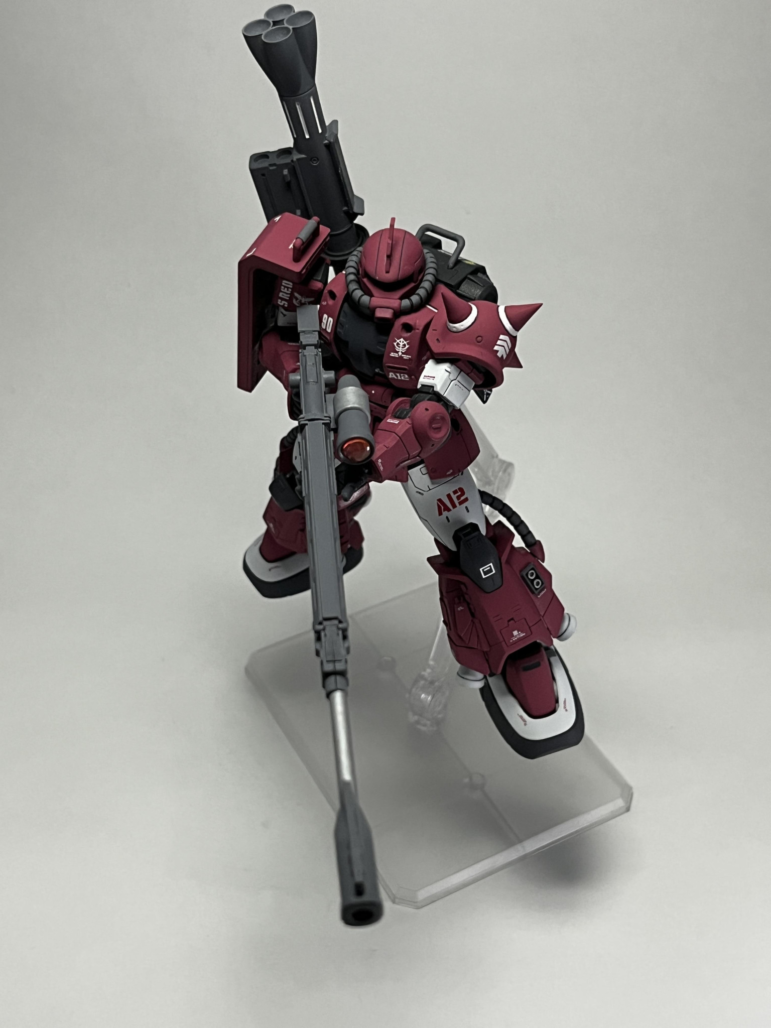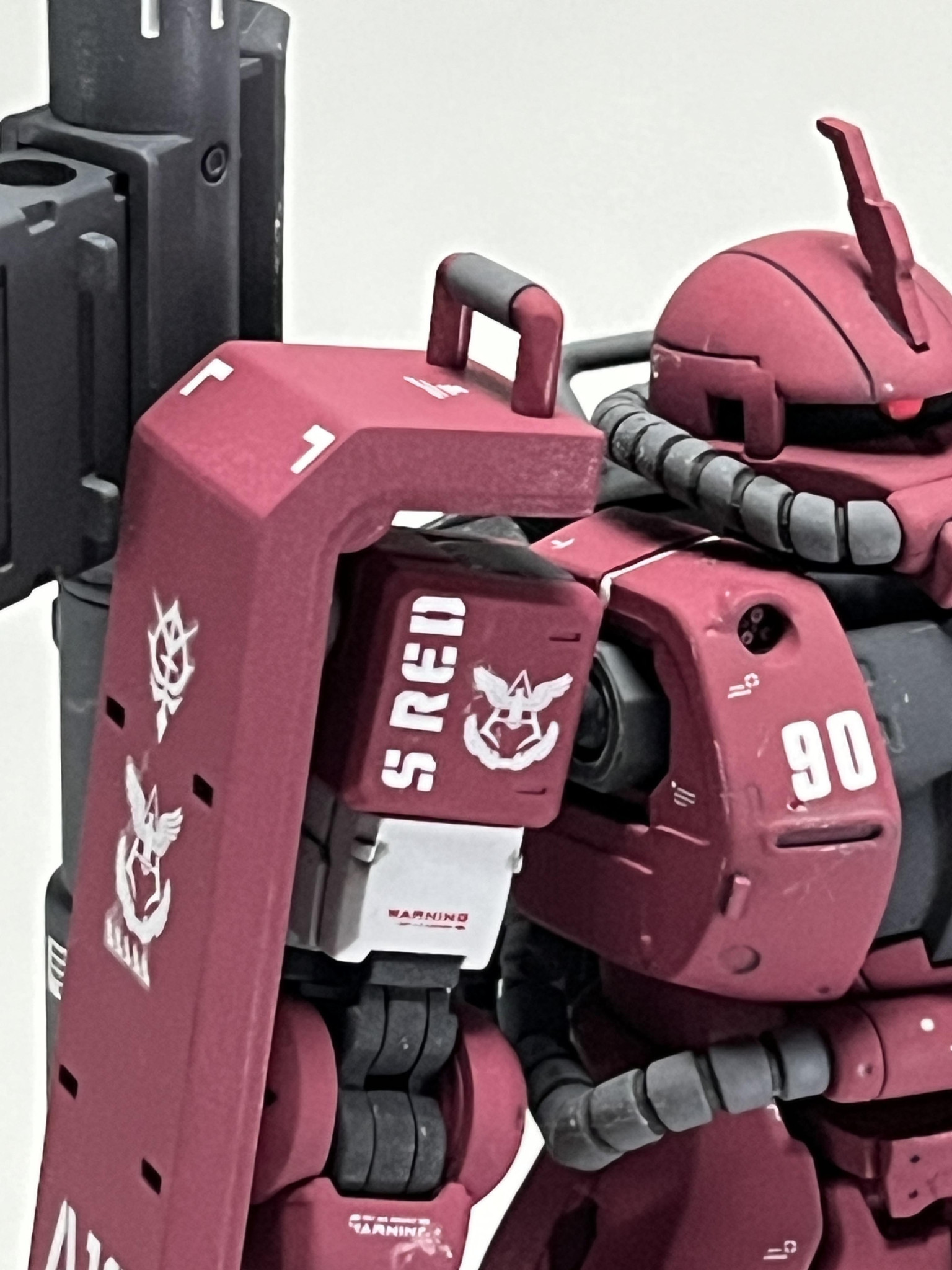 RGシャア専用ザクを量産型カラーに変更。 モールドも埋めてシ…