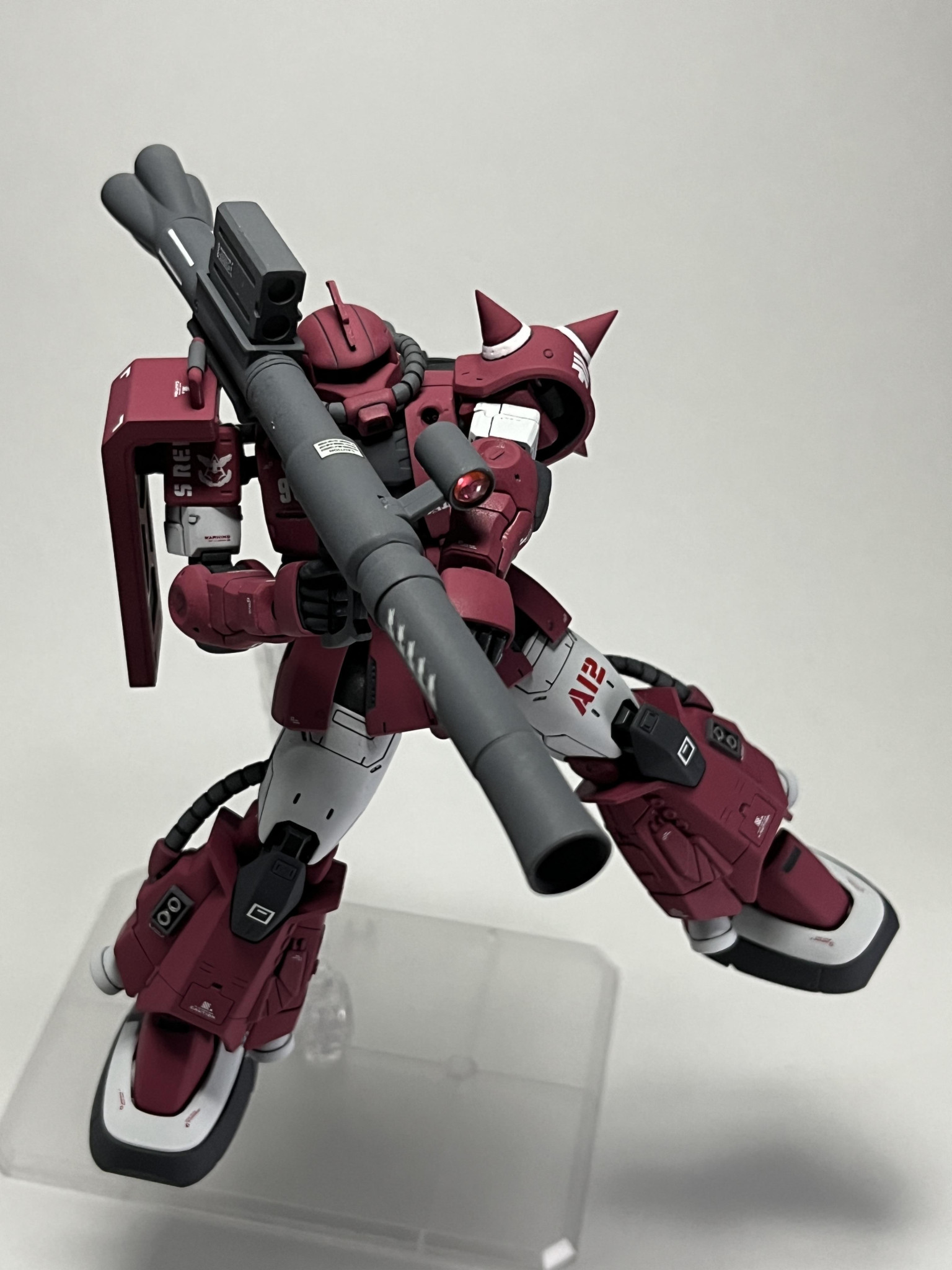 お気に入りのショットです。ザクはバズーカがよく似合います。