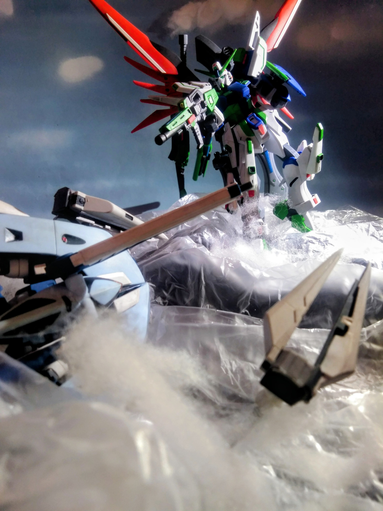 👆上ページ Shotの「アビス ガンダム 3rd Lot 」との対決は『この🌊荒れ狂う波間🌊』を再現しようと試みました🙄