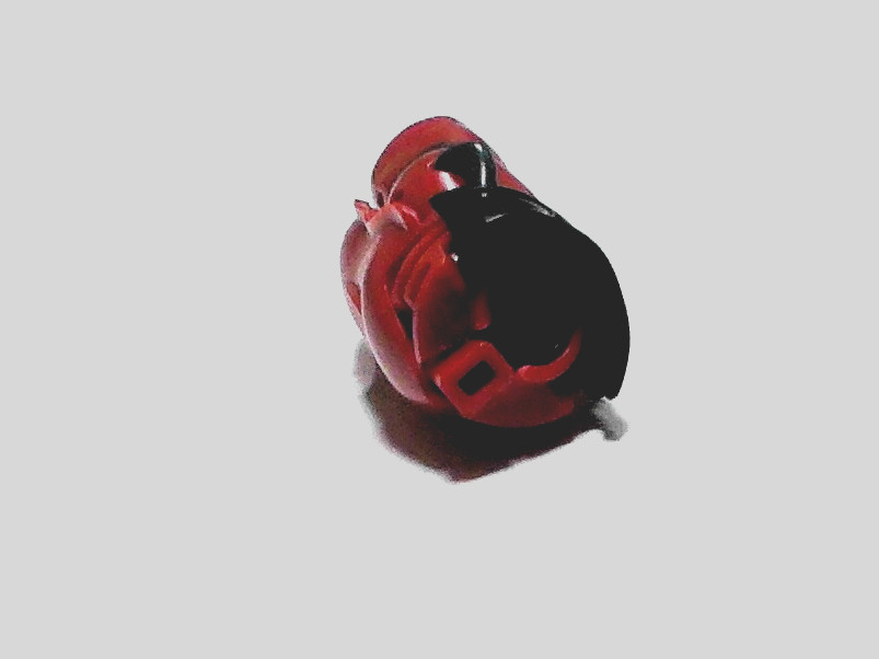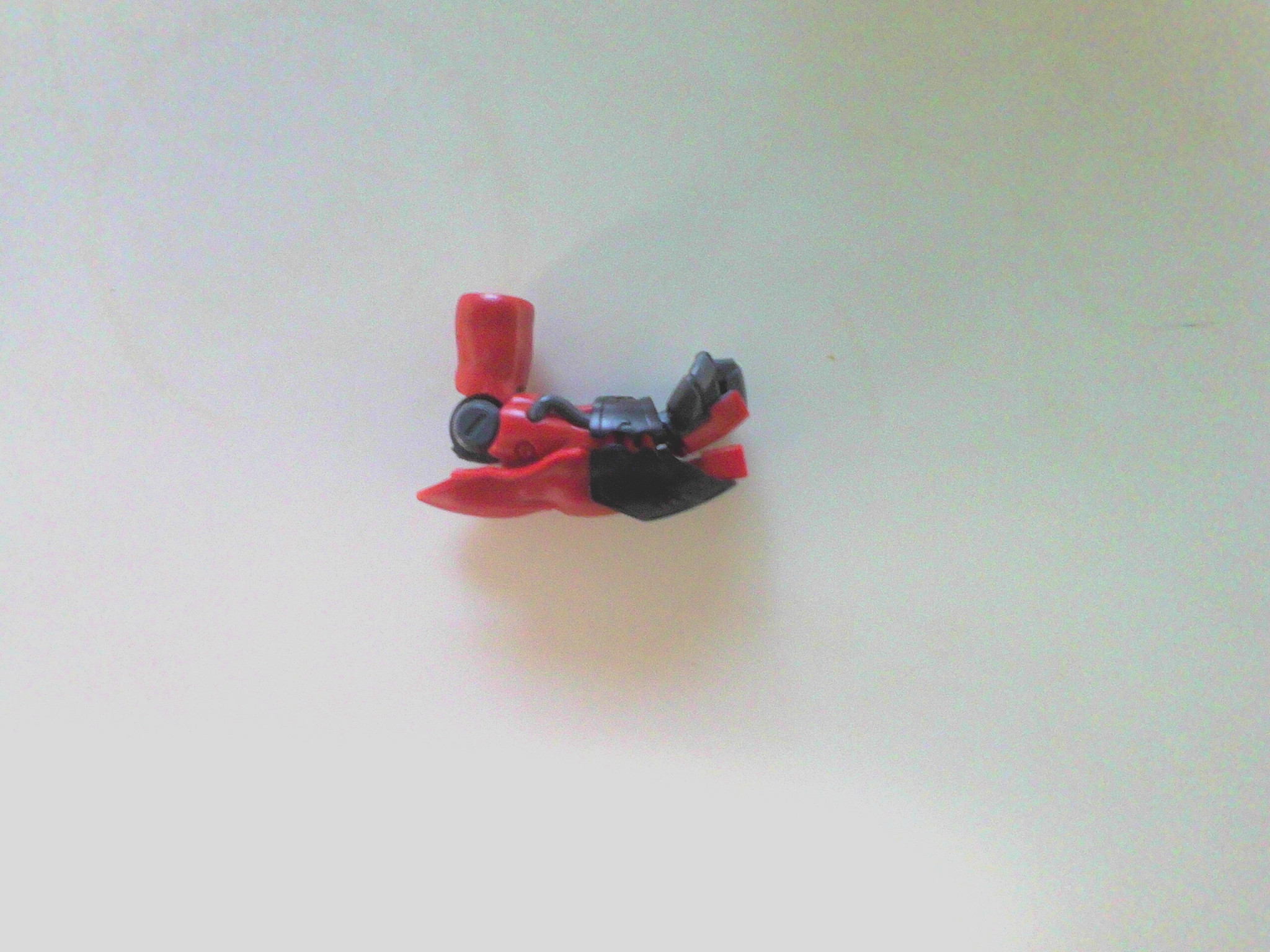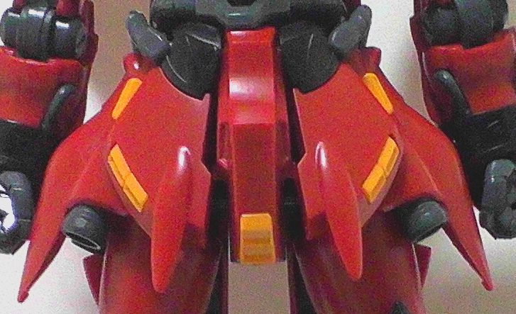 まず、腰幅を縮めるためにバーニアの位置を奥に詰めて、その時に干渉する赤色にパーツを切り取って、腰のポリキャップとの接続ピンの根本を切り取って奥に押し込みました。