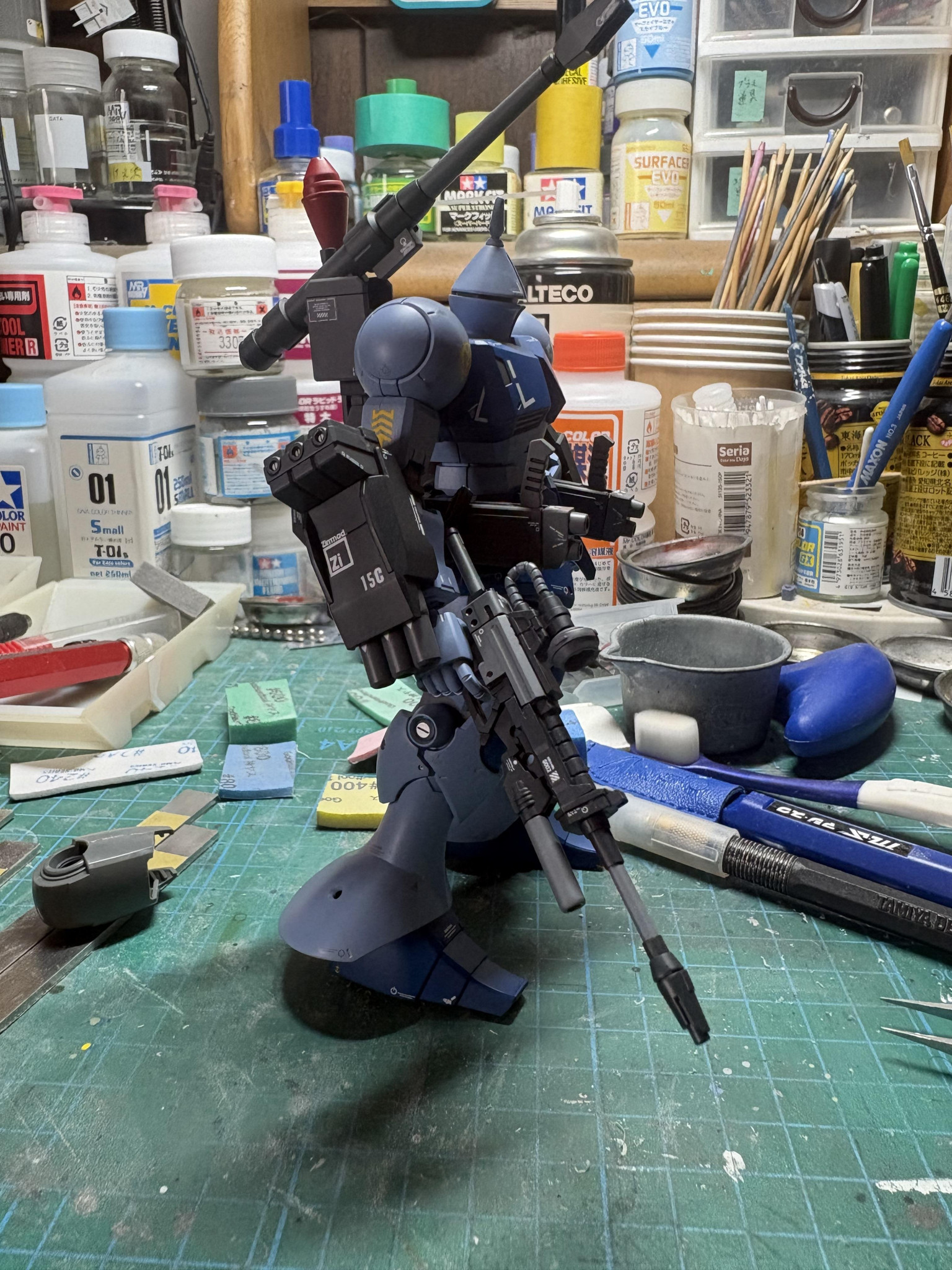 HGグフカスタムを量産型ザクカラーで塗装しました 武装とハン…