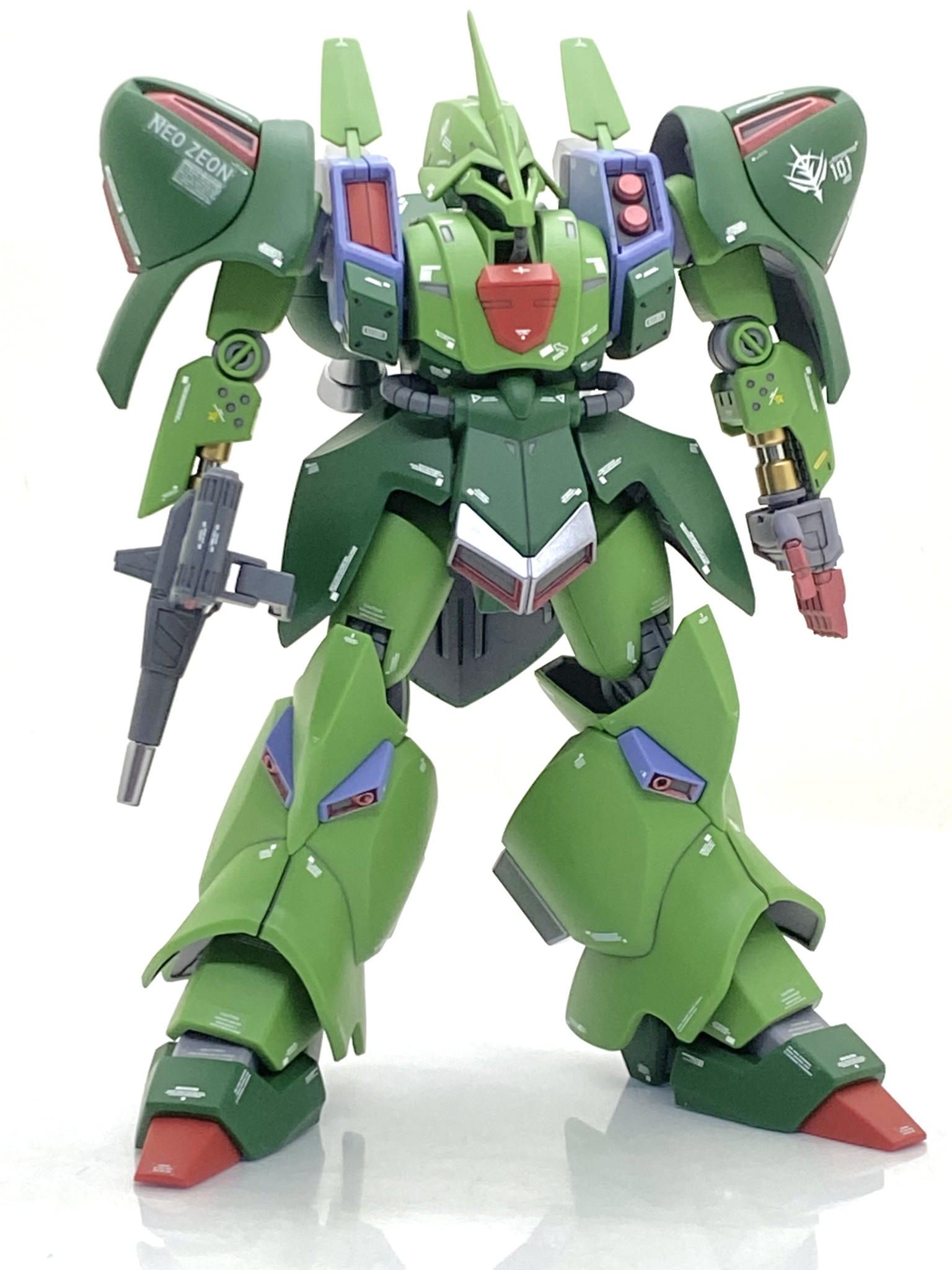デカールはMG サザビーVer.KaをメインにMG シナンジュ・スタイン Ver.Kaを使い、1/3位はマーキングシールを使いました(主にRE/100 ハンマ・ハンマ)。サイズは違いますが全てジオン系なので違和感は殆どありませんでした。