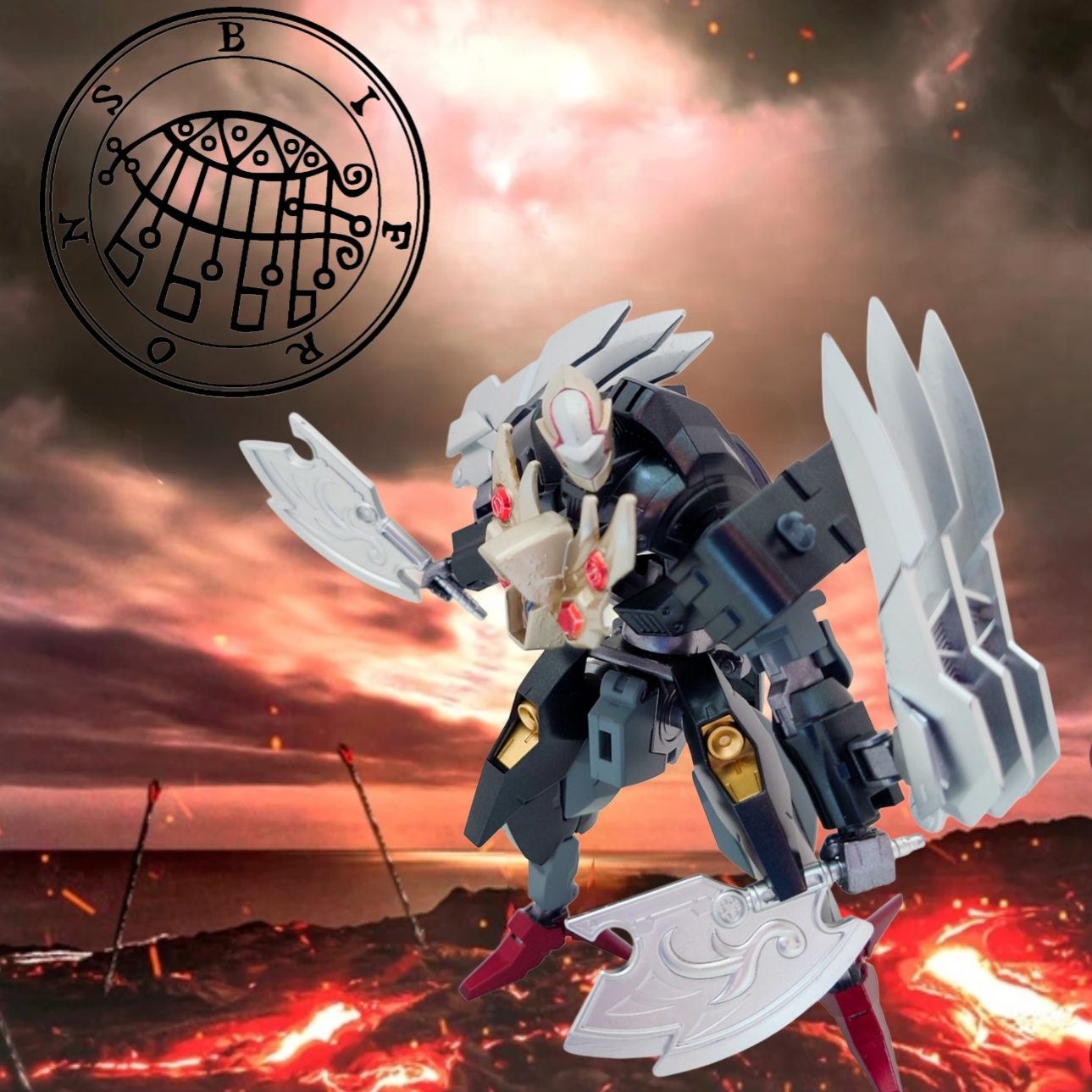 鉄血のオルフェンズのガンダムフレーム72体のうちの一体「ガンダムビフロンス」という設定です。今回は、今までと趣向を変えて、厄祭戦時のガンダムバエル「王」に側近として仕えた三騎士の一機というテーマで作成してみました。