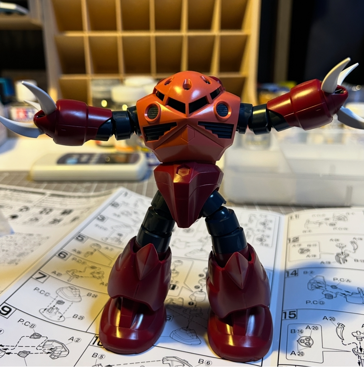 人生初めてのプラモデル何を作るかめちゃくちゃ悩んだんですが、シャアがめちゃくちゃドヤ顔してた例のシーンが忘れられずシャア専用ズゴックを作成しました!!!超楽しかったです!!!