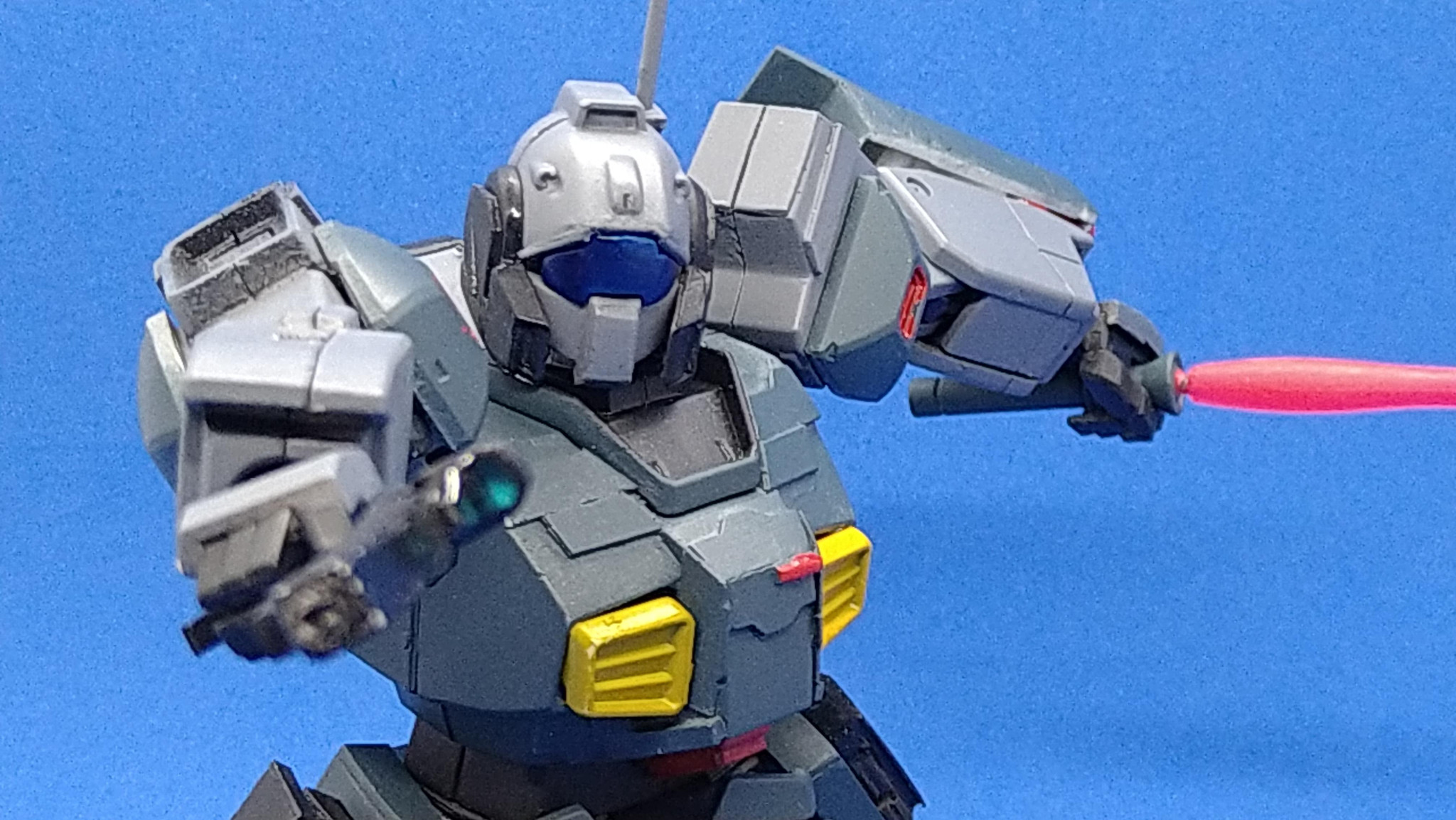海外ドラマの警察がよくする拳銃とライト( ビームサーベル)の構え。ミサイルポッドが結果的にフルアーマーガンダムみたいな盾みたいな運用になった