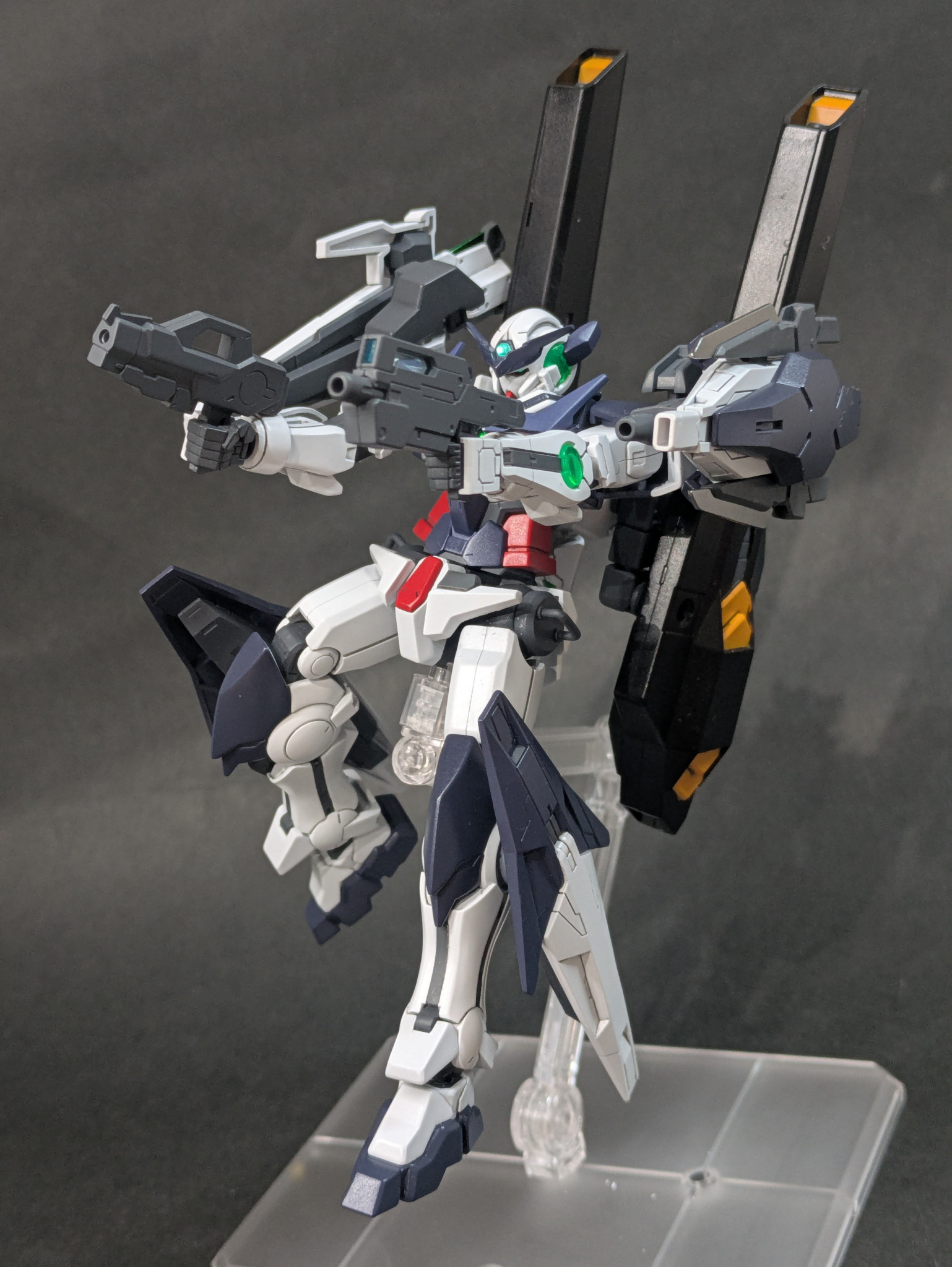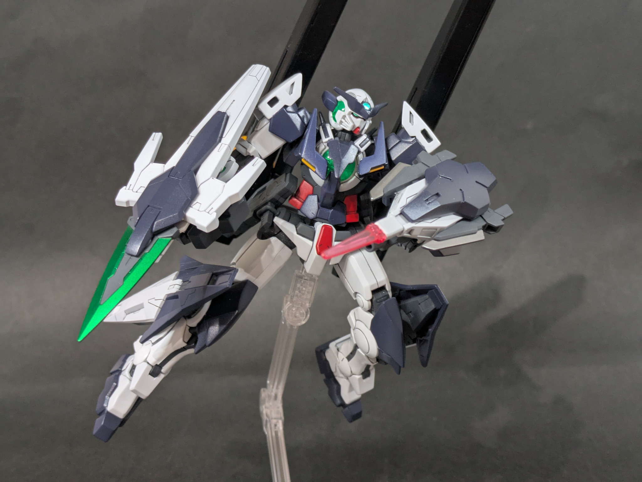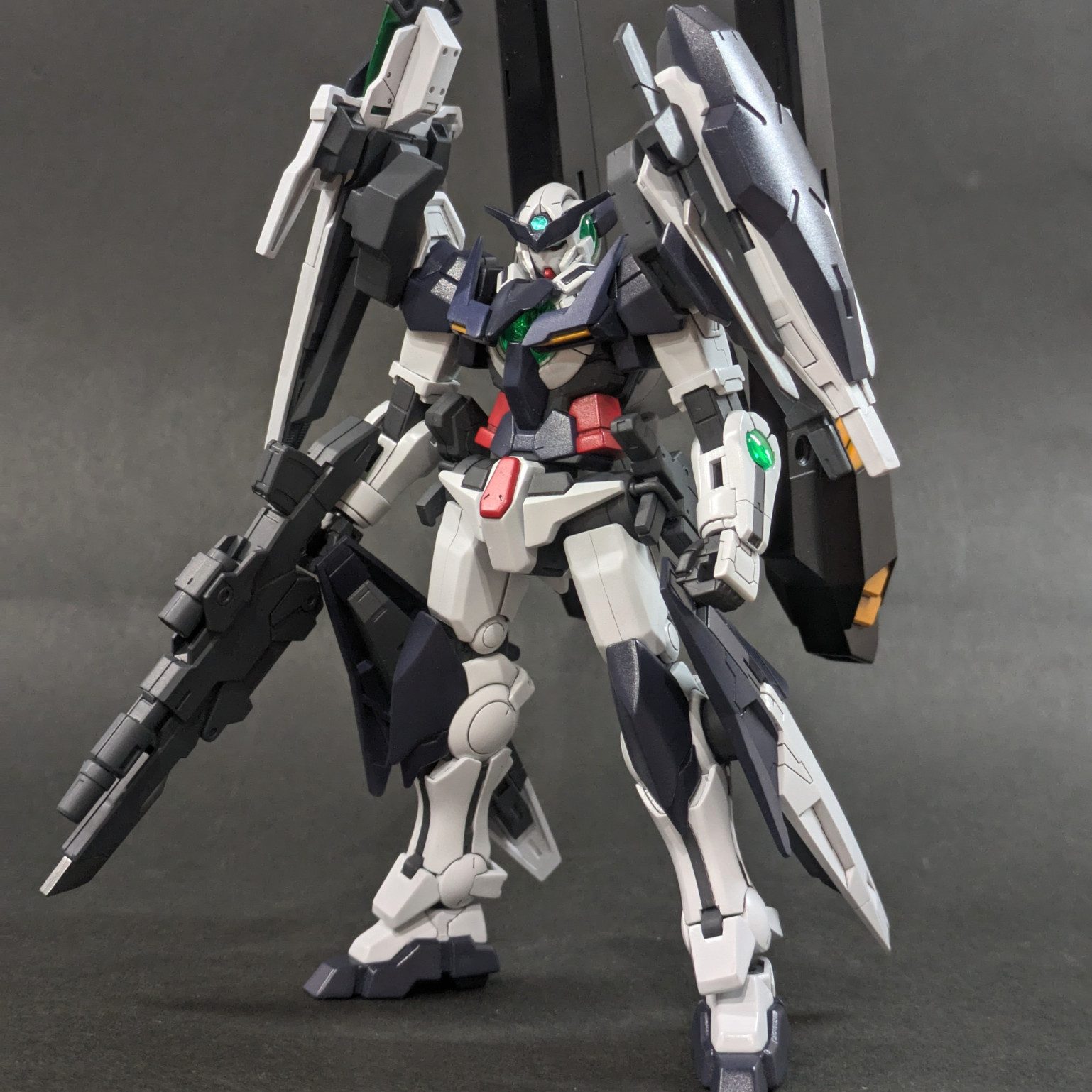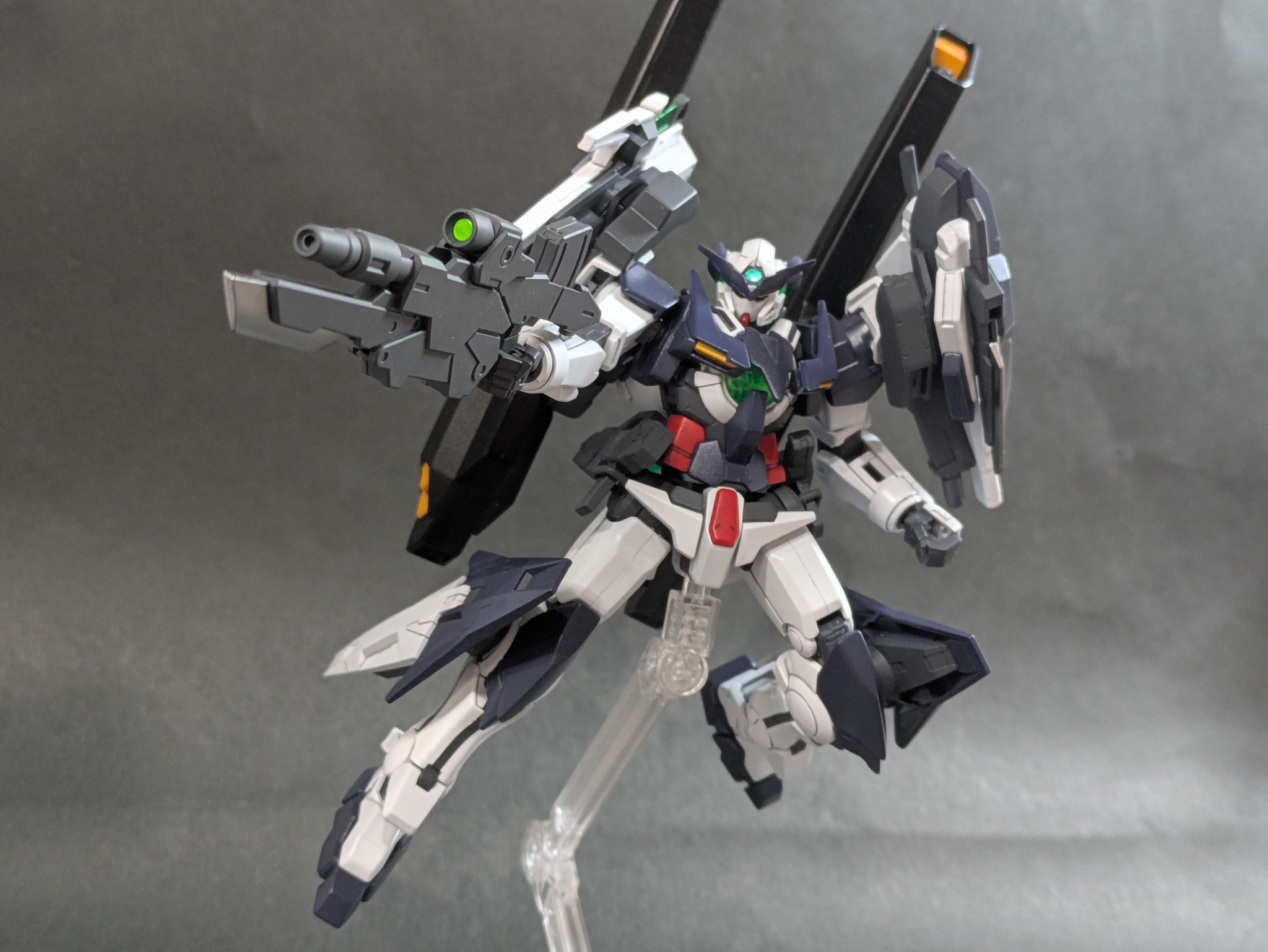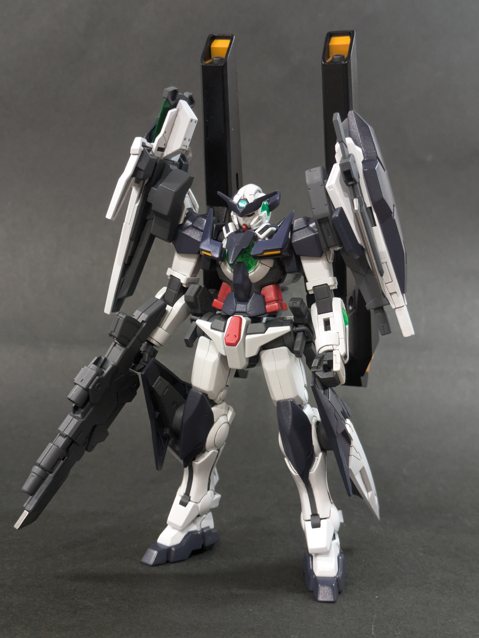 全身の武装はコマンドクアンタ、リボーンズ、ダブルオーダイバー、アメイジングケンプファーなど、関連のある機体から拝借しました