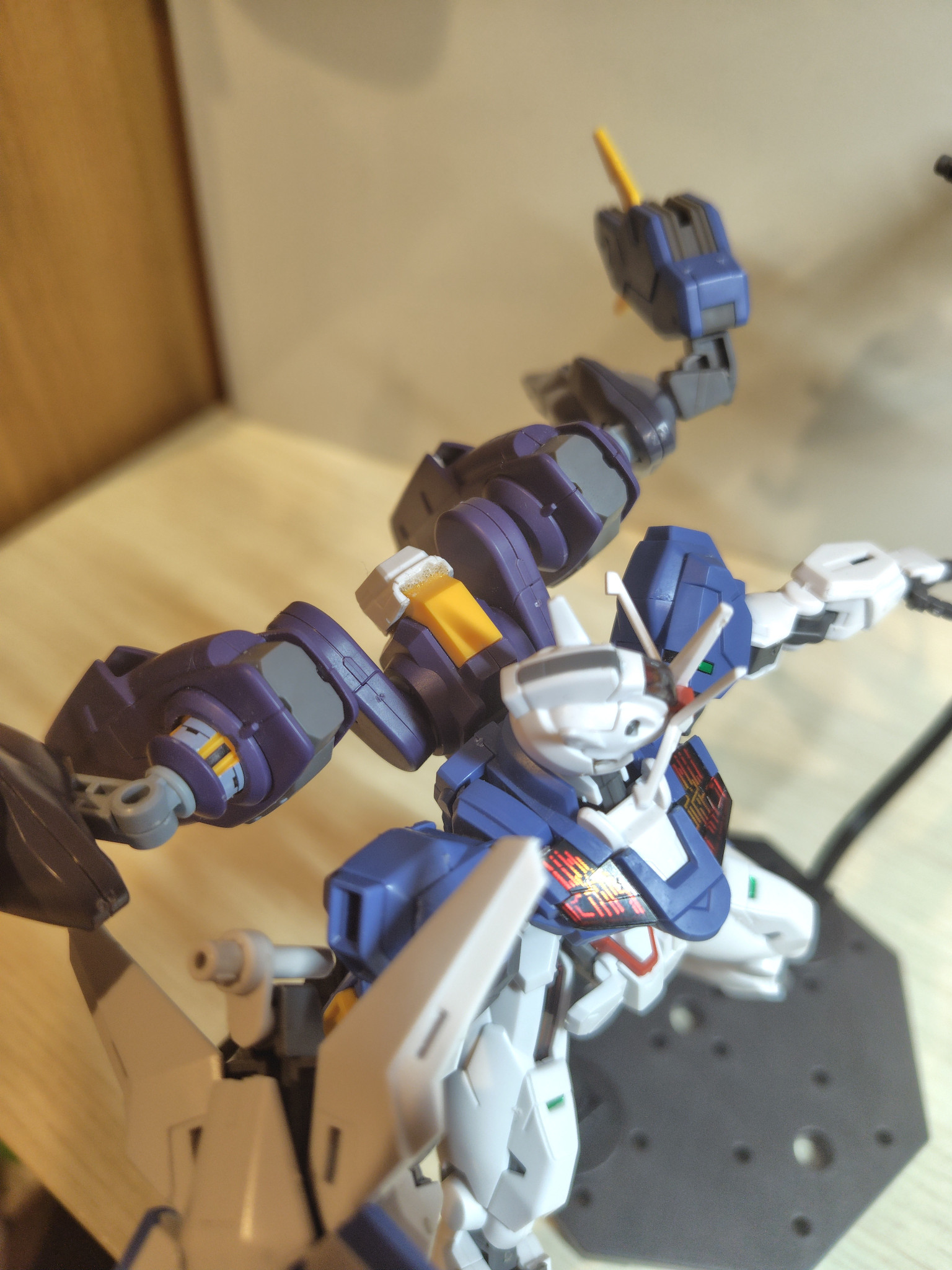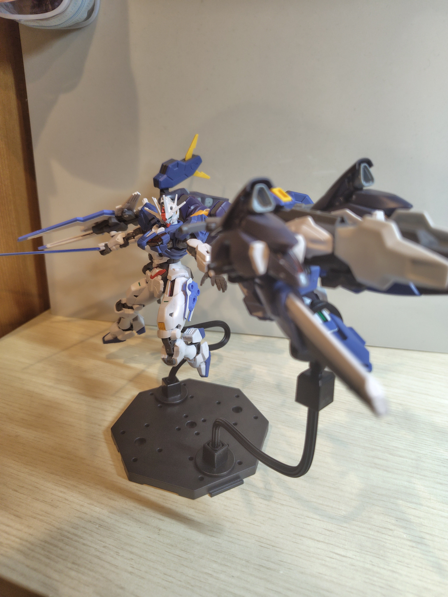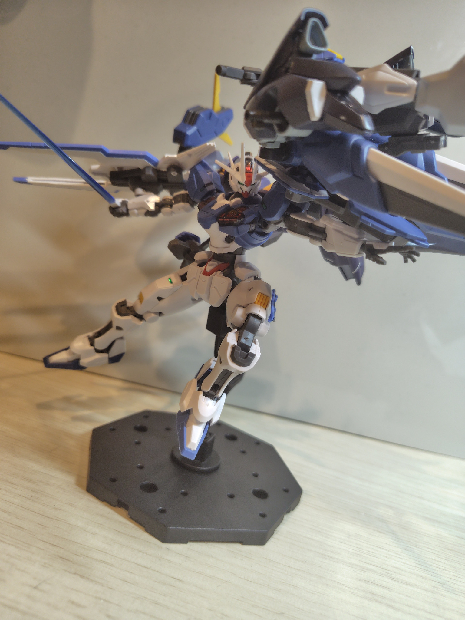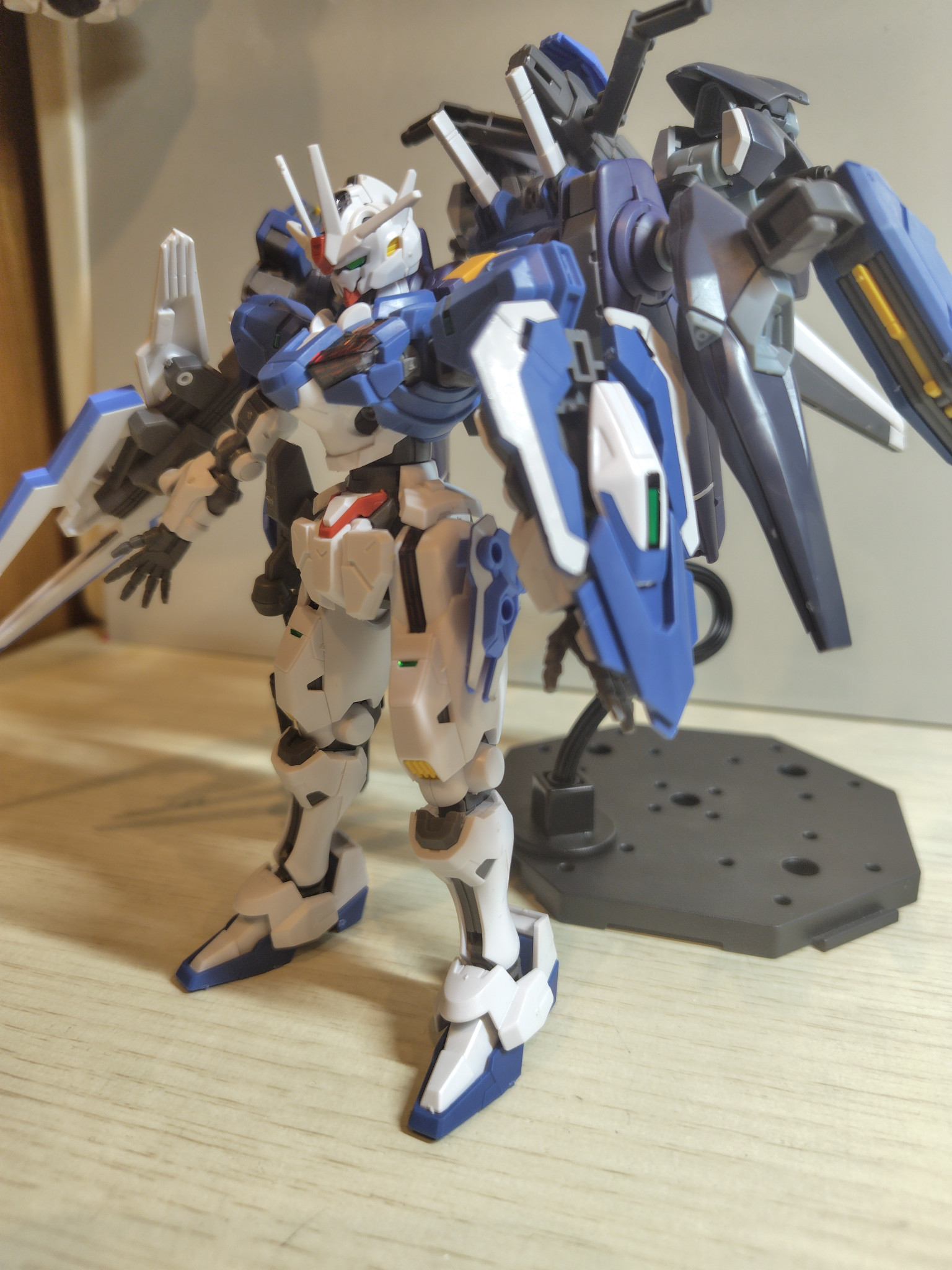 エアリアルがもしスレッタの考えに賛成してお母さんを止めるためにスレッタに協力したらという妄想で作った機体です。ベースはエアリアル改修型で右腕とビットをエアリアル、バックパックをミラソウル社のフライトユニットとファラクトと改修型で改造しました。そして武装をエアリアルのビームライフル、改修型のライフルという感じになりました。ちなみにお母さんはもちろんキャリバーンに乗ってます☆
