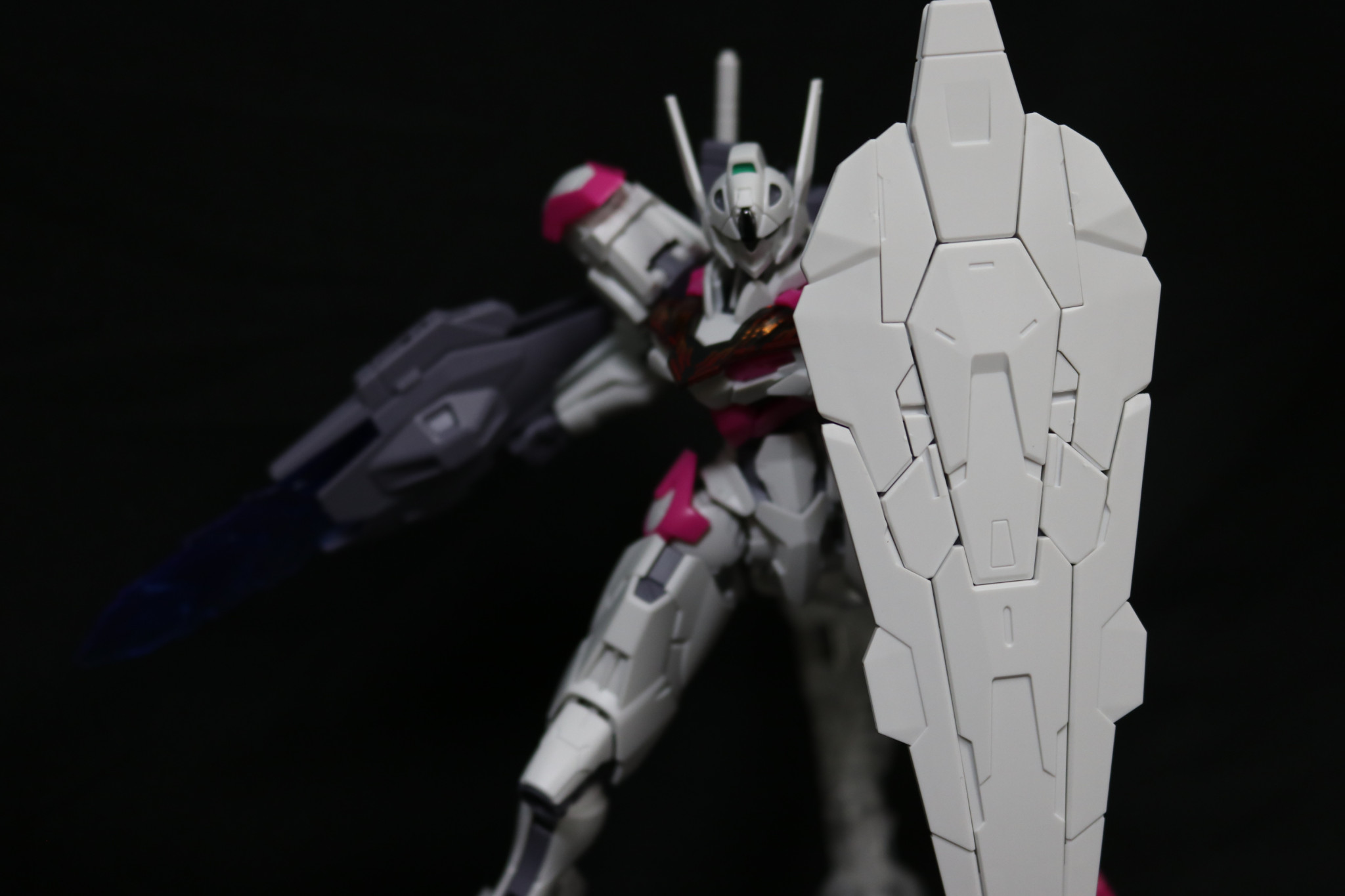 ボディ全体にビットを装備できるエアリアルと異なり、ビットを基本的に背面のバックパックに装備するという無理やり感をこれはこれでかっこいいです(gandam-hand2)