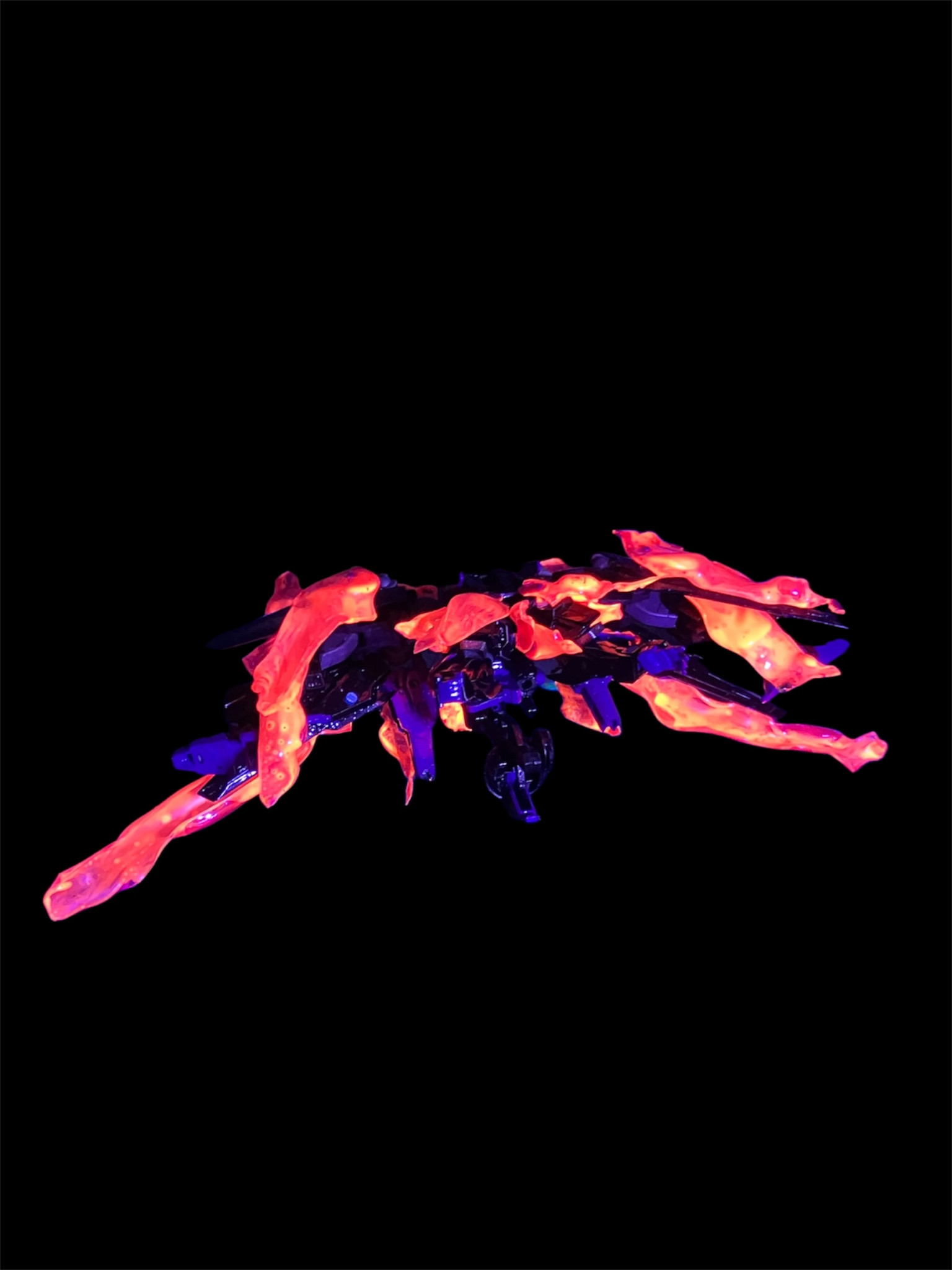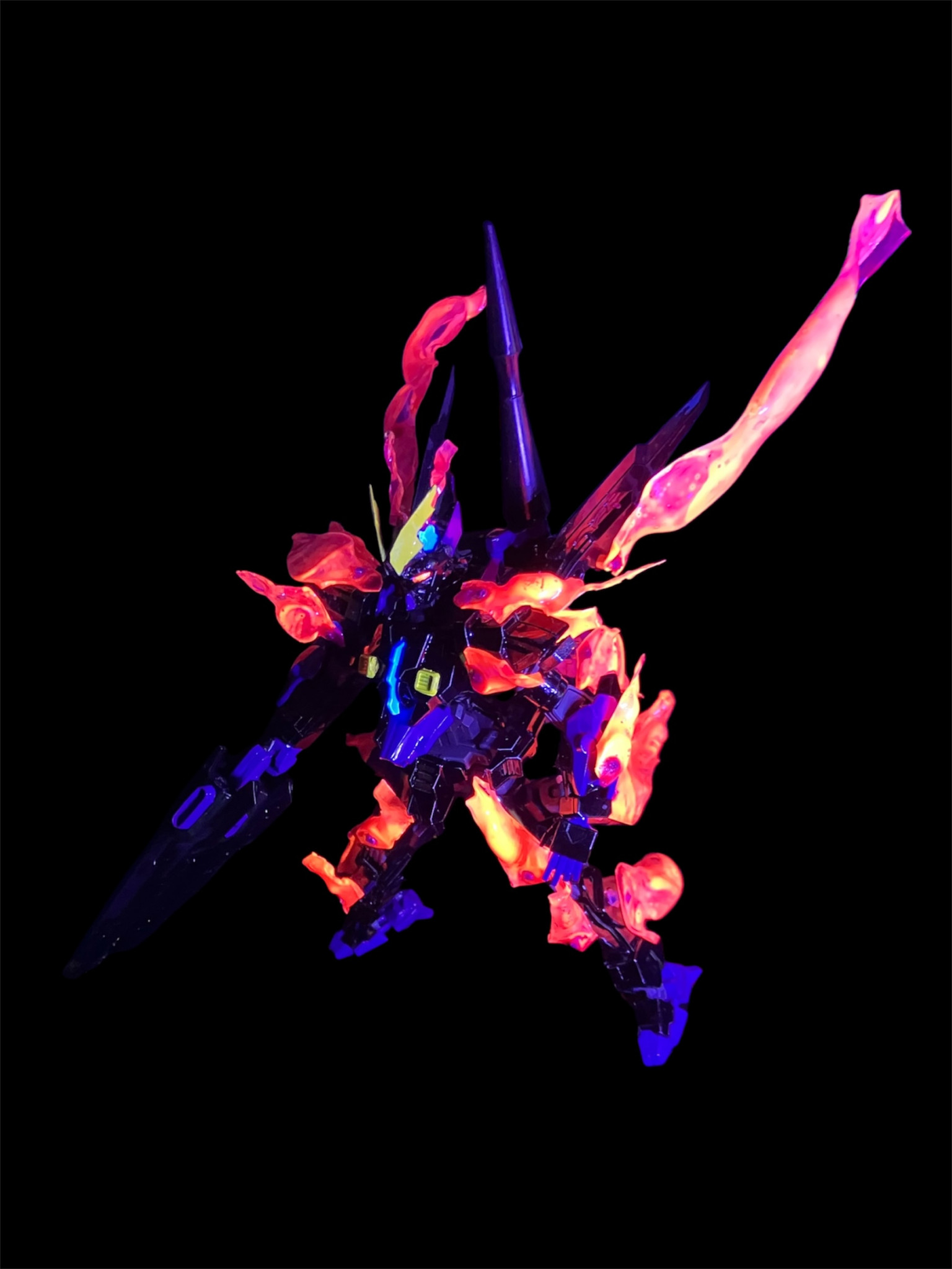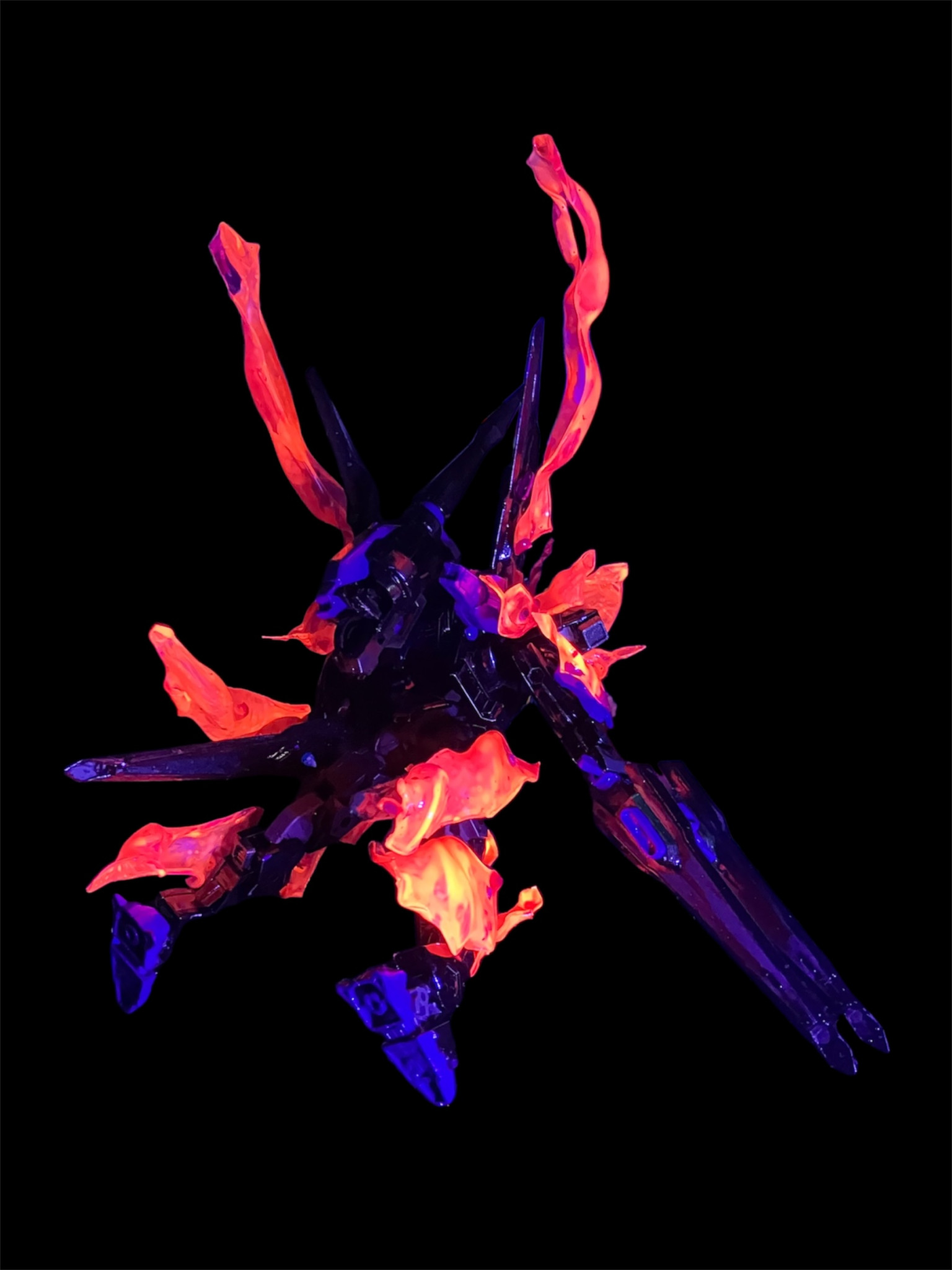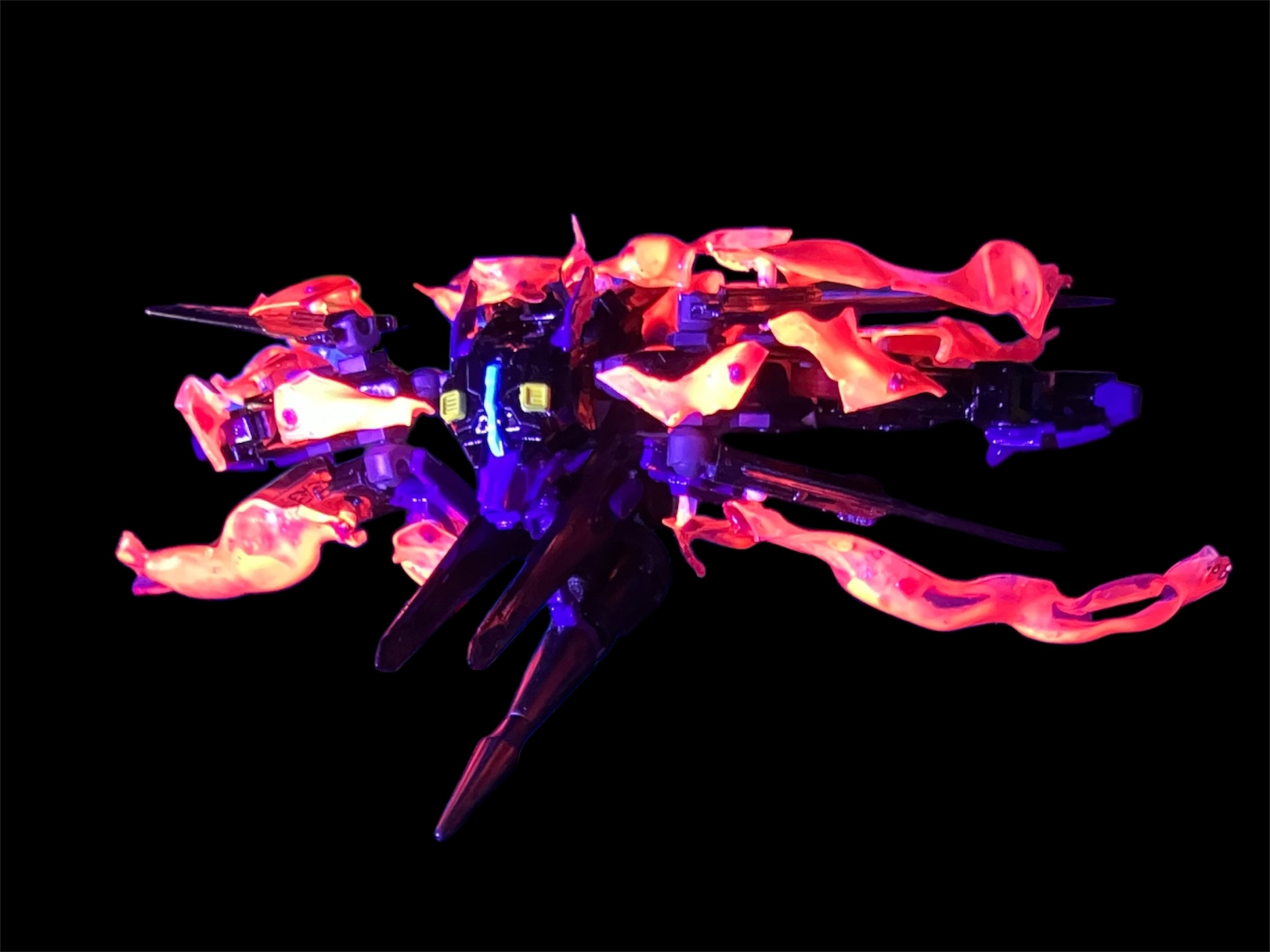 裏側。塗装はエフェクト内側に面する箇所を蛍光ピンク、外側をクリアピンクで塗装して内側から光が漏れ出るようにしてみました。