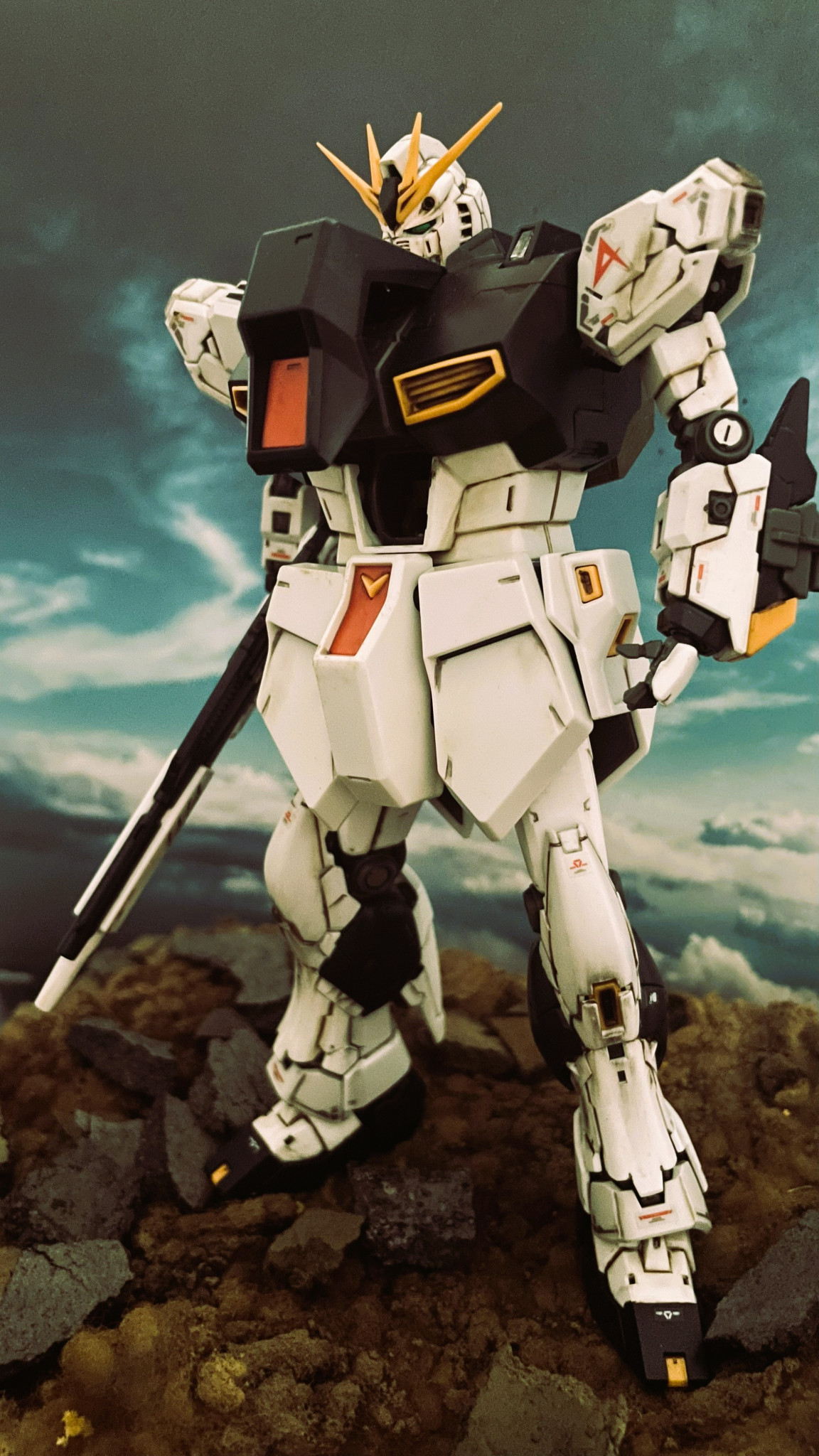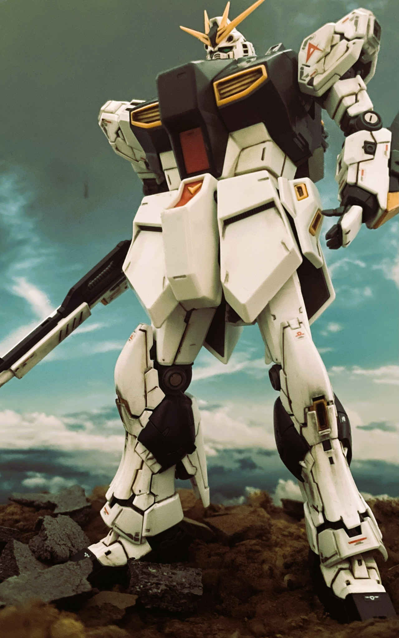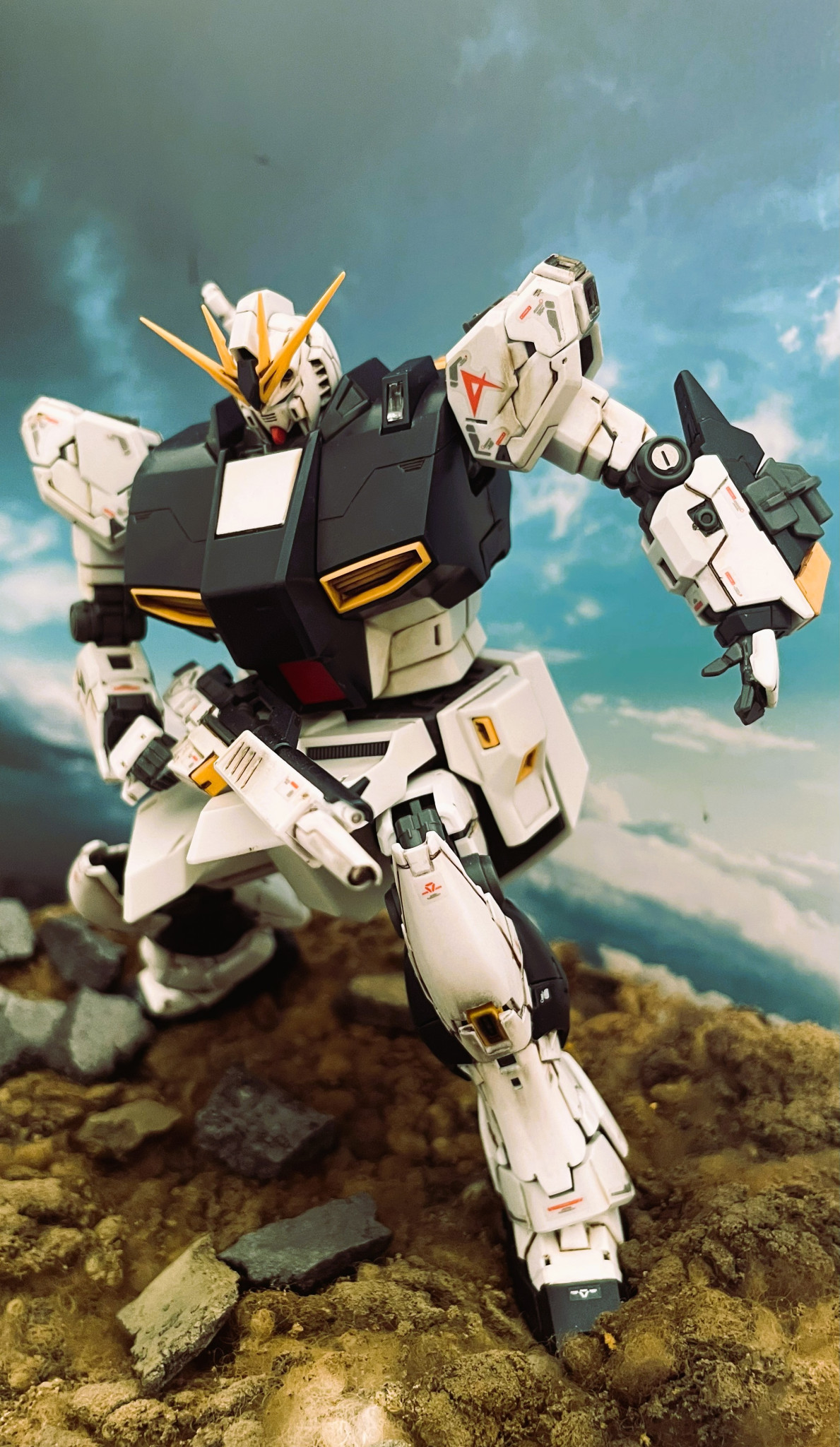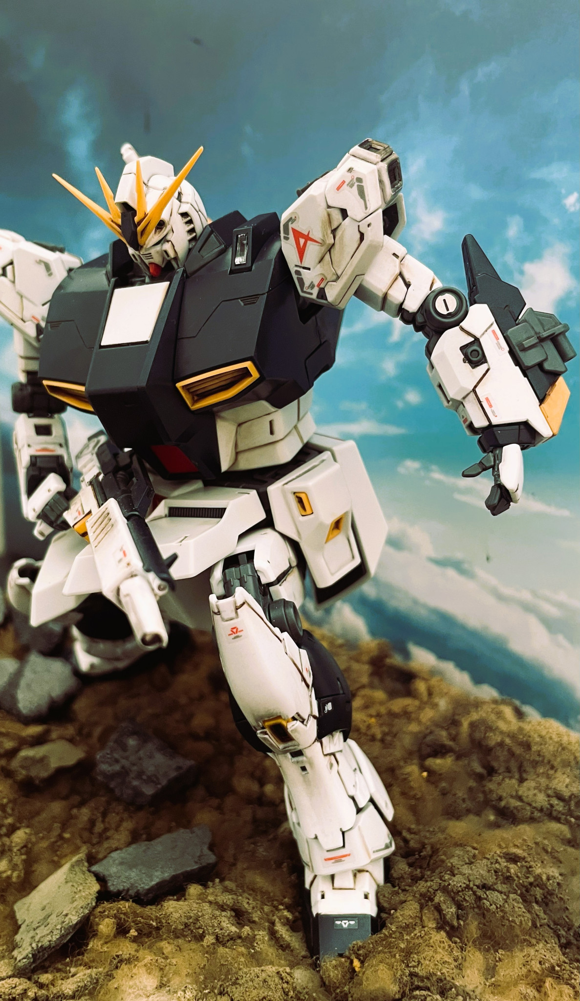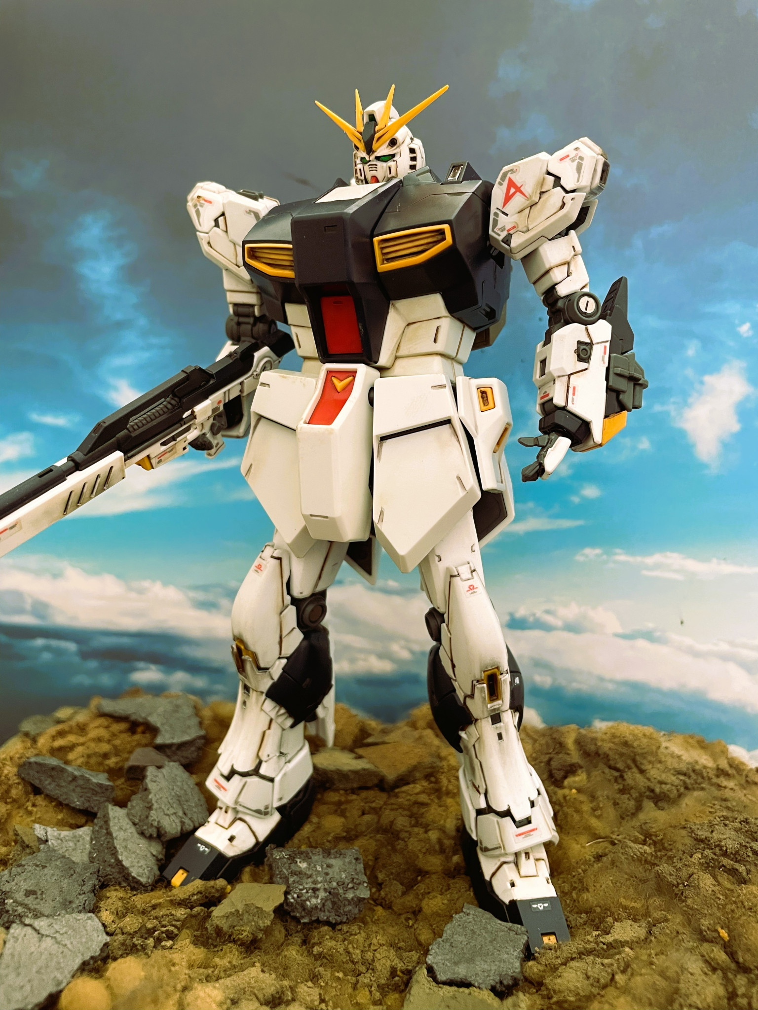 RG νガンダムとMG νガンダムとのミキシングビルドとなります。RGのボディの造形が個人的にはあまりしっくりきておらずMGの「幅」を活かして劇中のイメージに近づけようと試みました。手足の造形は申し分なくRGのものをそのまま採用しております。
