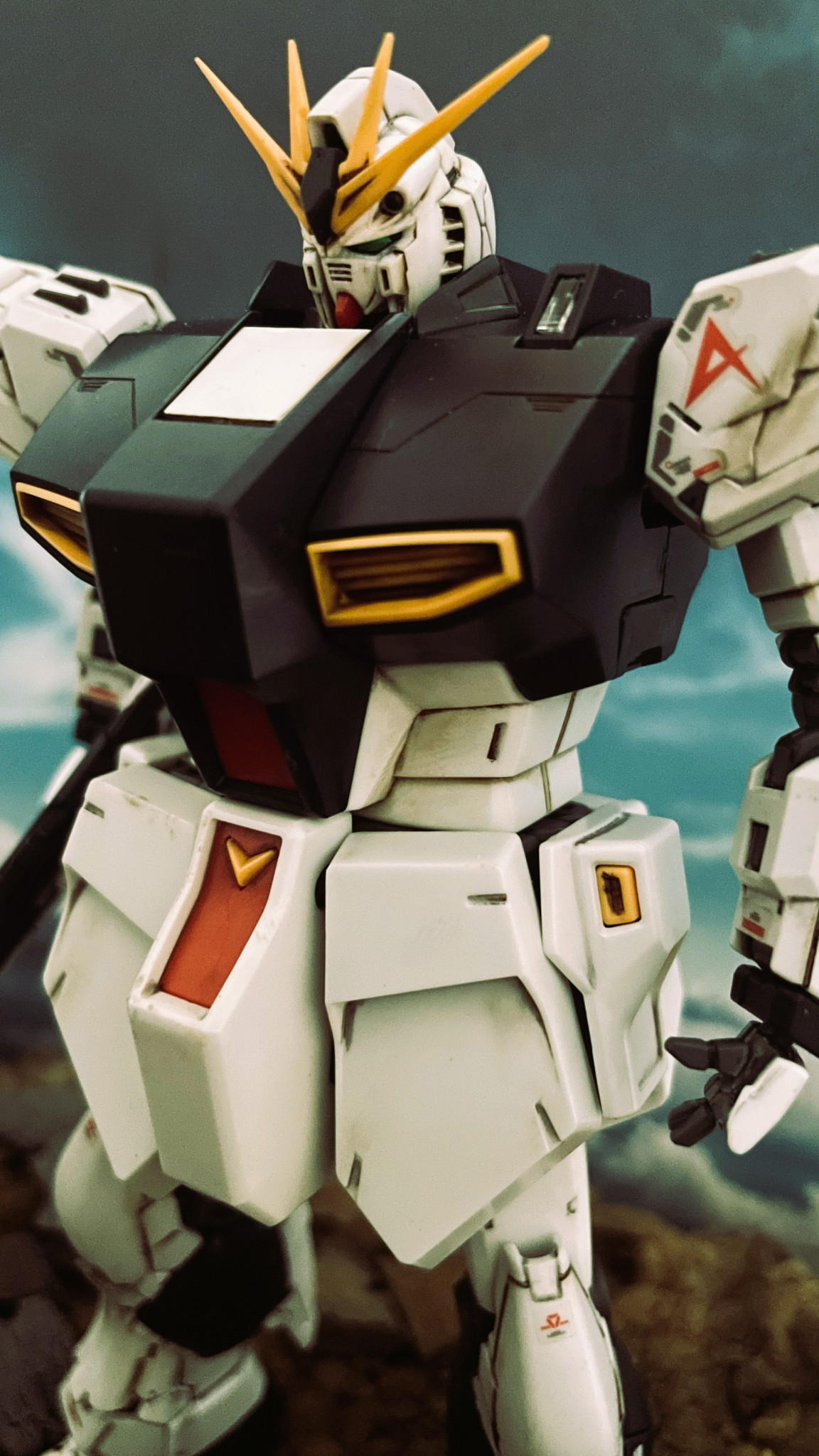フェースのアップです。νガンダムは歴代ガンダムの中でもハンサムさが際立つデザインかと。