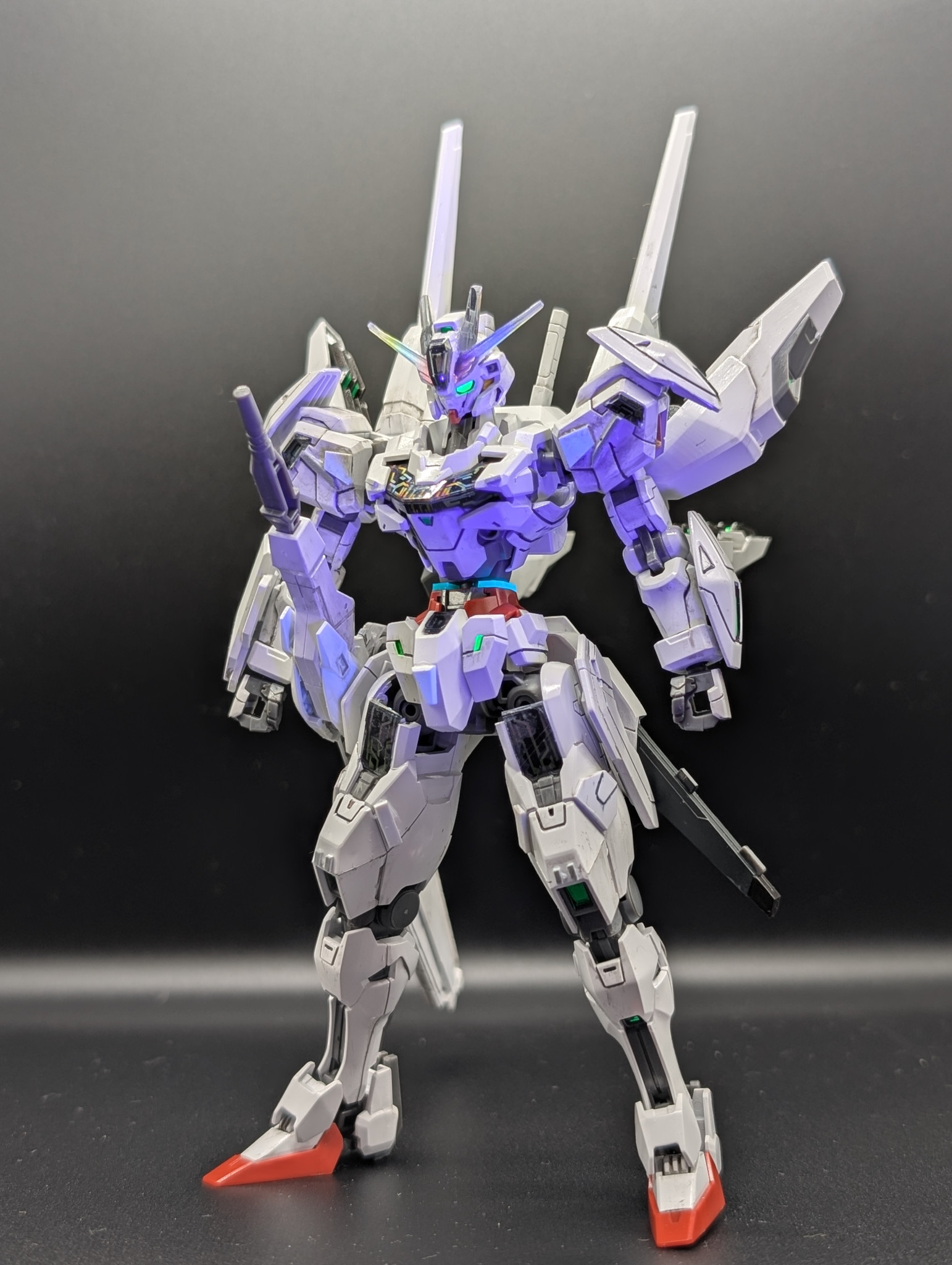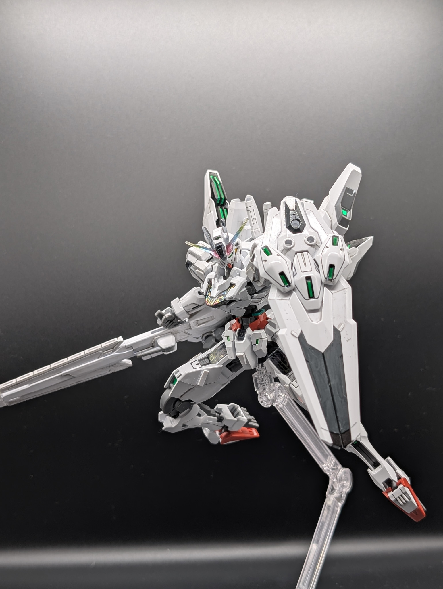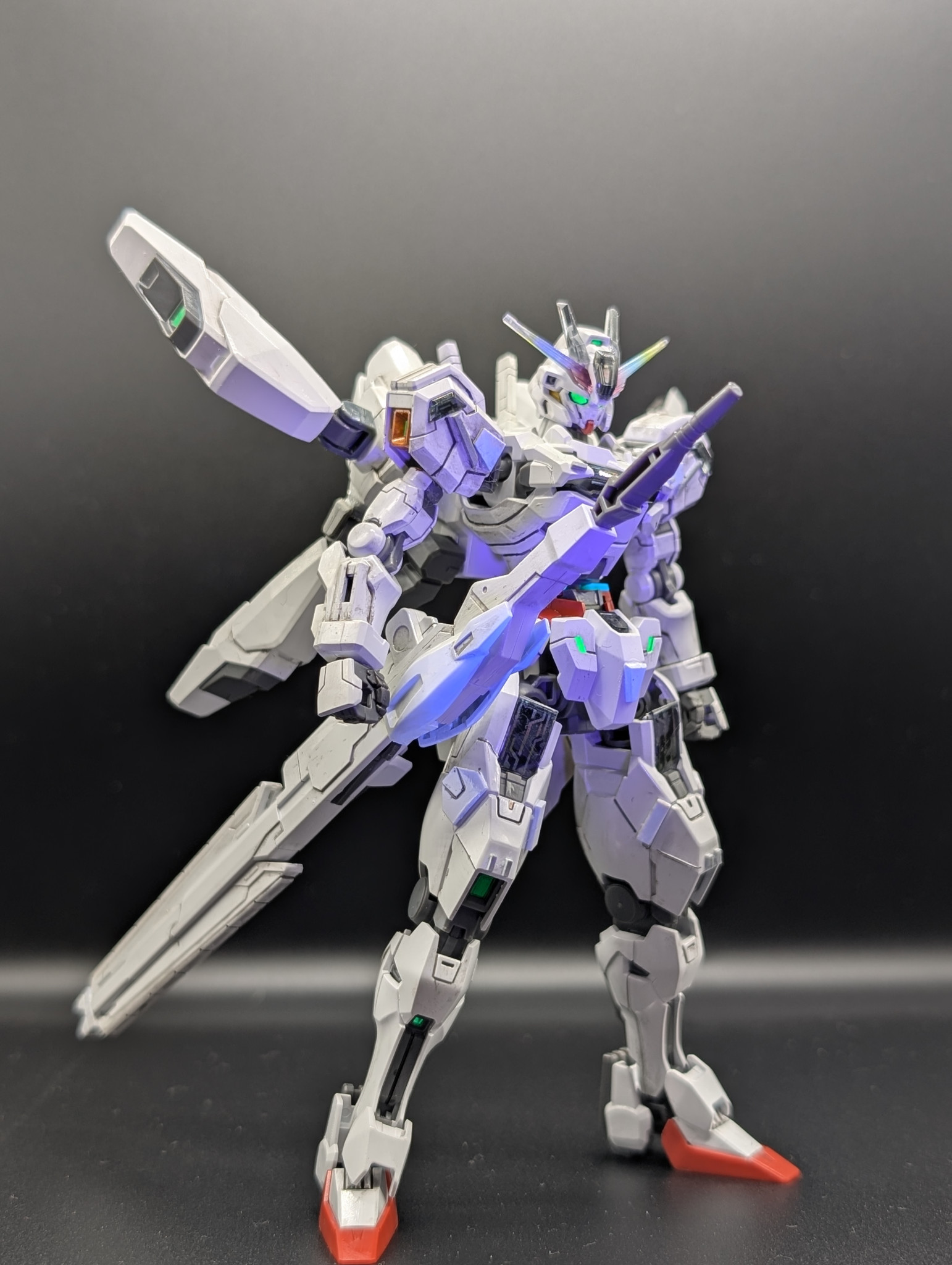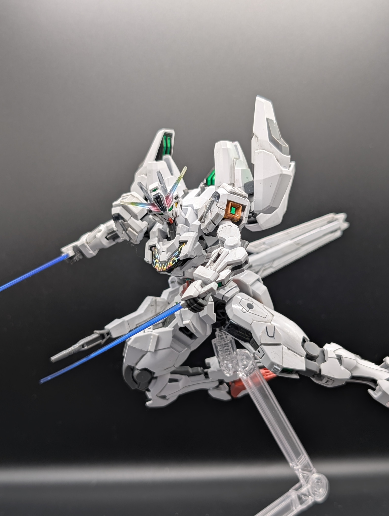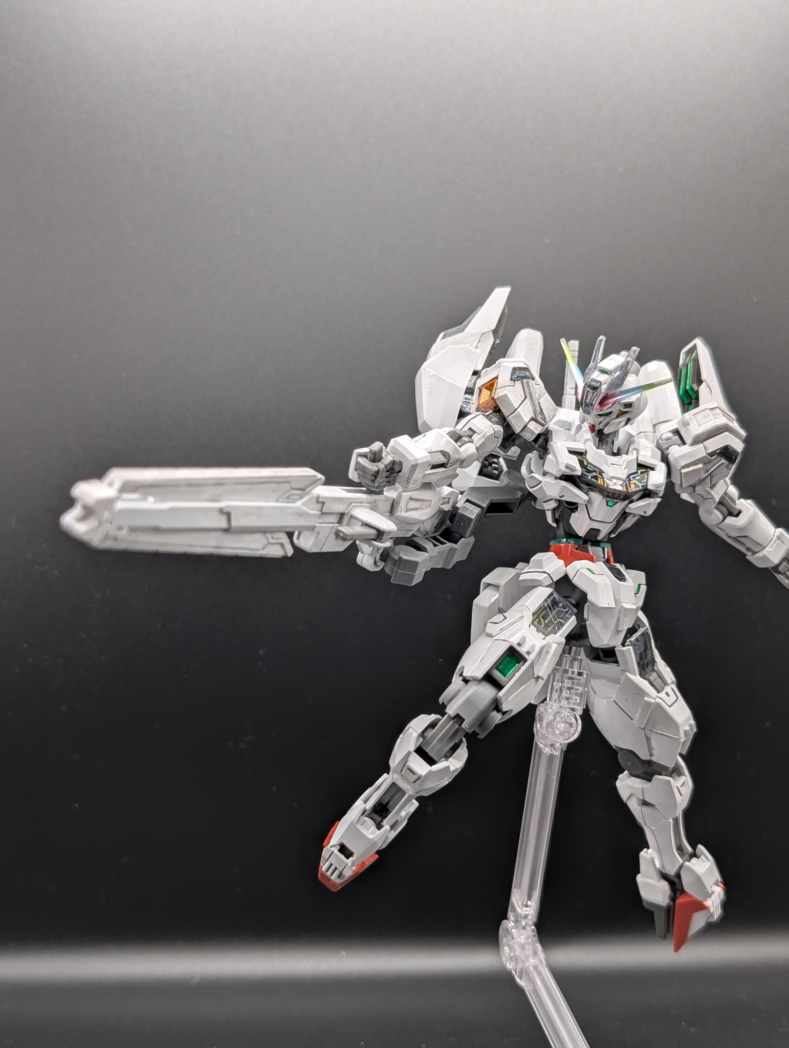 HGガンダムキャリバーンをスタイル変更やディテール追加、筆塗り全塗装の光沢クリアー仕上げで作成しました。