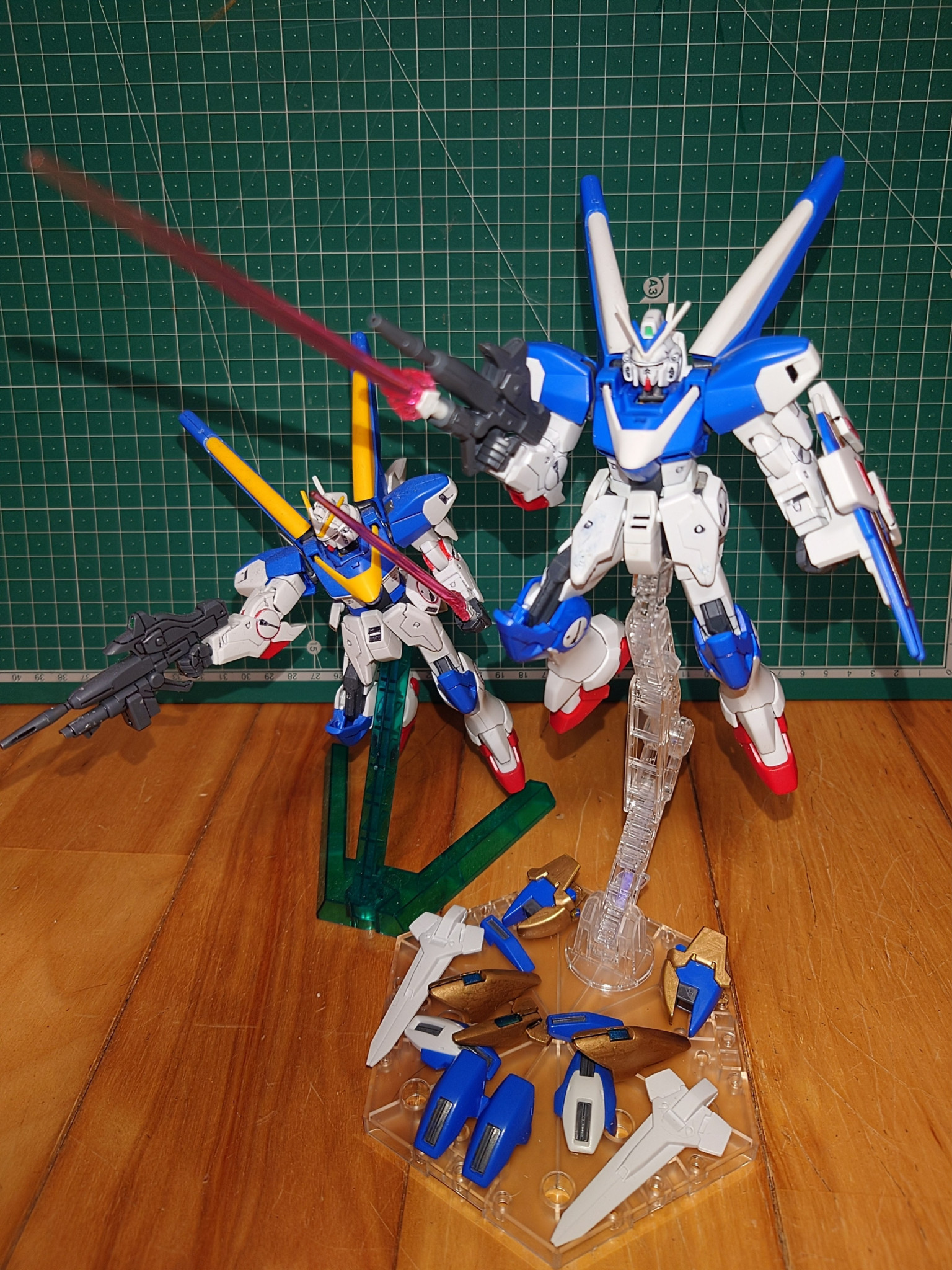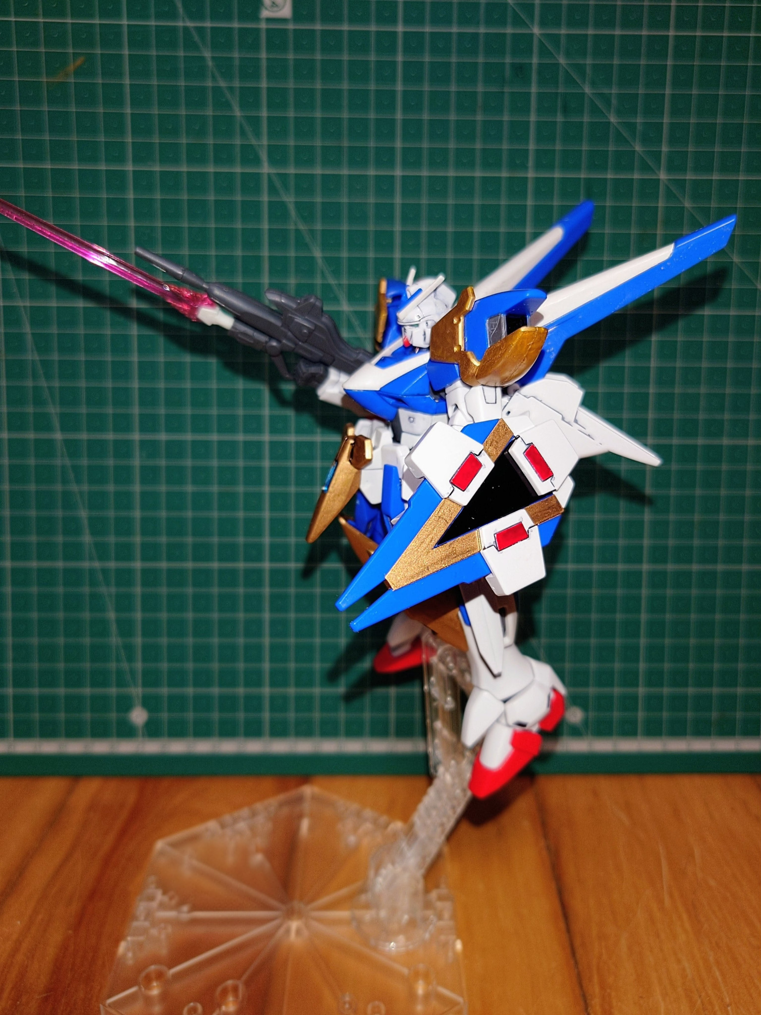 作る前は色の変更をコアファイター部分のみでしたが、ウエストを白くしてみたくなり、どうせならばと、ふくらはぎも青くしてみました
