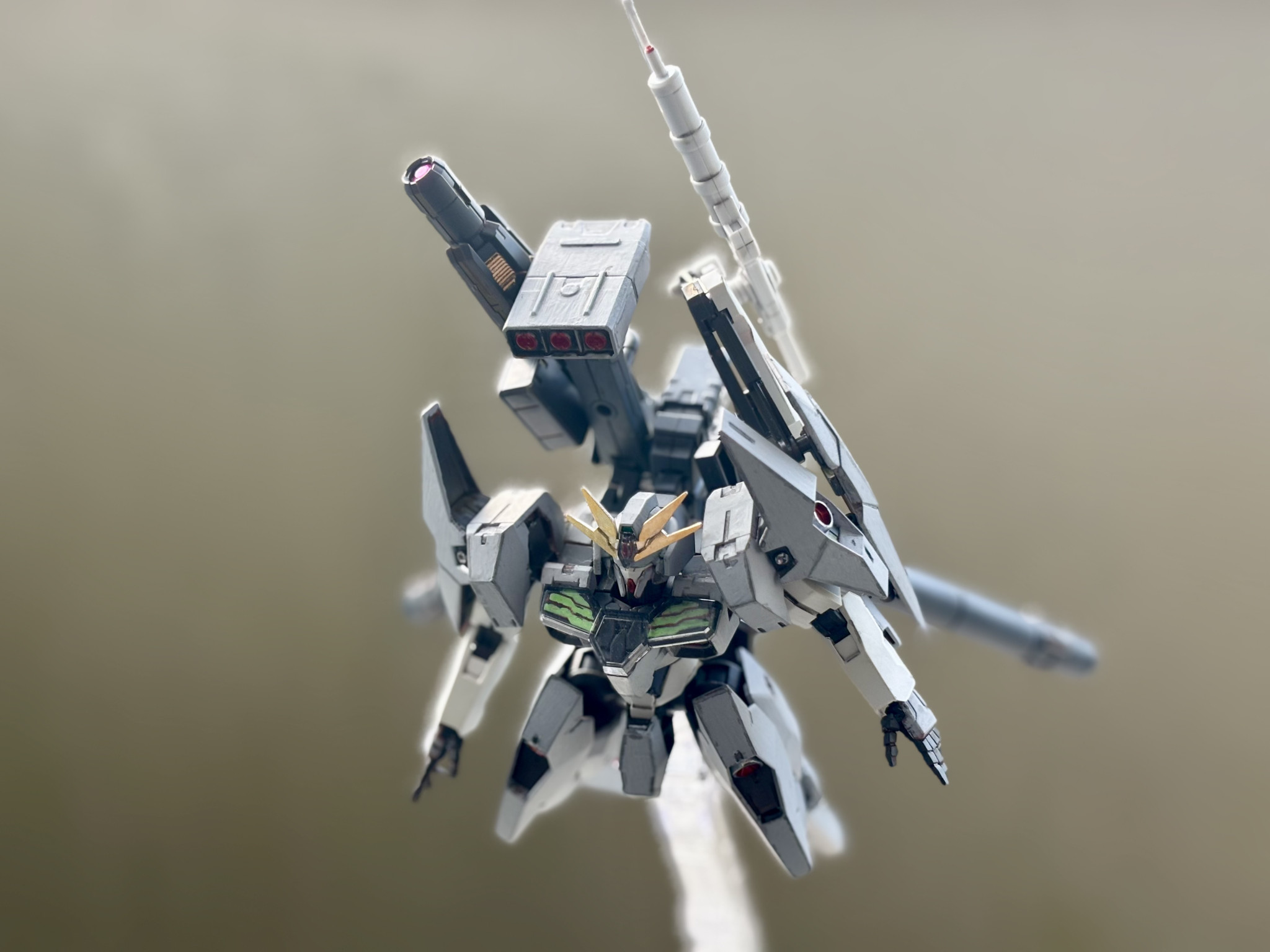 ルブリスソーンをガンダムハルートっぽくしたくてプチ改造しました。30MMのブースターを足につけたかったのですが、手に入らなくて足の部分はルブリスソーンの物を変更しました。ブースターはコトブキヤのブースターとガンプラバトルアームアームズのパーツを装着、他のパーツは前回作ったサバーニャの余ったパーツを取り付けしました。
