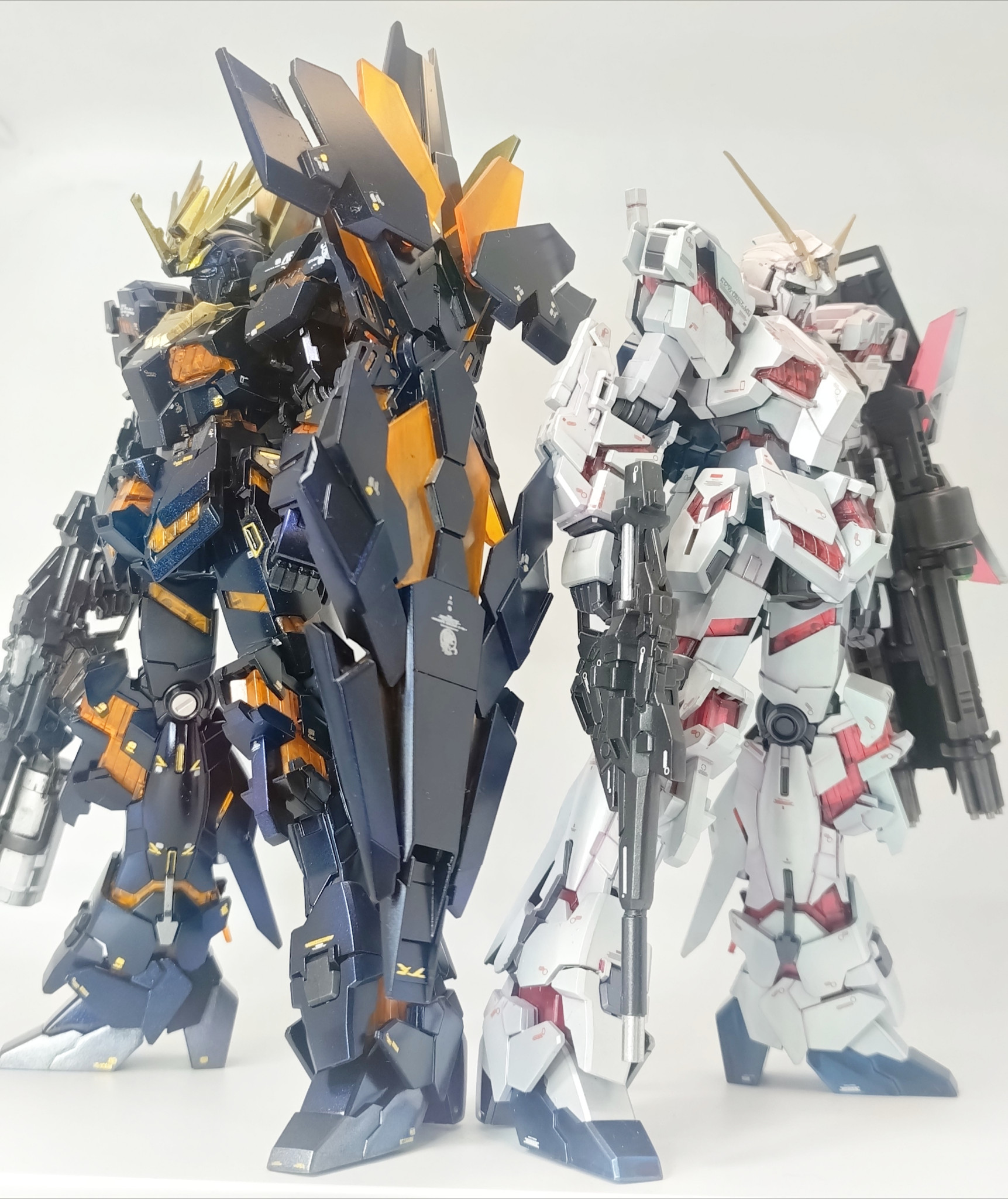 HGUCバンシィ・ノルンが安く購入できたので、以前つくったユニコーンガンダムと並べるためにつくりました。