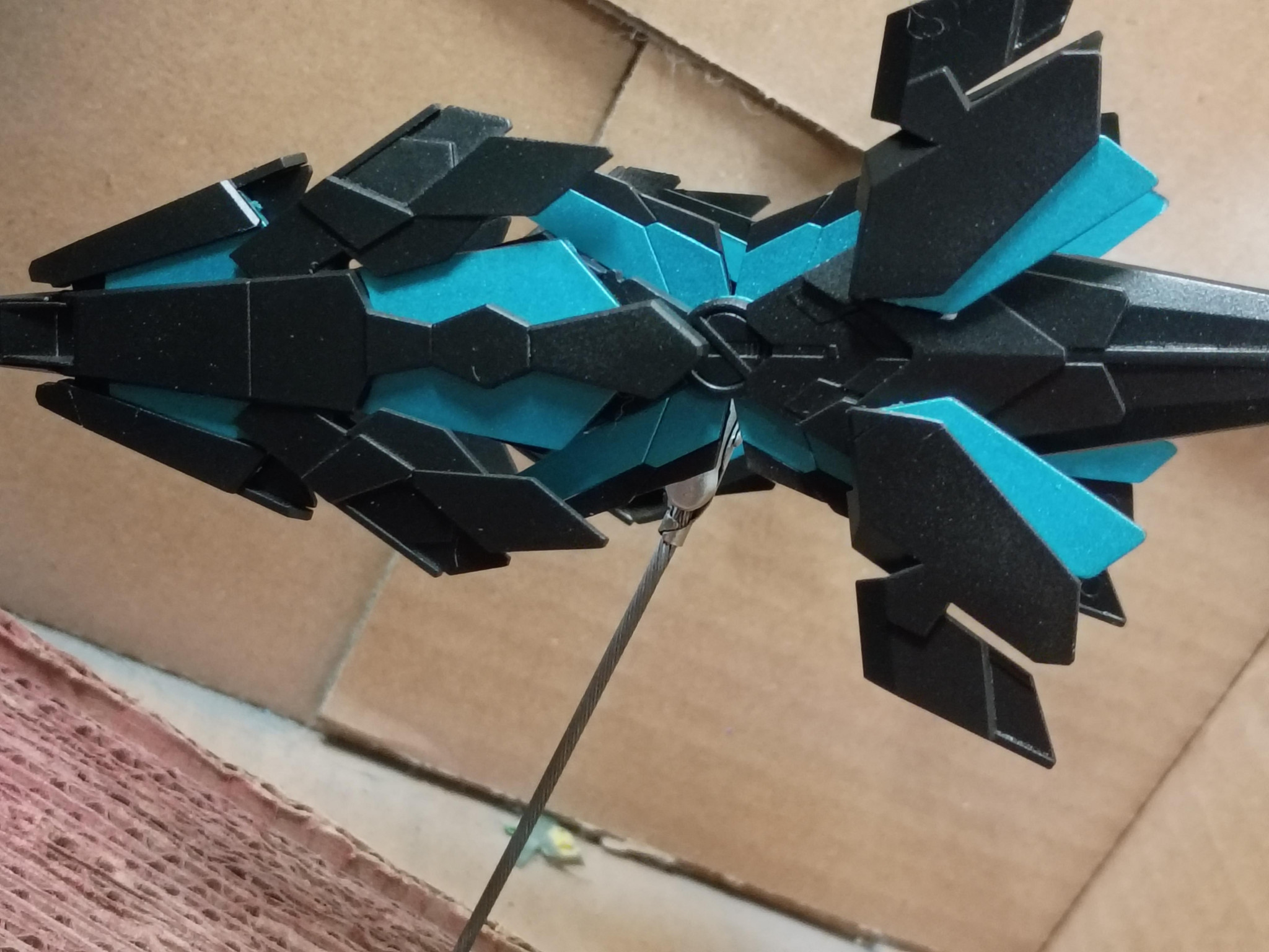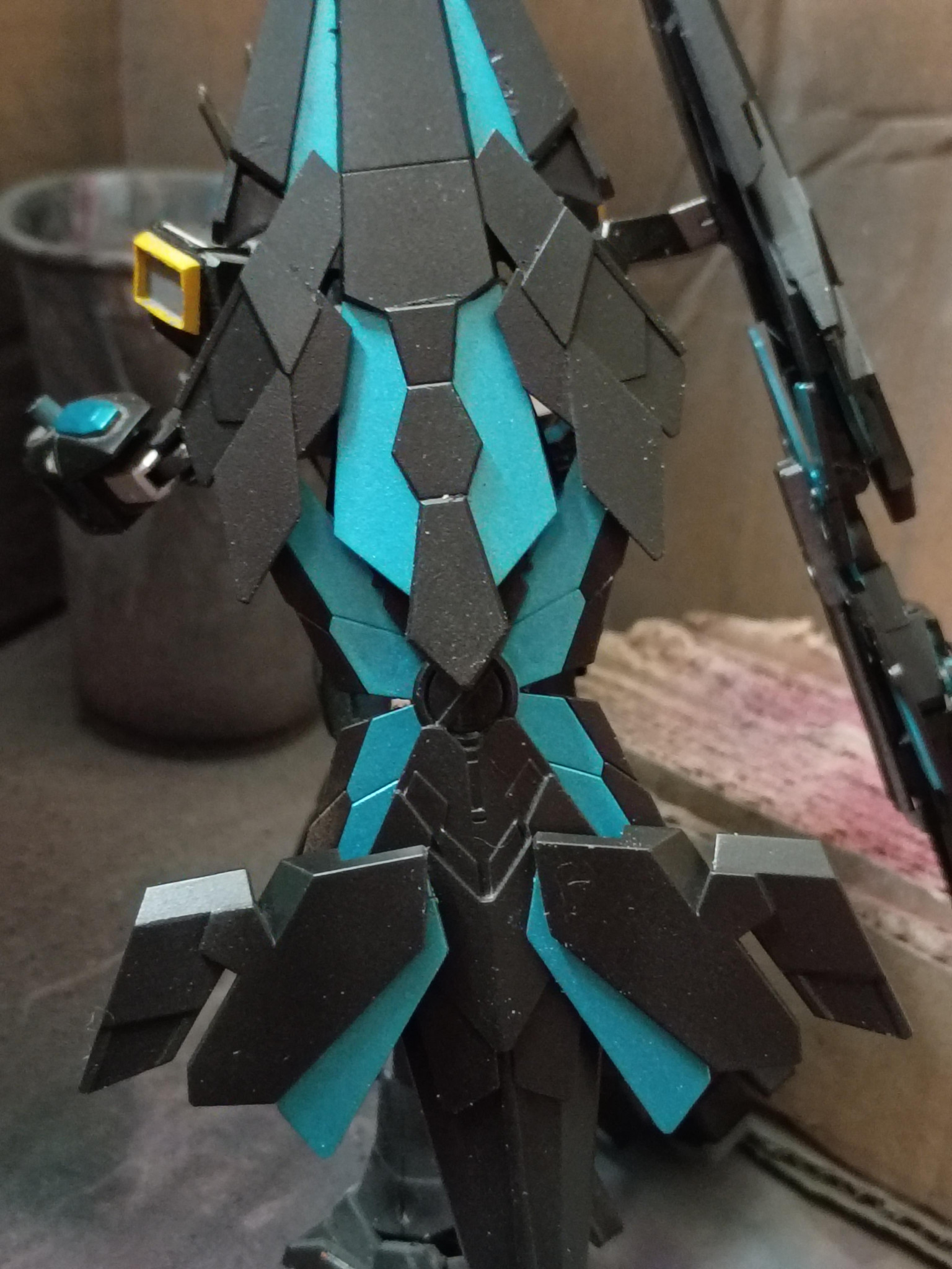 塗装レシピは、サイコフレームにMr.ホビーのグロスブラックとメタリックブルーグリーンを使用しました。