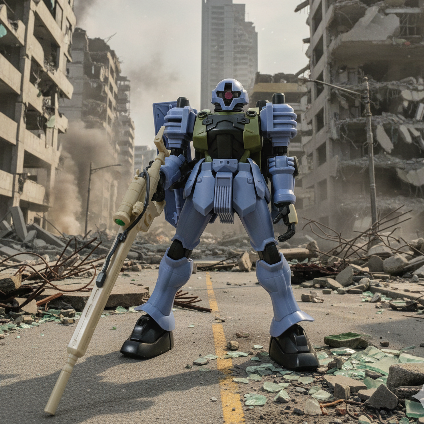 頭:ズダの首を短縮 胴体:ザクスナイパー(ヨンム・カークスさんから拝借)にヅダの肩関節を組み込み、首元のポリキャップを奥に押し込む 肩:前後左右を入れ替え 腕:二の腕のリングパーツを取り外す 腰:サイドアーマーの接続軸を引き下げて前後左右を入れ替え 足:スリッパをSDザク(エコプラ)より移植、ふくらはぎのバーニアの取り外し、足首の接続軸をザク1(こちらもヨンム・カークスさんから拝借)に変更とそれに伴うスペースの確保