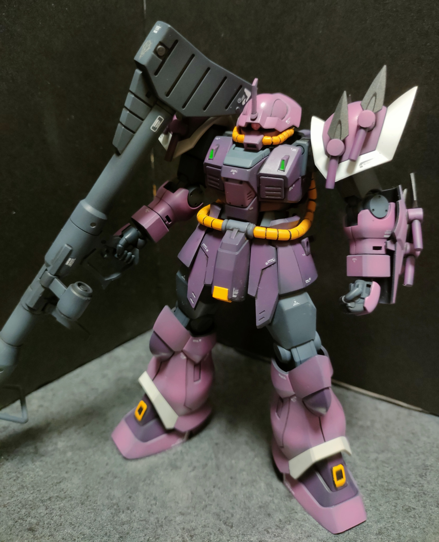 改修点はバズーカスコープとモノアイのHアイズ化。合わせ目消し、腕と肩の合わせ目の段落ちモールド化。武器の先端のシャープ化など。