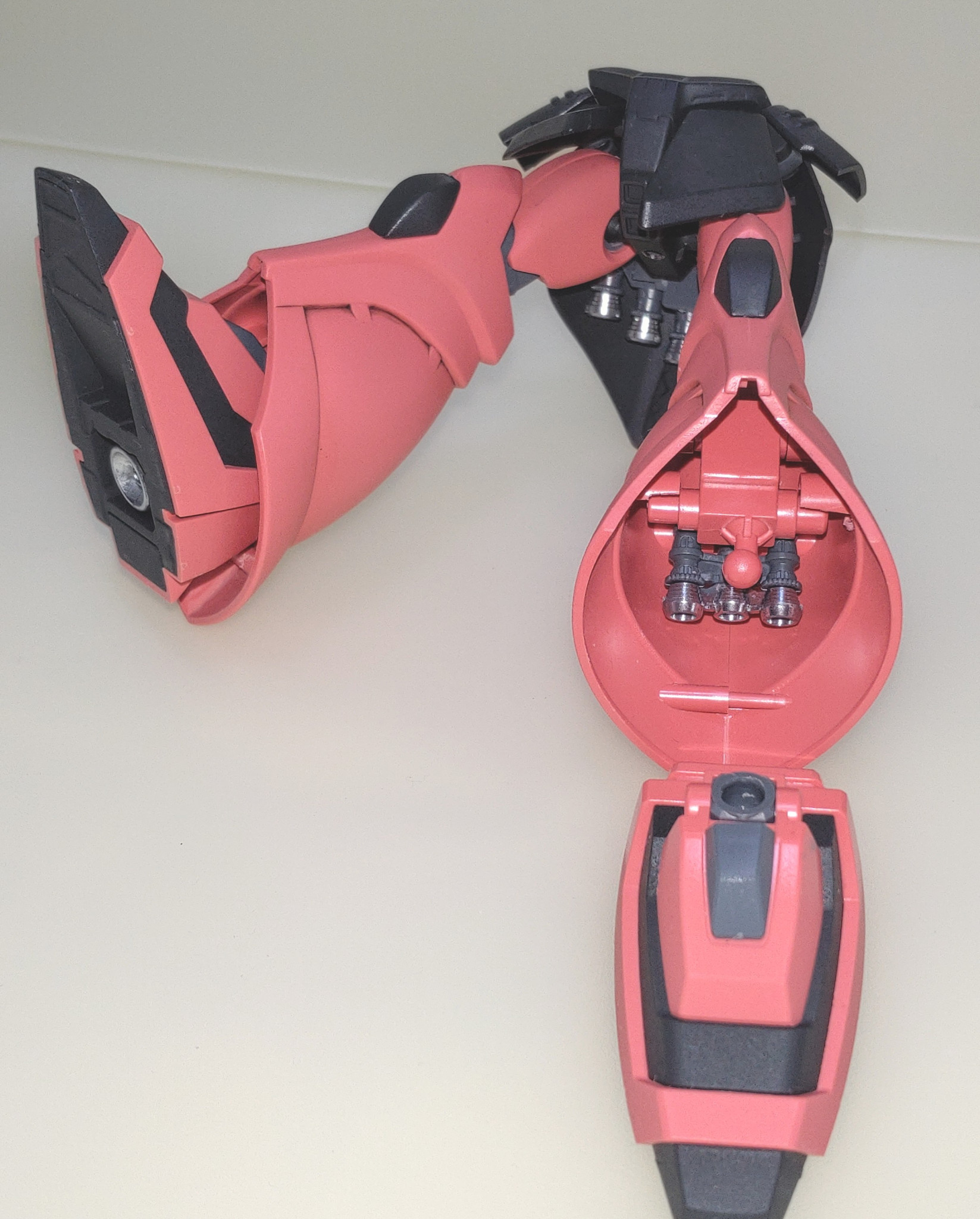 本体は合わせ目消し・部分塗装のみの成型色フィニッシュですが、リゲルグのパーツ流用に伴い一部可動部分のアップデートと武装類の追加を行いました。