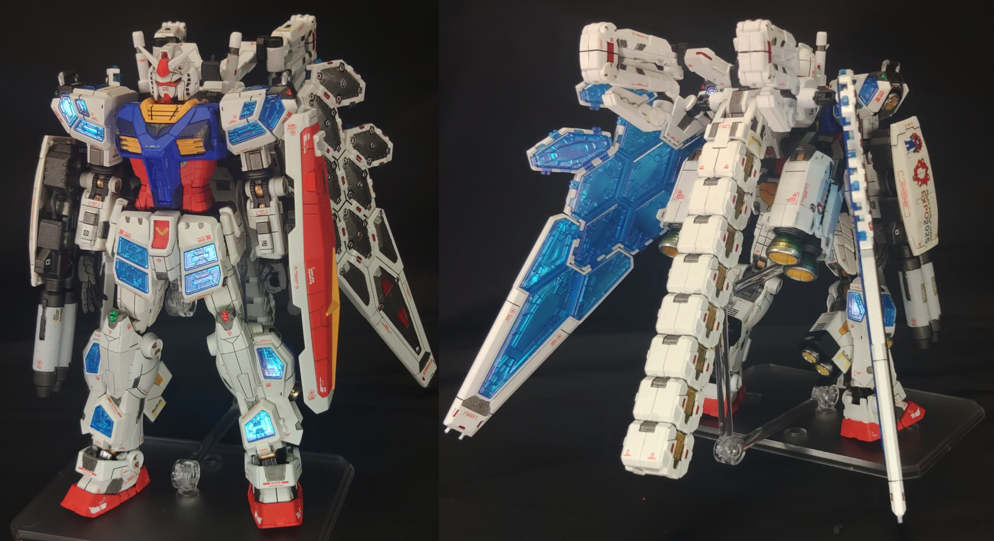 少し前に作ったFAガンダム高機動型と。 FAガンダム高機動型のアーマーパーツはEGのグラスフェザーユニットものなのですが、HGとEGで比べると大きさとか結構違いが出ます。