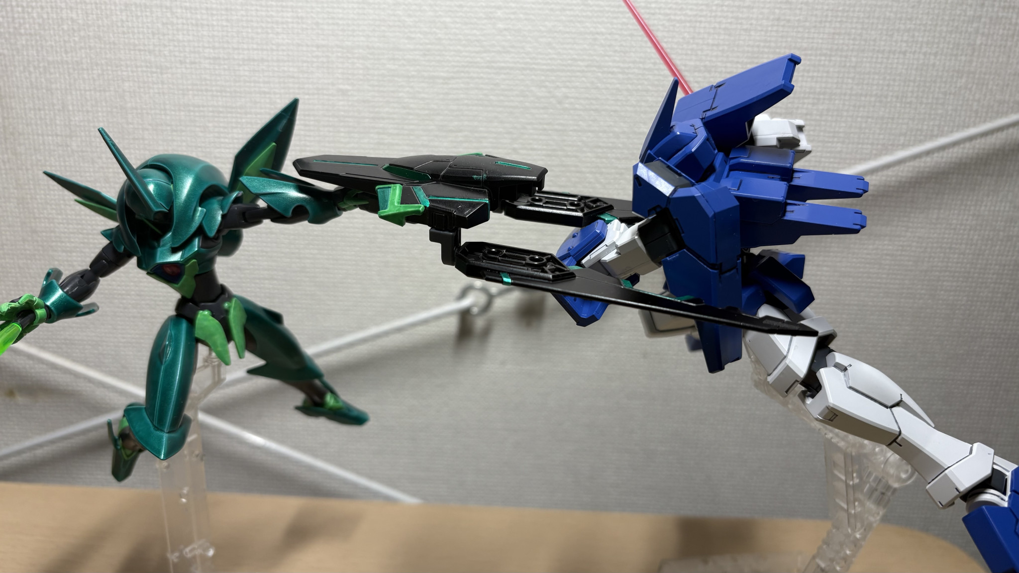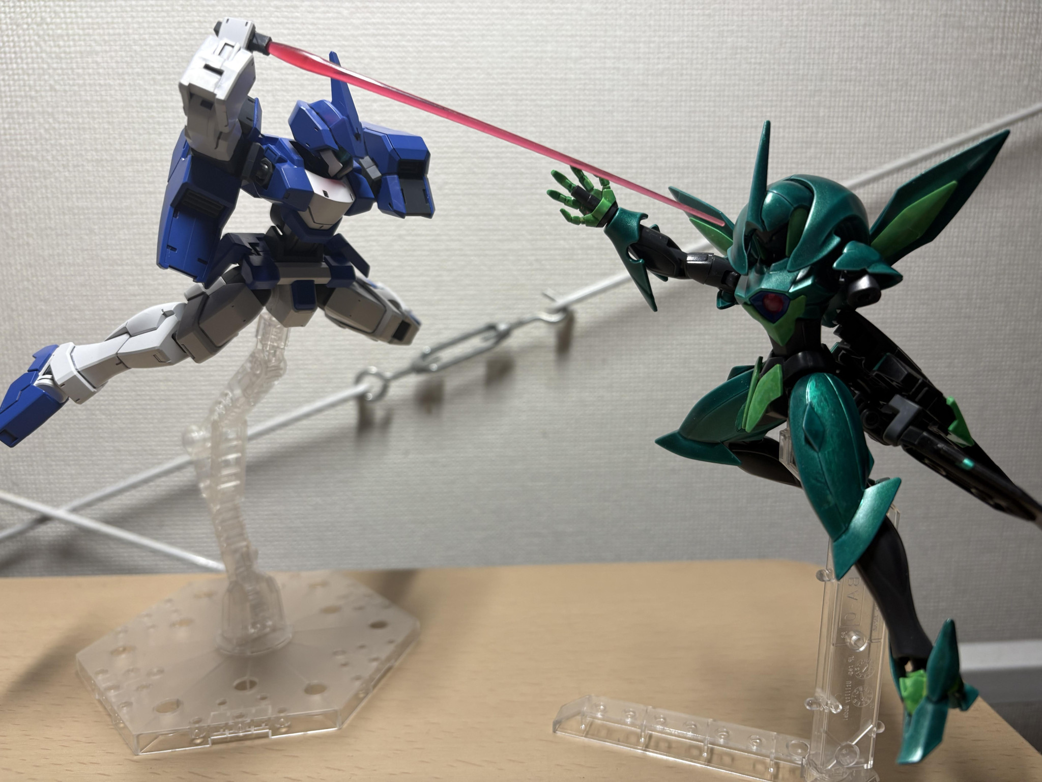 突然キットの話になりますが、足首可動は横は凄いですが、縦は皆無です。なのでポージング色々やってみると、一見どんなポーズでも立ちそうなぐらい動くように見えても、縦の可動が終わってるので、なかなか立たない感じです。