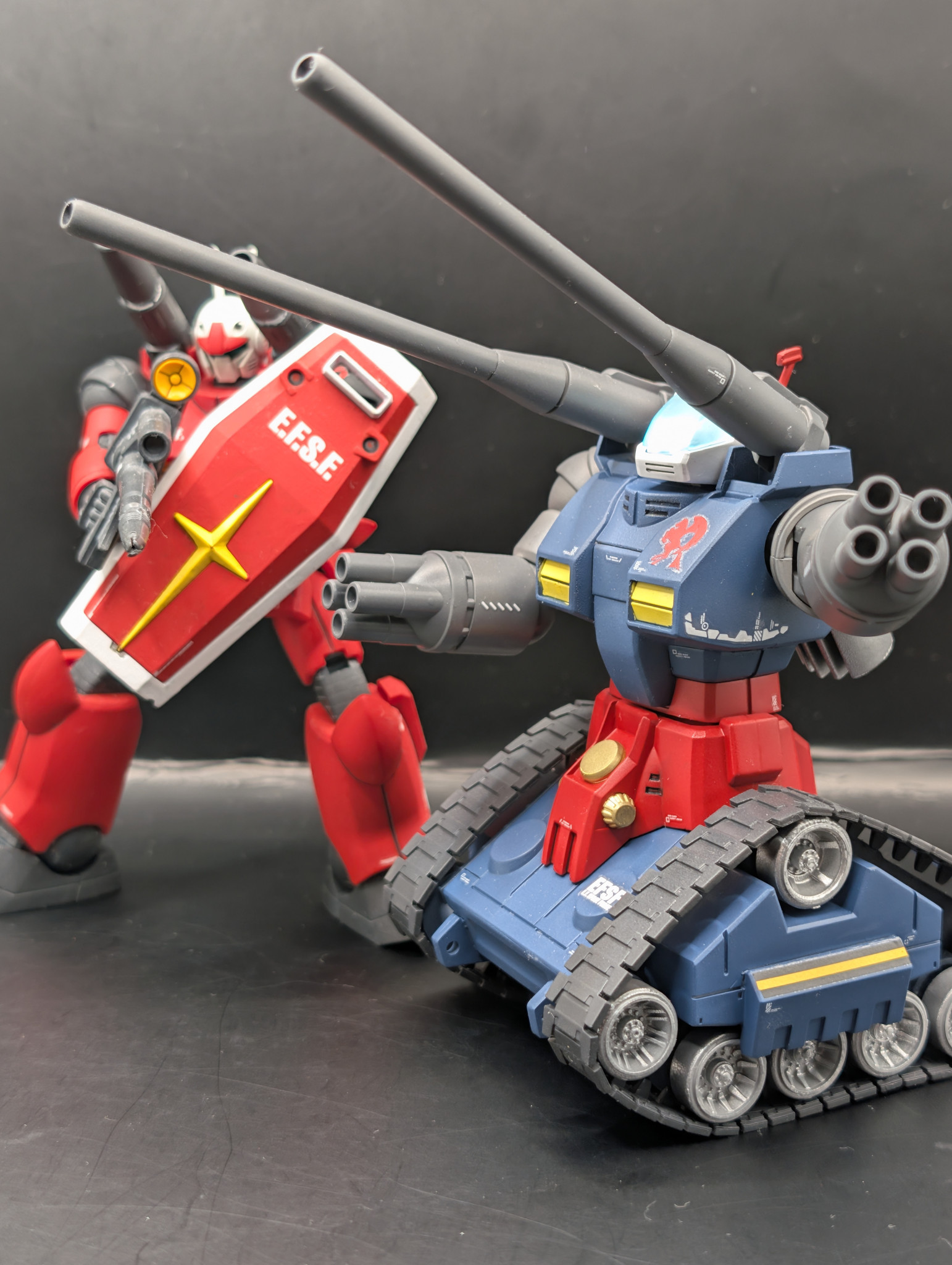 ガンタンクカッコよく仕上がりましたね。デカールもセンスいいですね。ガンキャノンとのツーショットgood👍です。