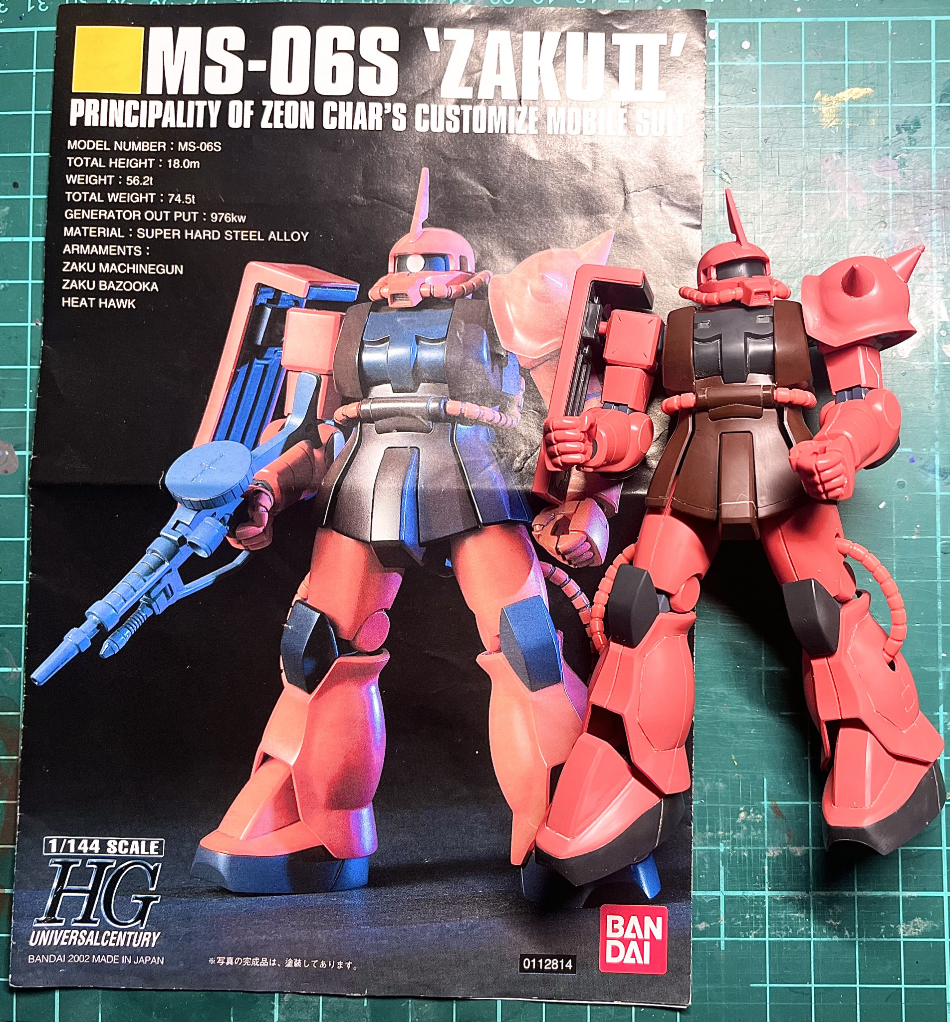 旧タイプのHGUCシャア専用ザクⅡを作りました。リバイブ版やオリジン版の作例は多いのに、なぜか旧HGのザクはあまり無いですね。シンプルな機体なので、なるべくシンプルに好きなように作りました。色はエレガントな感じに。