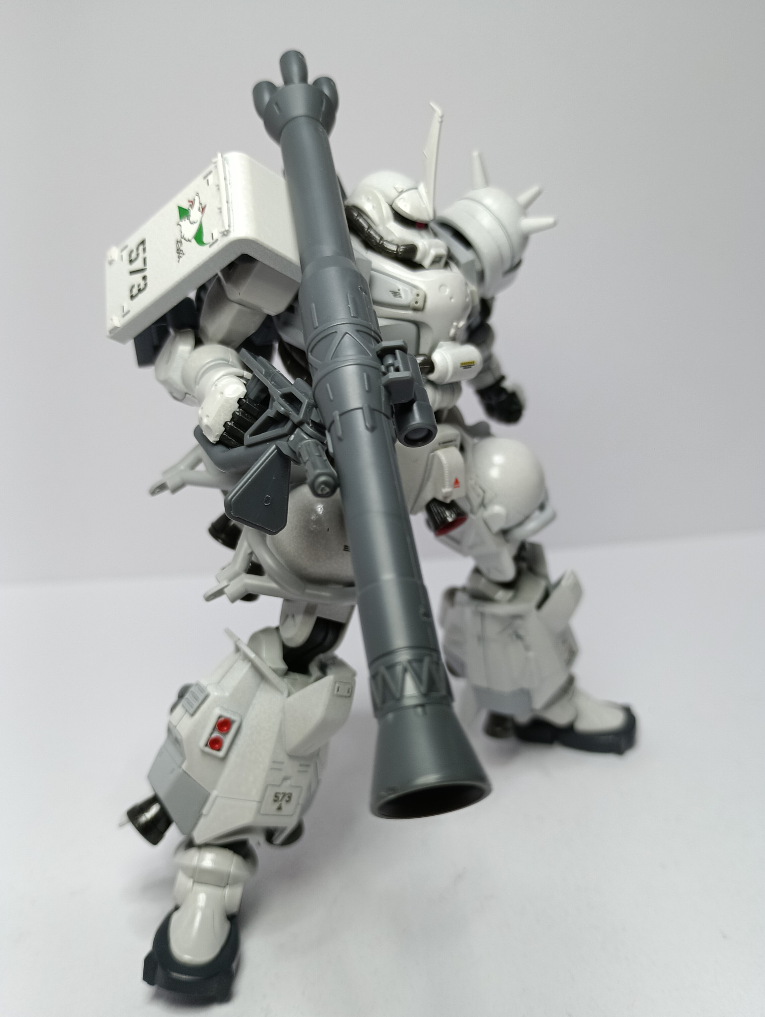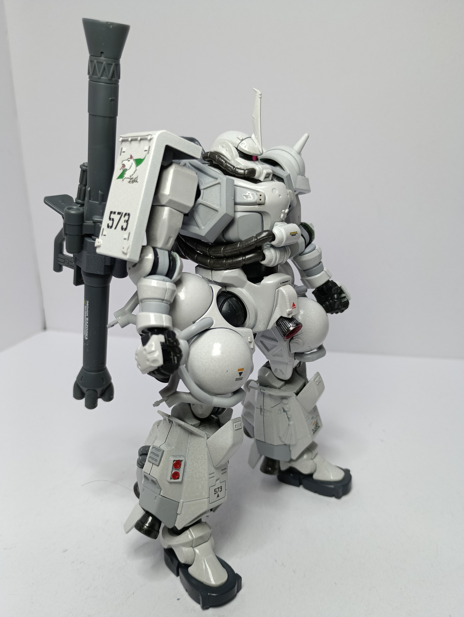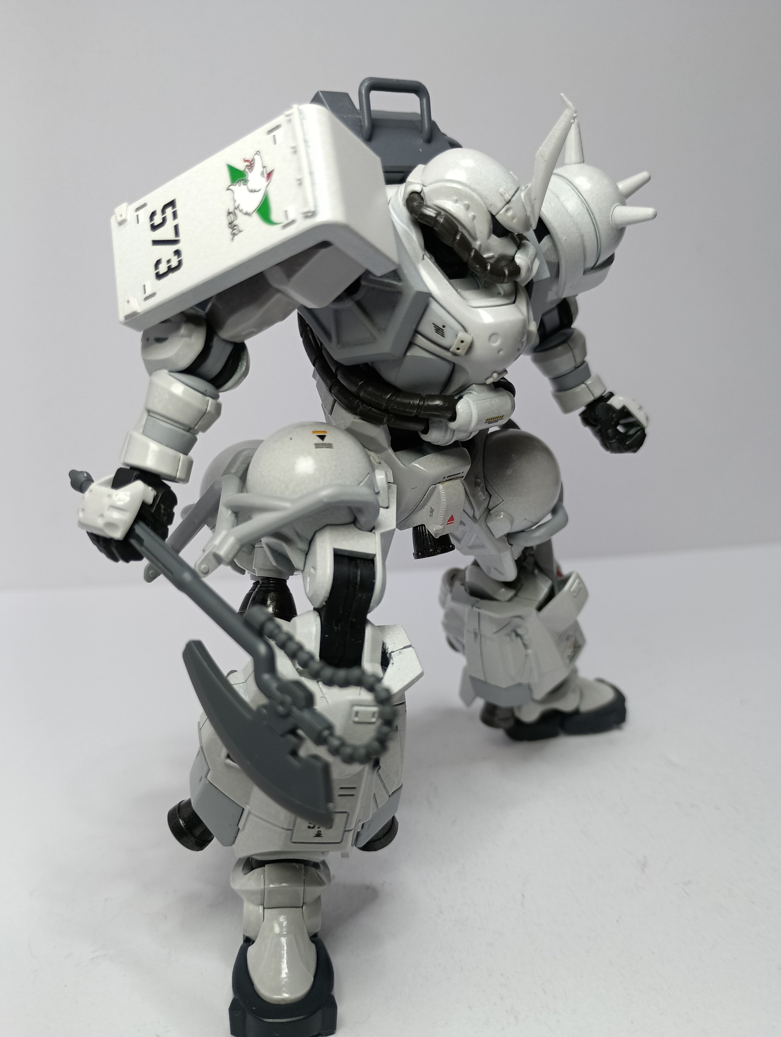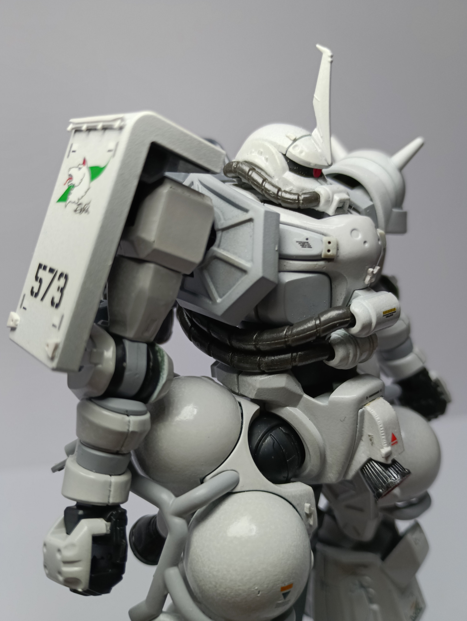 完成おめでとう御座います(zaku-kao2)最後の一枚特に好きです、装備も魅せて肩のマーキングや鎖骨あたりのパーツの特徴や脚部もしっかり魅せる。いいなぁ(zaku-kao5)