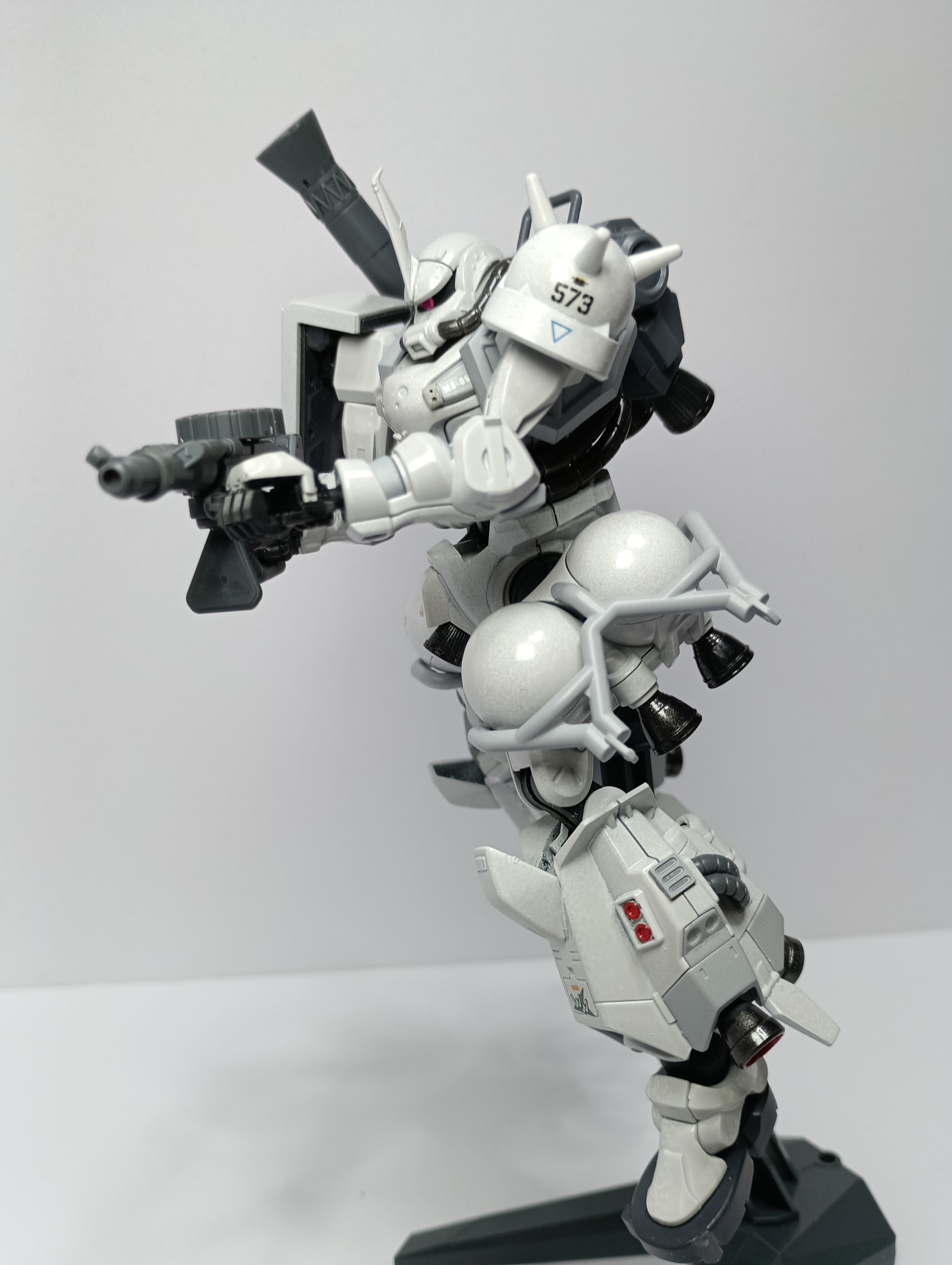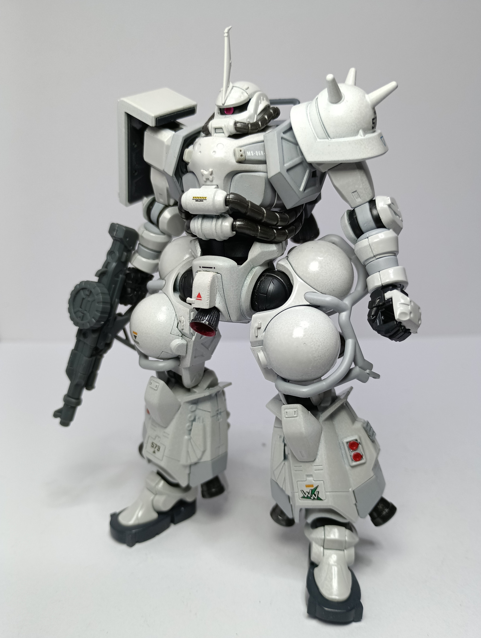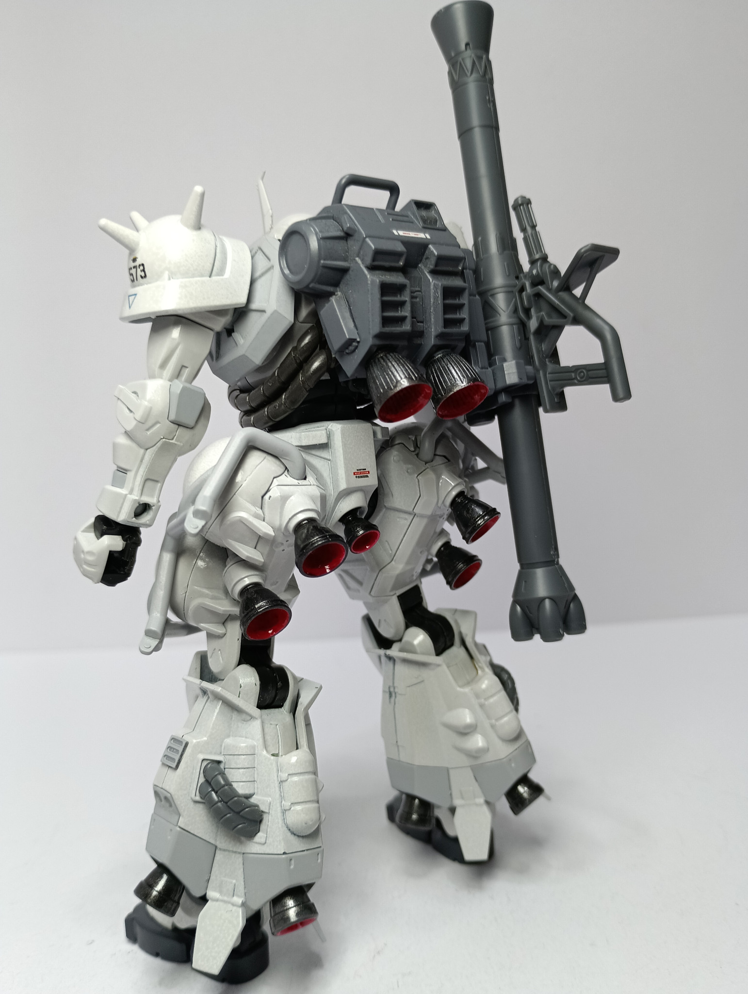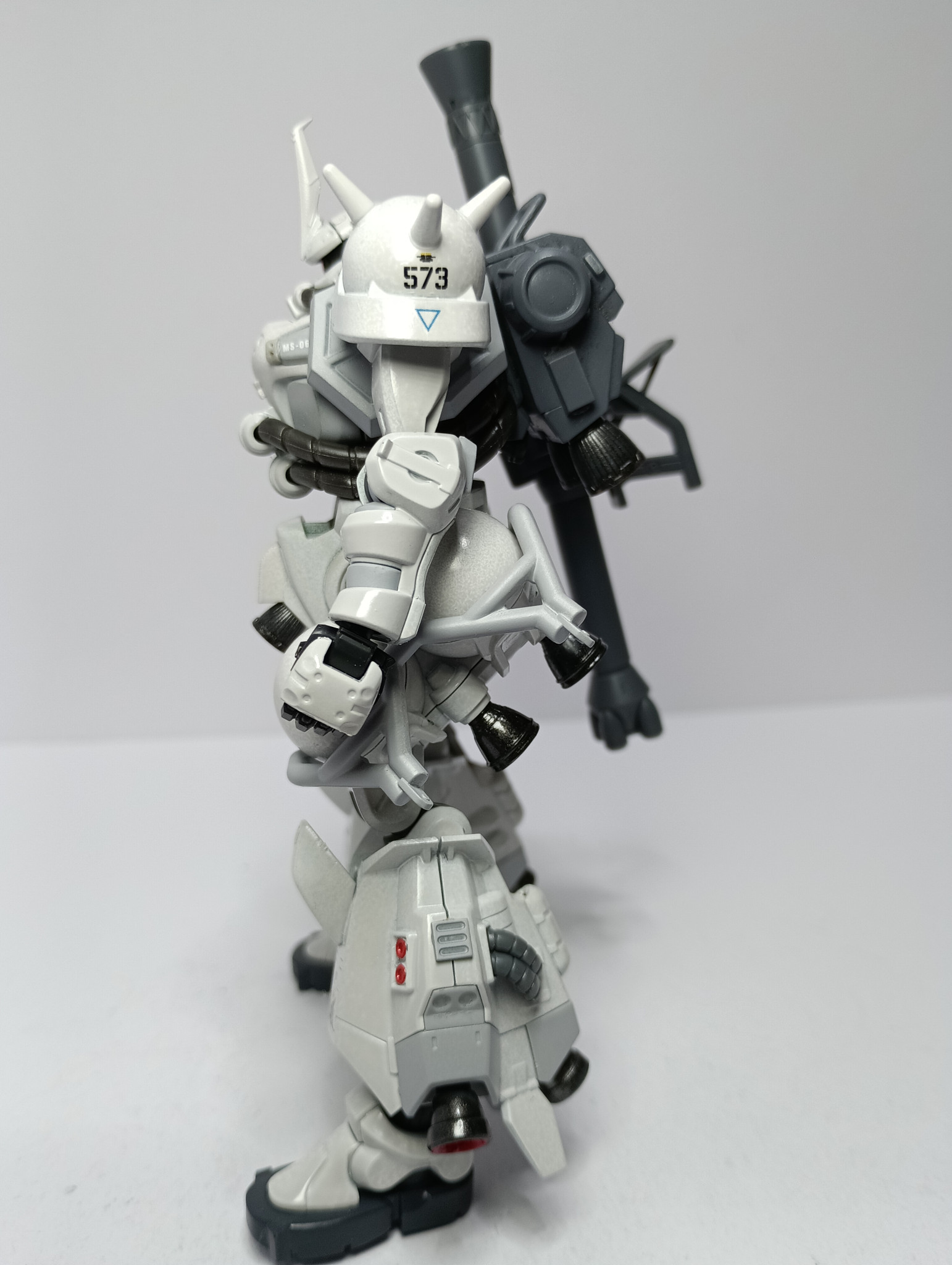 完成おめでとう御座います(zaku-kao2)最後の一枚特に好きです、装備も魅せて肩のマーキングや鎖骨あたりのパーツの特徴や脚部もしっかり魅せる。いいなぁ(zaku-kao5)