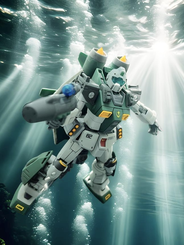 水中行動が主体になり、銃はあまり持てない(と思われる)ので、前腕部にガトリングガンを搭載して武装。
