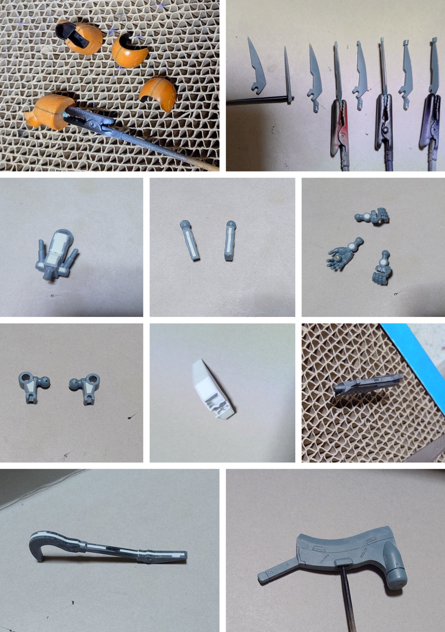 合わせ目消しは肩アーマー、クラブロディ前腕、腰リアアーマー裏側の3連スラスター、マシンガン、余剰パーツのハンマーチョッパーに実施。