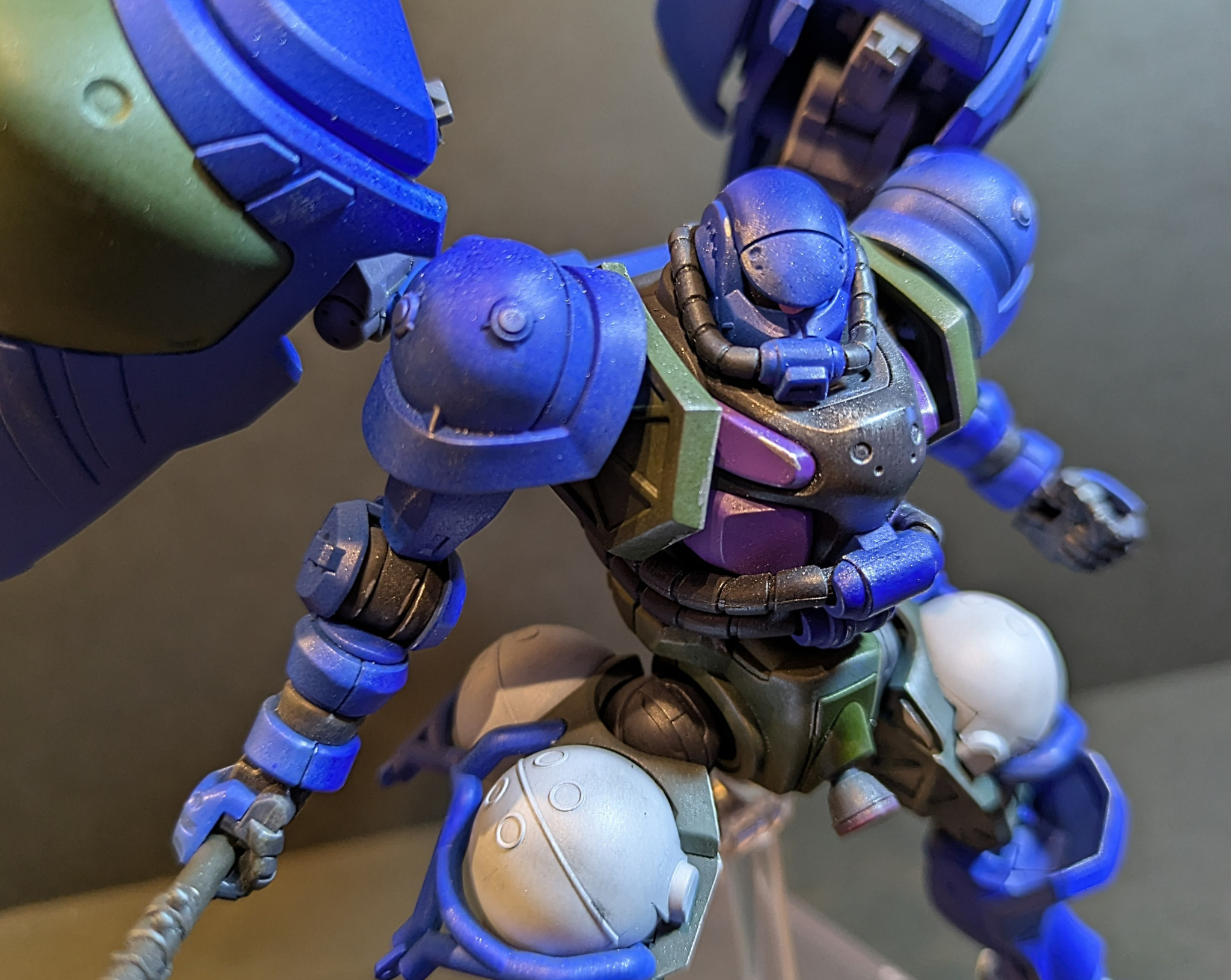 以前製作したザクに今回はウェザリングを施してみました。初めてですが満足しています。