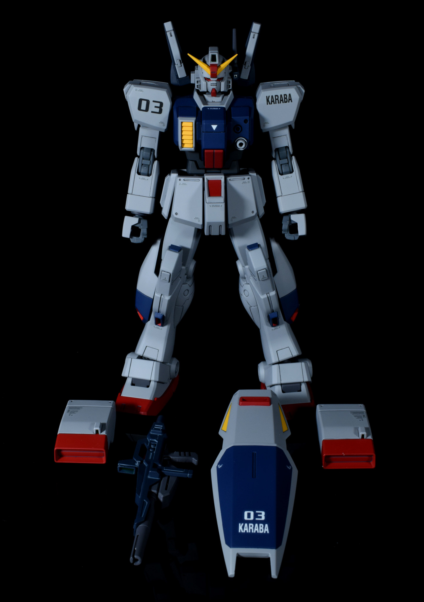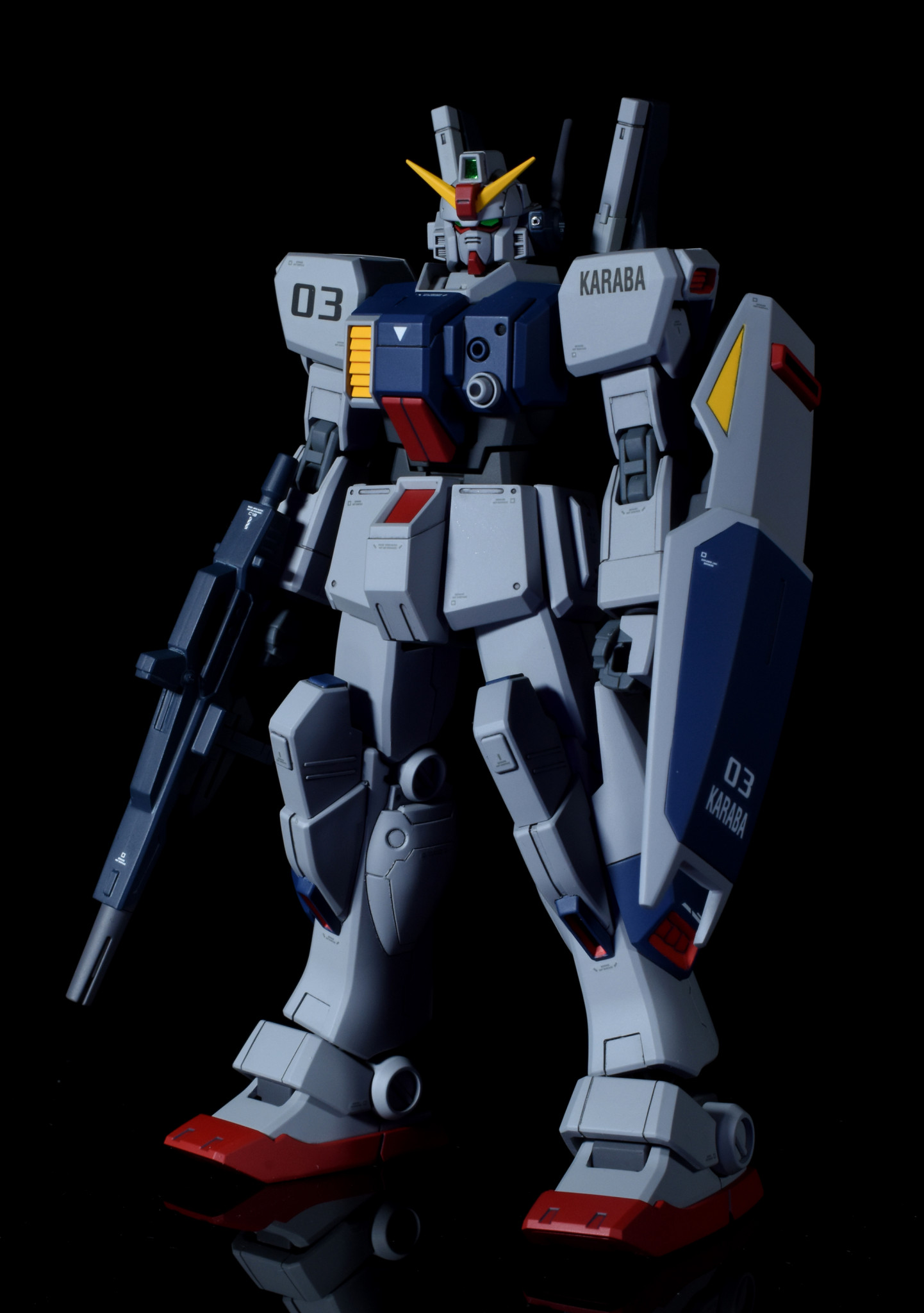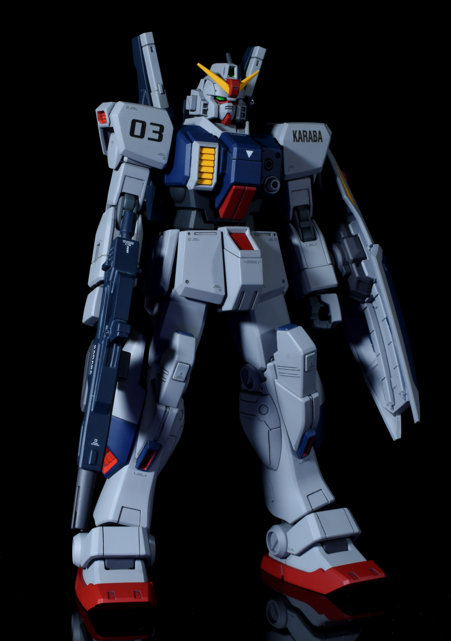 陸戦型ガンダムをベースにジムⅢとミキシングを行い、ガンダムマークⅡのライフルとシールドを持たせています。