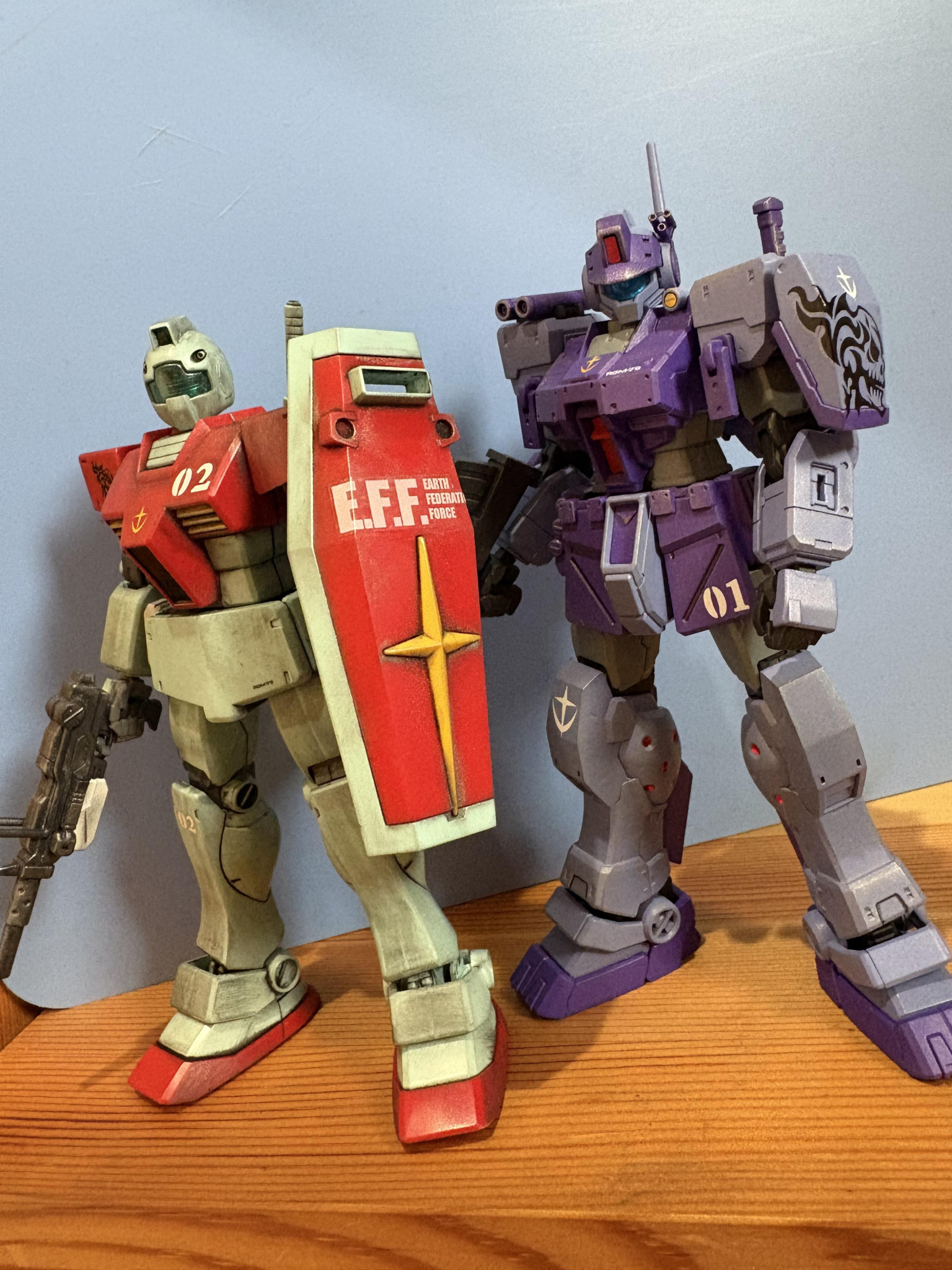 隊長機のジムスパルタンさんと😃なので以前に僚機のつもりで作ったジム君たちは設定変更です☺️