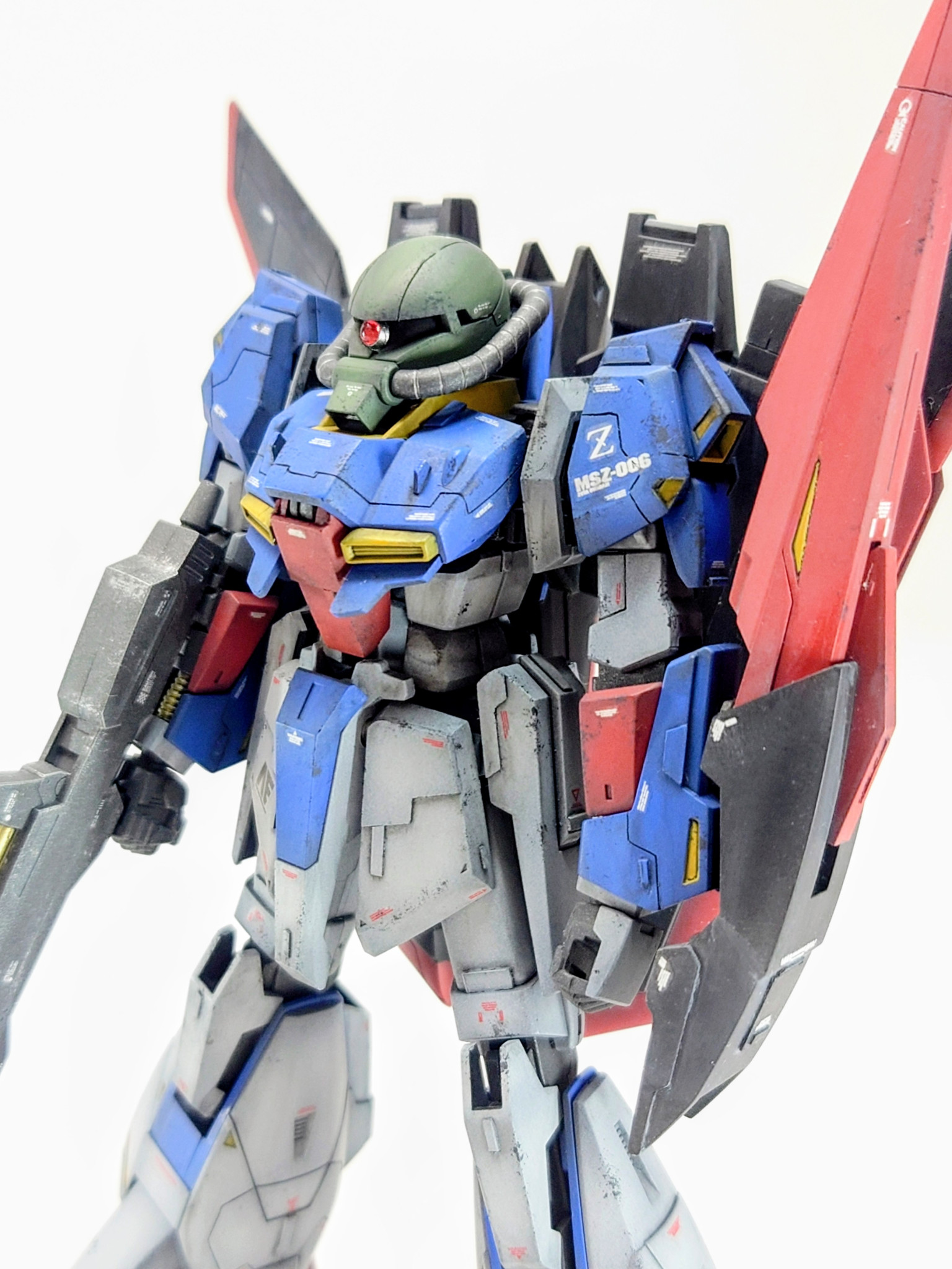 頑張って色々やったら少しはカッコよく見えるのか?と普段やらないグラデーション塗装やウェザリングしてみたけどやっぱZザクはZザクでしたー(笑)