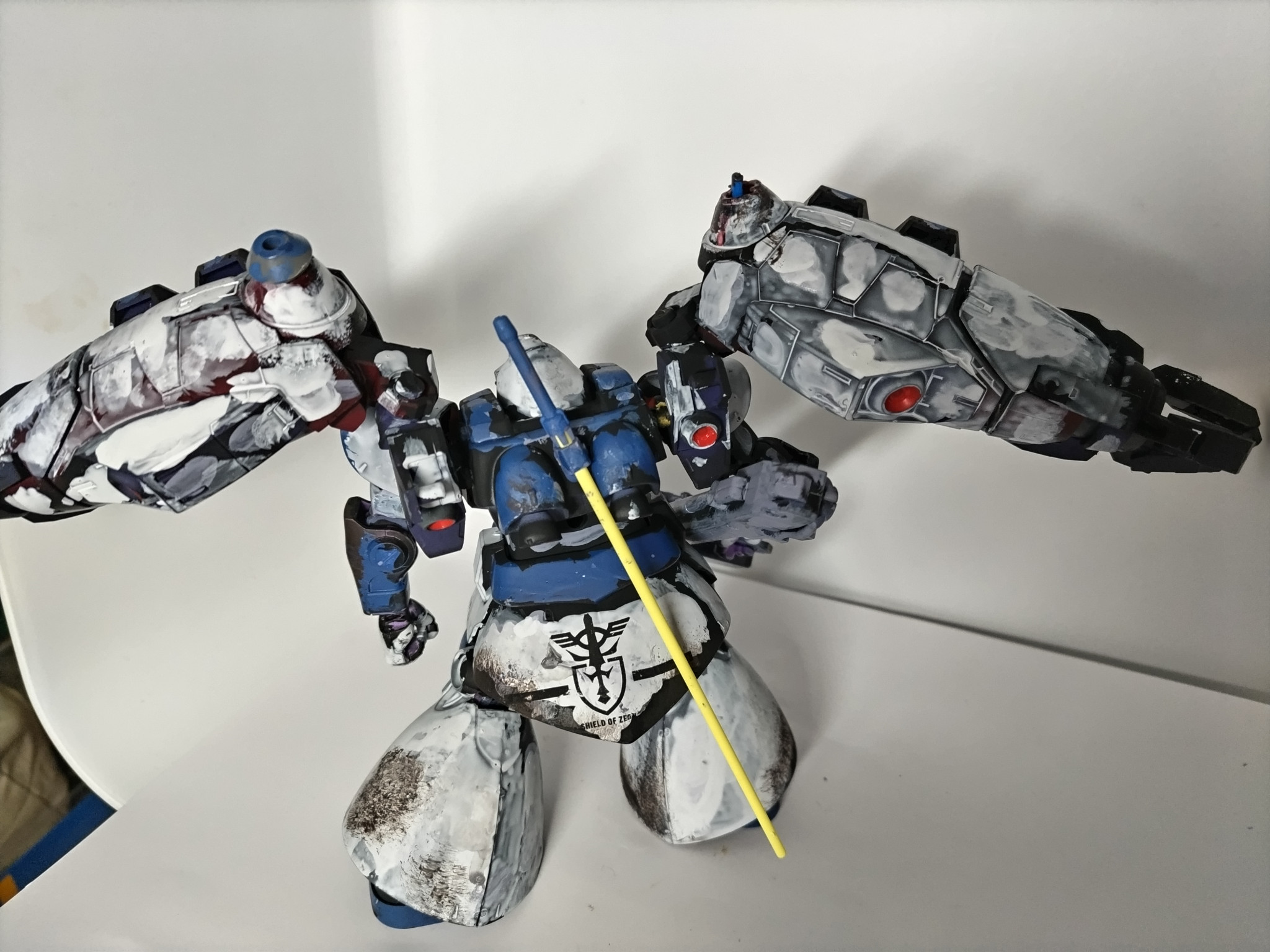 ジオン残党の、酷使されつつもスポンサーがついてメンテされ、追加武装されているリックドムです。ああ、なにハイムがバックについているのだろう!?