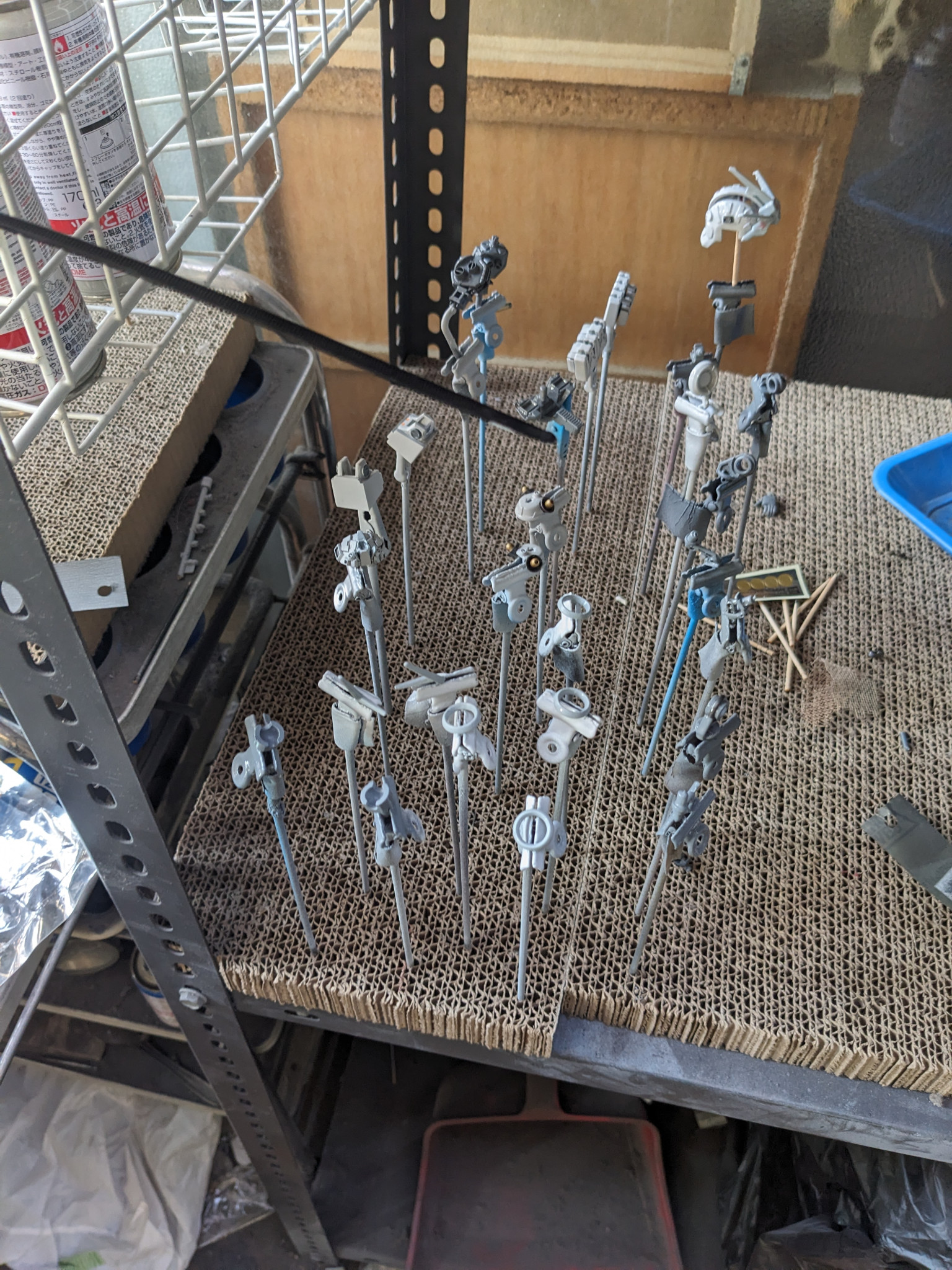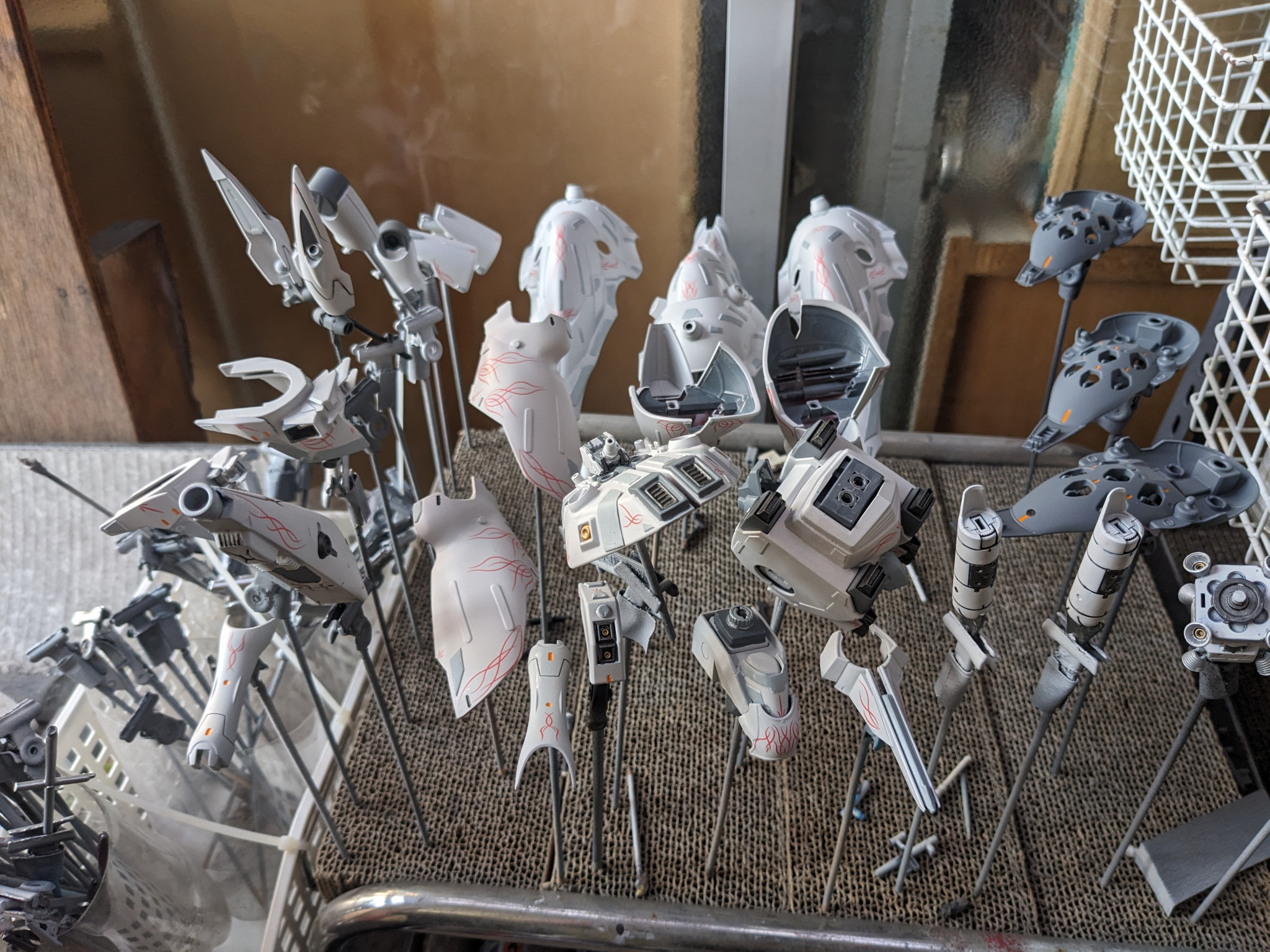 これ全部パーツなんですよ、一部組み立てて塗装しているのに、数だけで言えばRG何かもしれない。