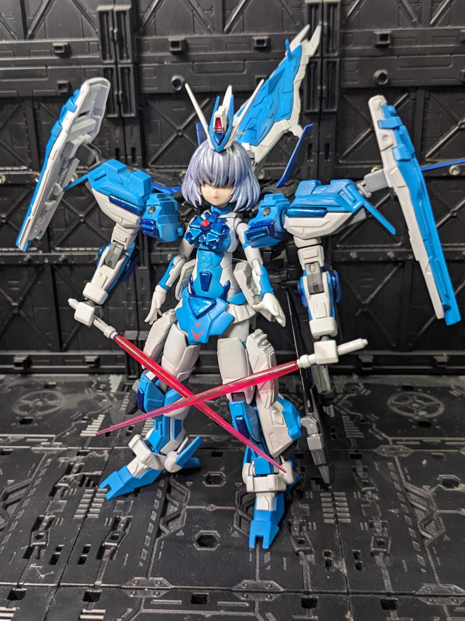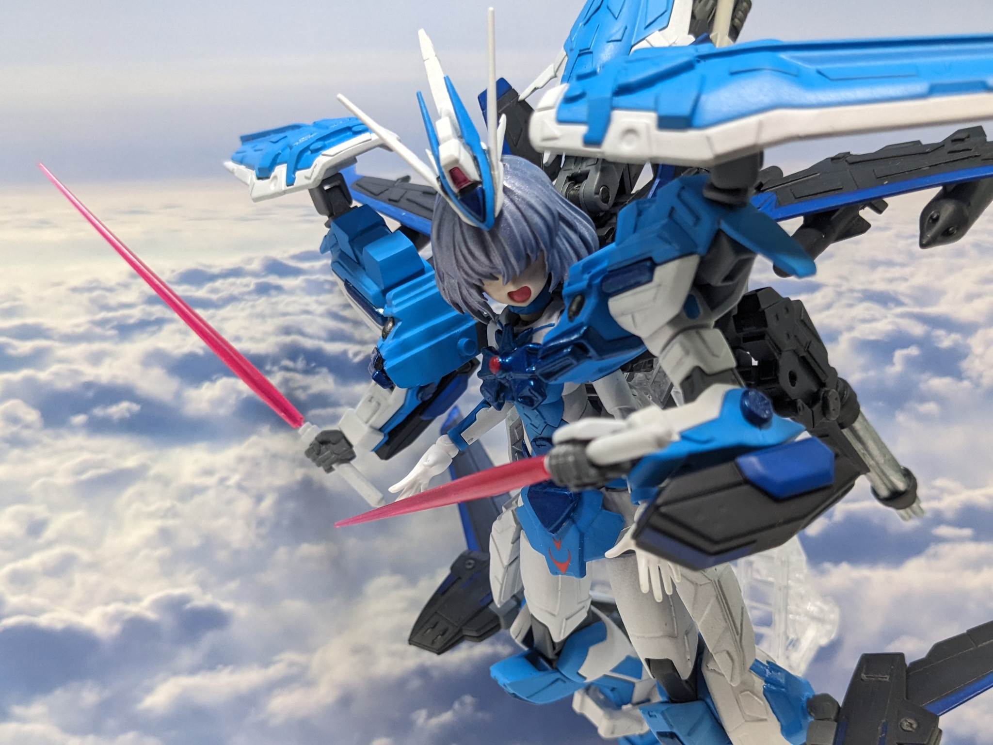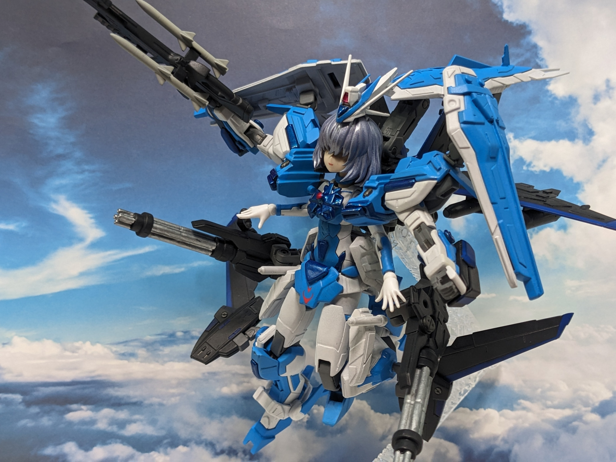 彼女はいわゆるハイエンドワンオフ機とは真逆の量産型に属し、作戦によって装備を切り替える汎用性が特徴である。