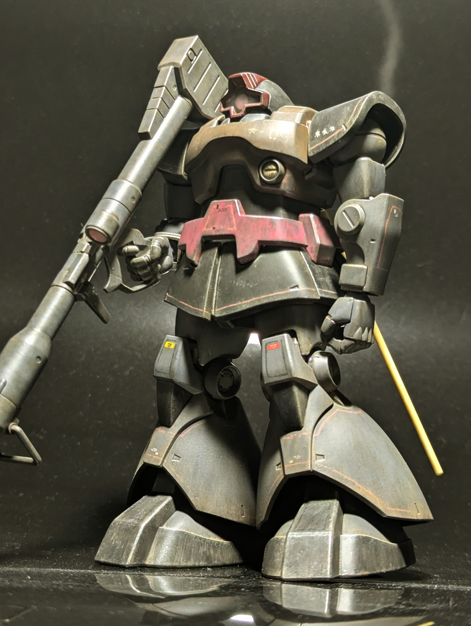 お疲れ様です(*^^*)いや〜、むせますねぇ♪炎の臭いが染み付いたドム、堪りません♪ウォッシングお見事です!私もドム塗り直そうかな…