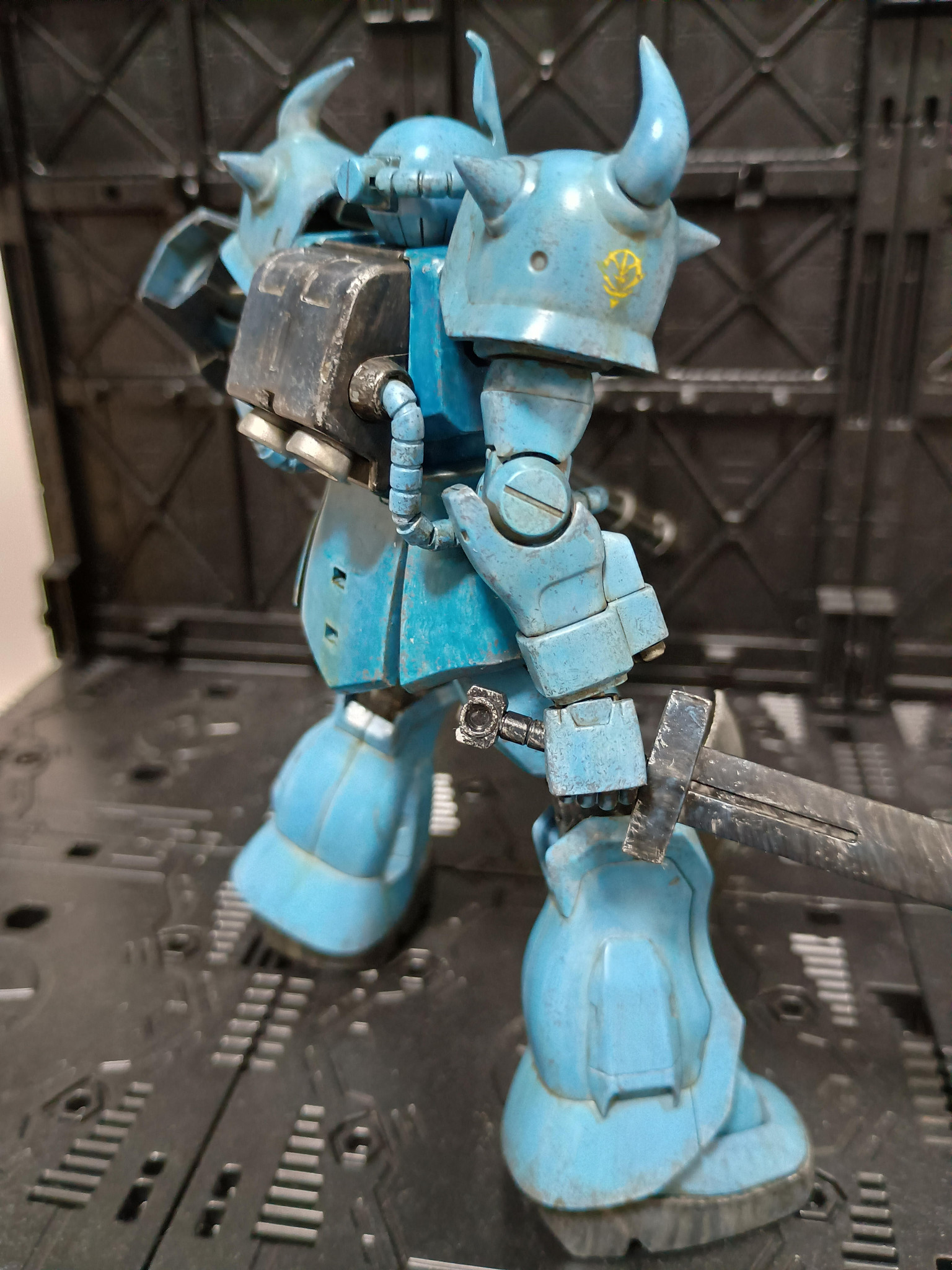 HG グフカスタムを清水式筆塗り、全塗装しました🎨手を加えたのはアンテナシャープ化、スパイクシャープ化くらいです。清水式筆塗り3作目で今回は薄く重ねることと下地を活かす事を意識しましたがやっぱり塗り潰し気味になってしまいました💦写真で見ると全然色差が出ていない…難しい😢