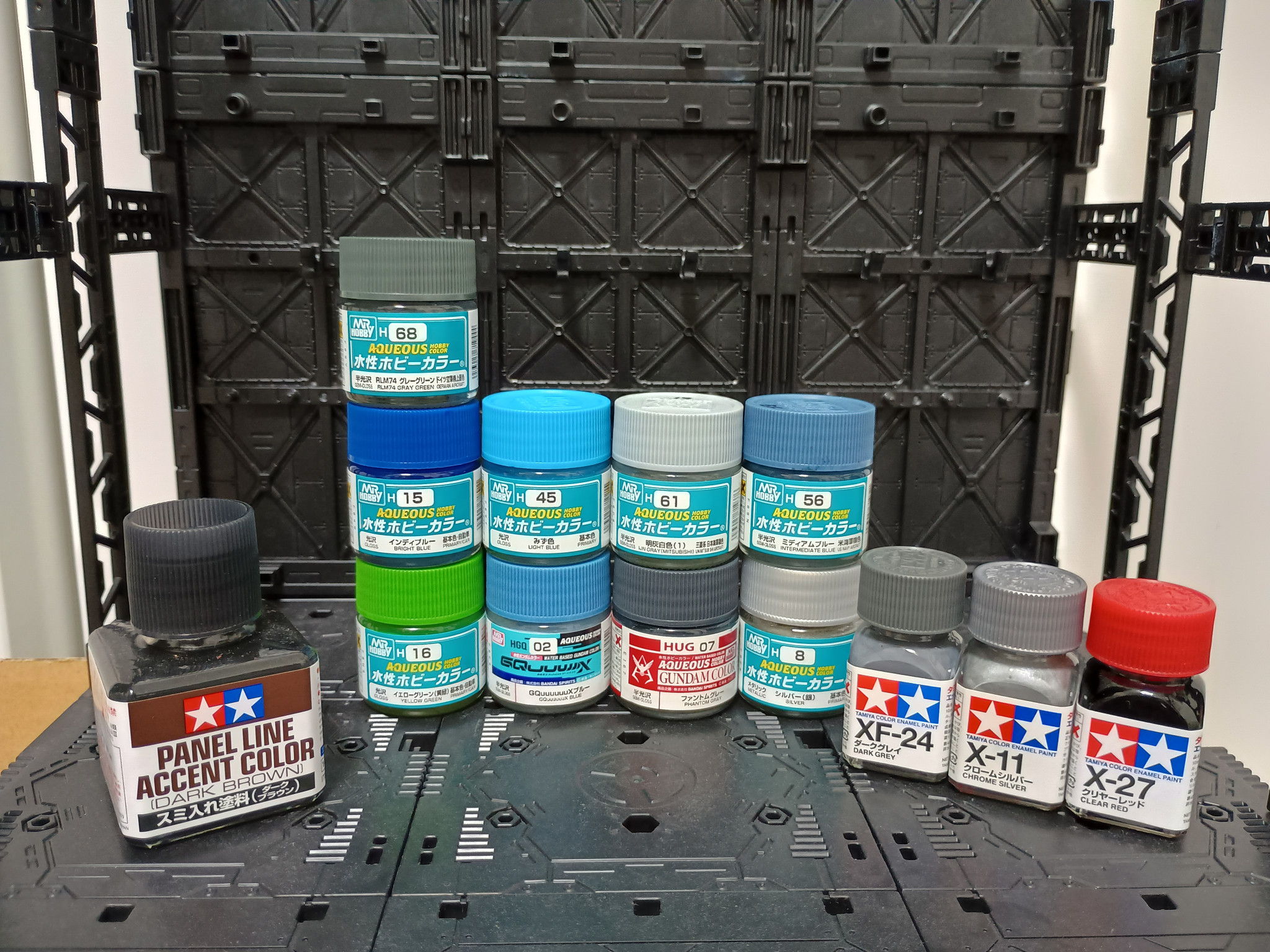 使用した塗料達。胸部やスカートの色は調色してみましたがもっと緑強めが良かったかなぁ~💦