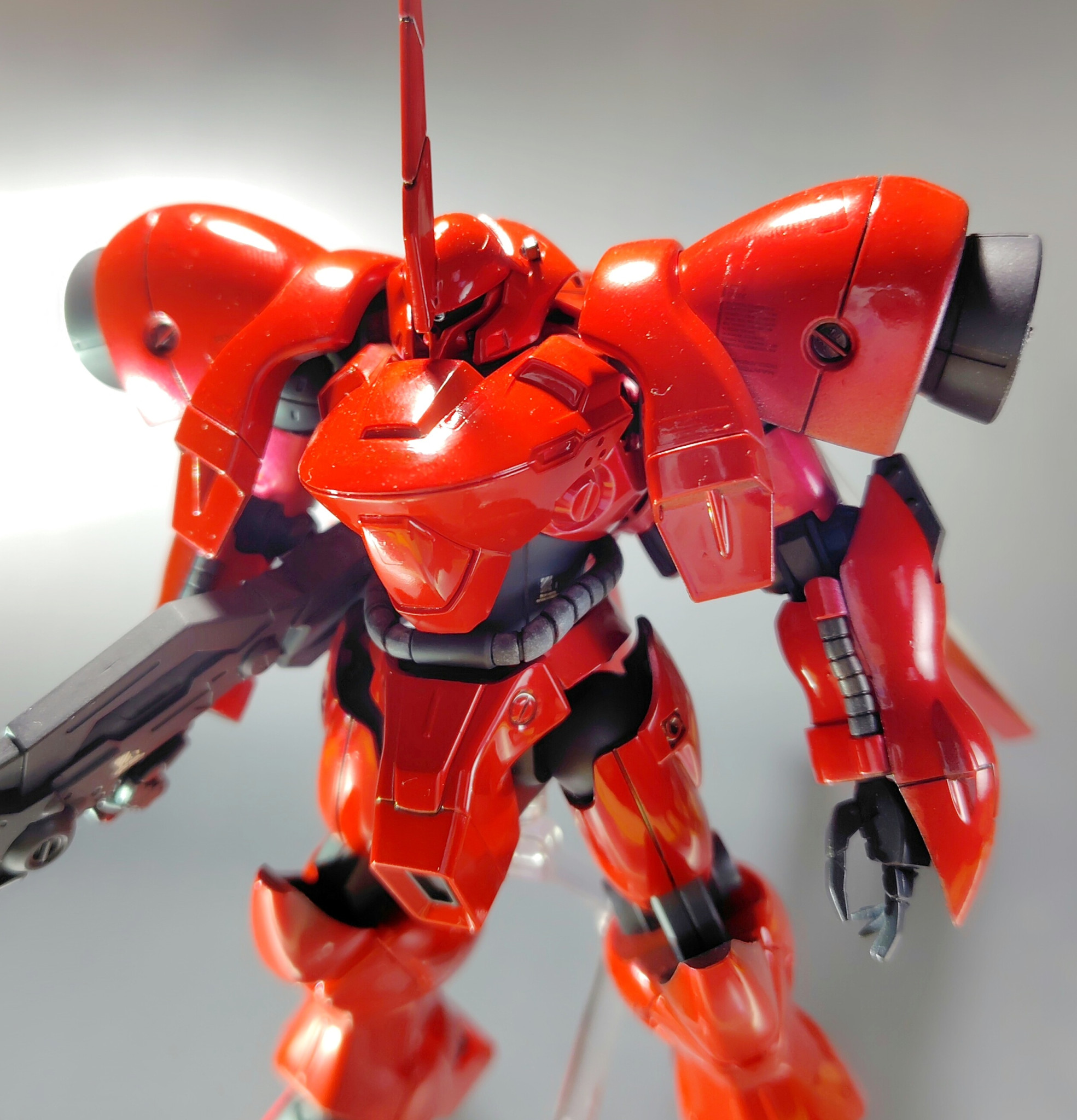 下地に銀+赤少々+つや出し剤混ぜたものを塗布してその塗膜にデカールを貼り、その後にクリア赤やクリアオレンジ等を数回重ね塗布実施。結果、思いのほかデカールが見えなくなりました(泣)。