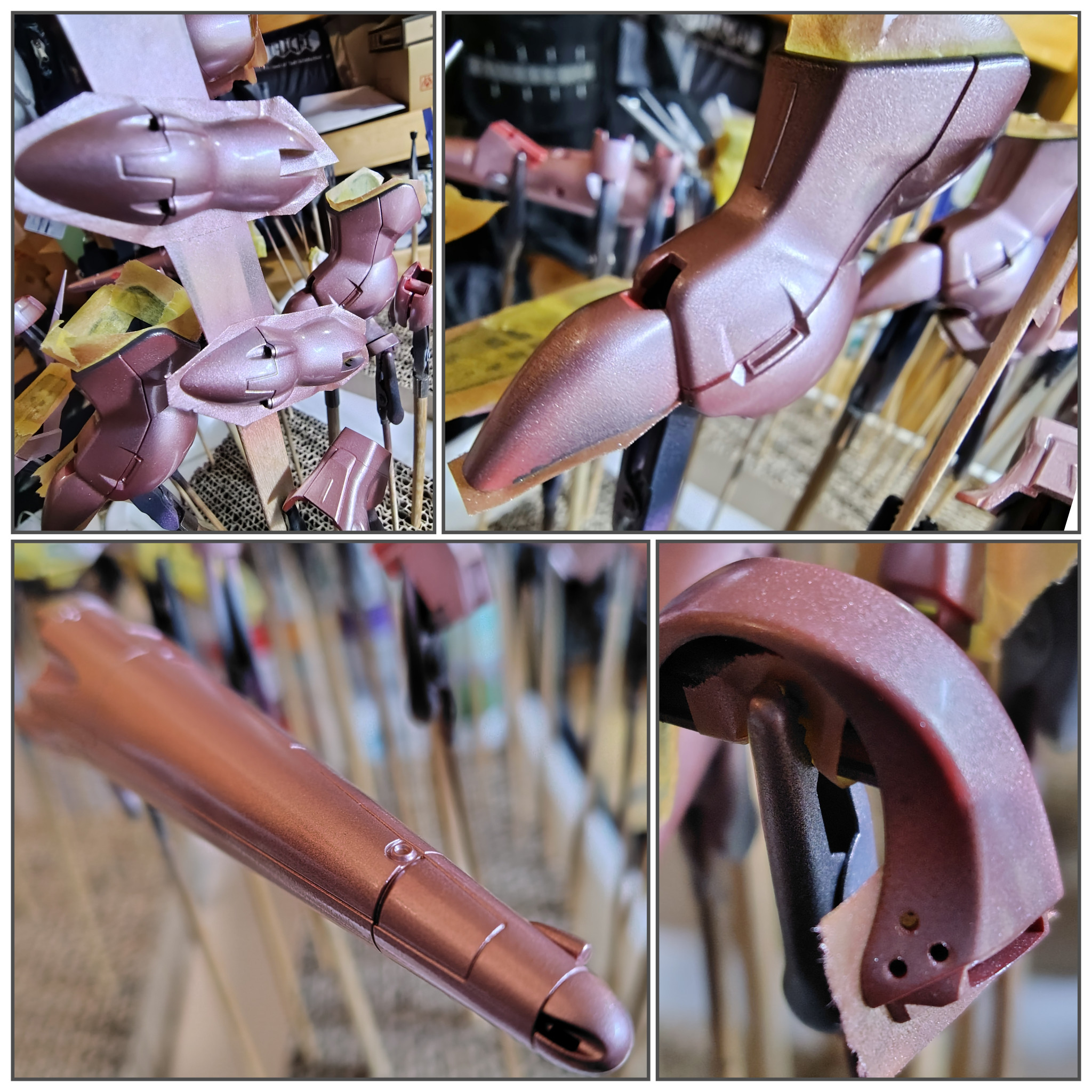 塗装は所謂キャンディっポイのをやってみたのですが今ひとつグッときませんでした。やはり下地処理の差がでかいんでしょうね… 肩のつなぎ目消しを入念に実施した場所は若干違いが見られたので効果はアルのでしょう。ナマズのしっぽの中央に合わせ目あったので消したのですがタダ消す程度ではダメなんでしょうね。